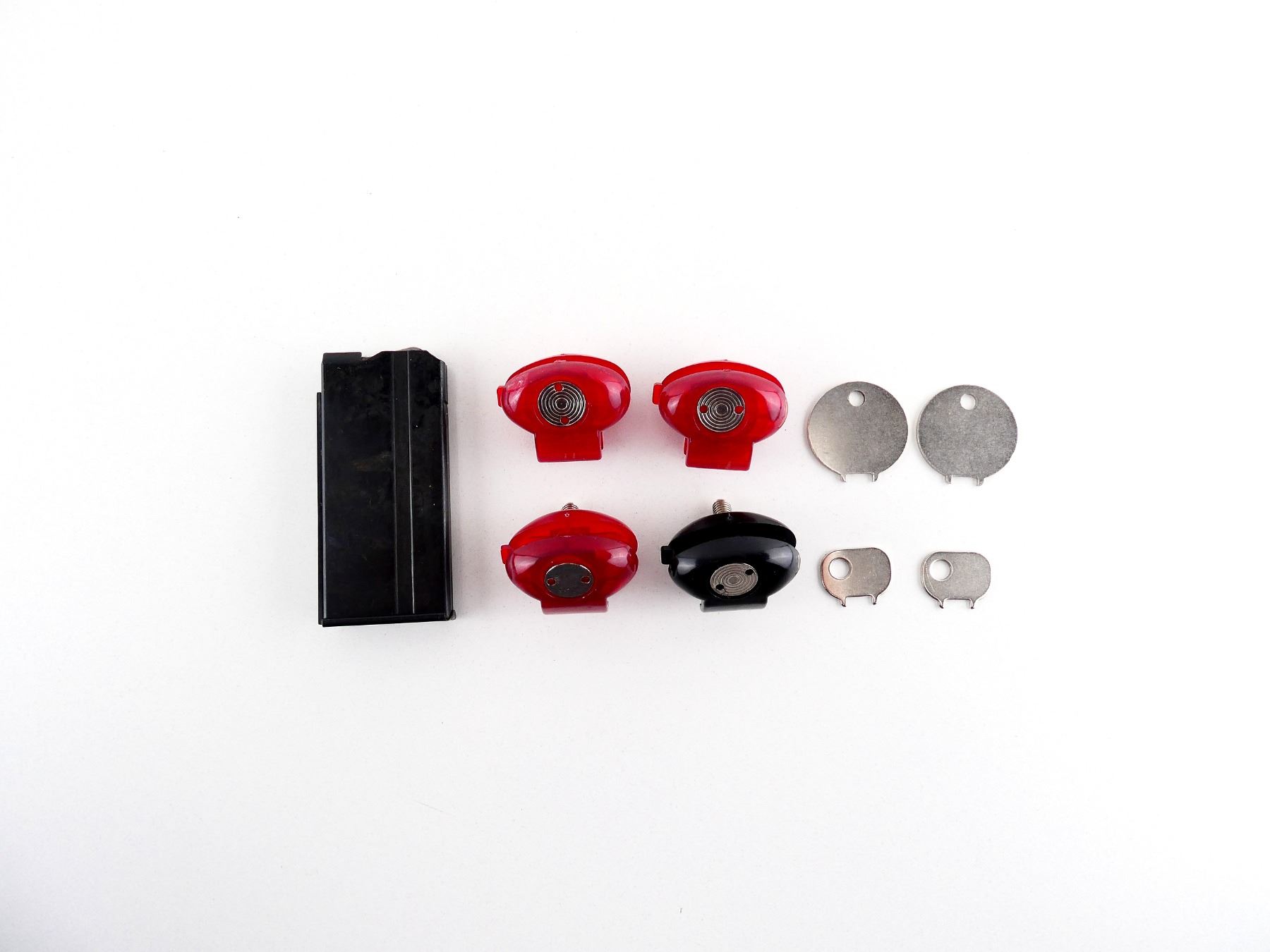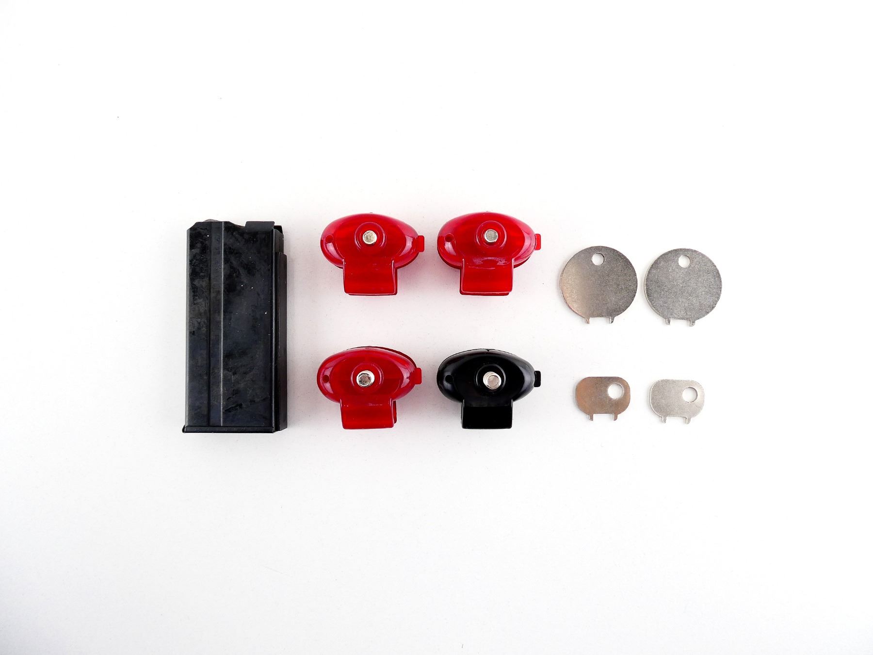 LOT INCLUDES; (1) .22 WIN MAG MAGAZINE, 10 RNDS, BLUED STEEL CONSTRUCTION, UNMARKED & (4) PLASTIC TRIGGER LOCKS WITH KEYS. SEE PHOTOS. PAL REQUIRED.