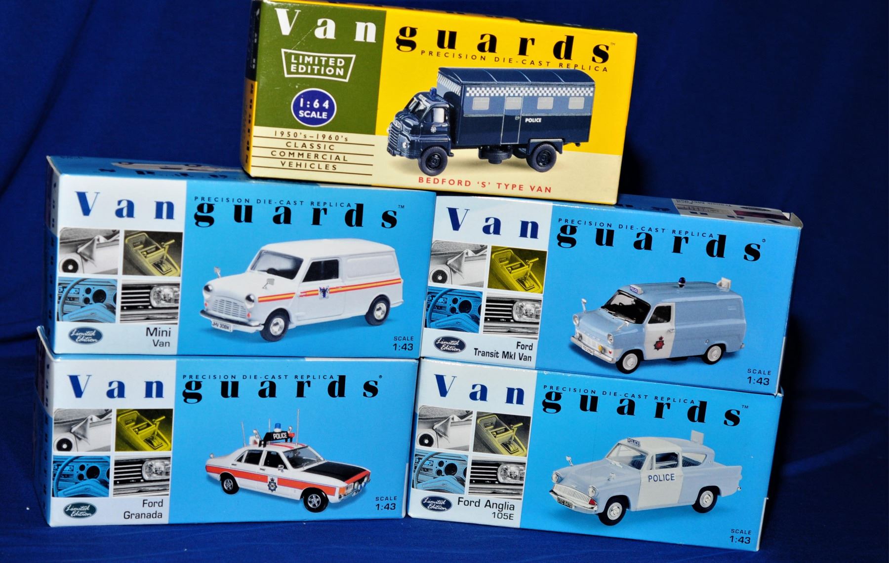 1) Ford Transit MK1 Van Lancashire  Constabulary Section Van 2) Ford Anglia 105E Lancashire County  Constabulary 3) Mini Van Metropolitan Police 4) Ford Granada Greater Manchester Police 5) Bedford S Type Van Police Control Van all in original packages