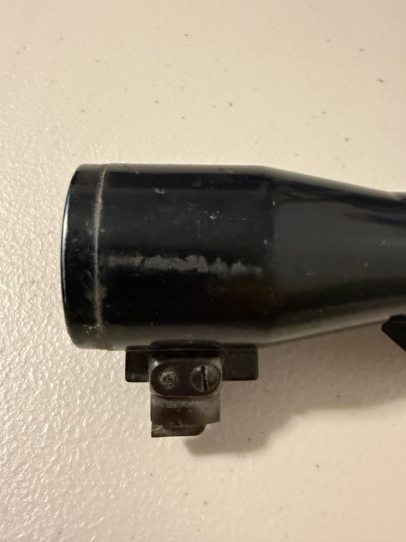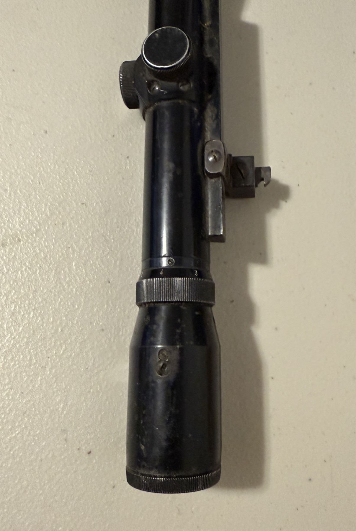 Scope shows cosmetic wear, finish marks, and light patina consistent with age. Optic and reticle condition not tested. Mounts have wear and rust spotting. Sold as-is, as photographed.