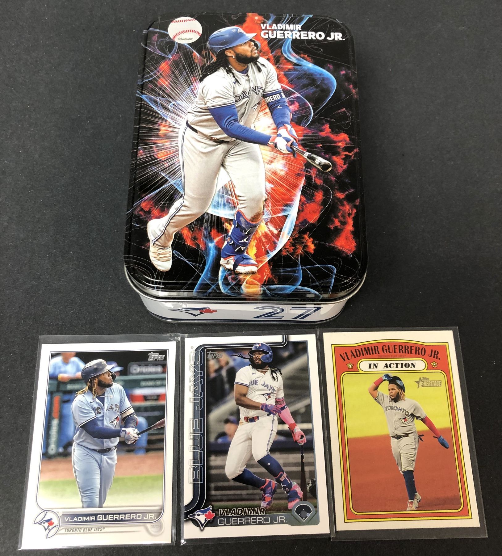 Vladimir Guerrero Jr metal tin with 3 cards as shown