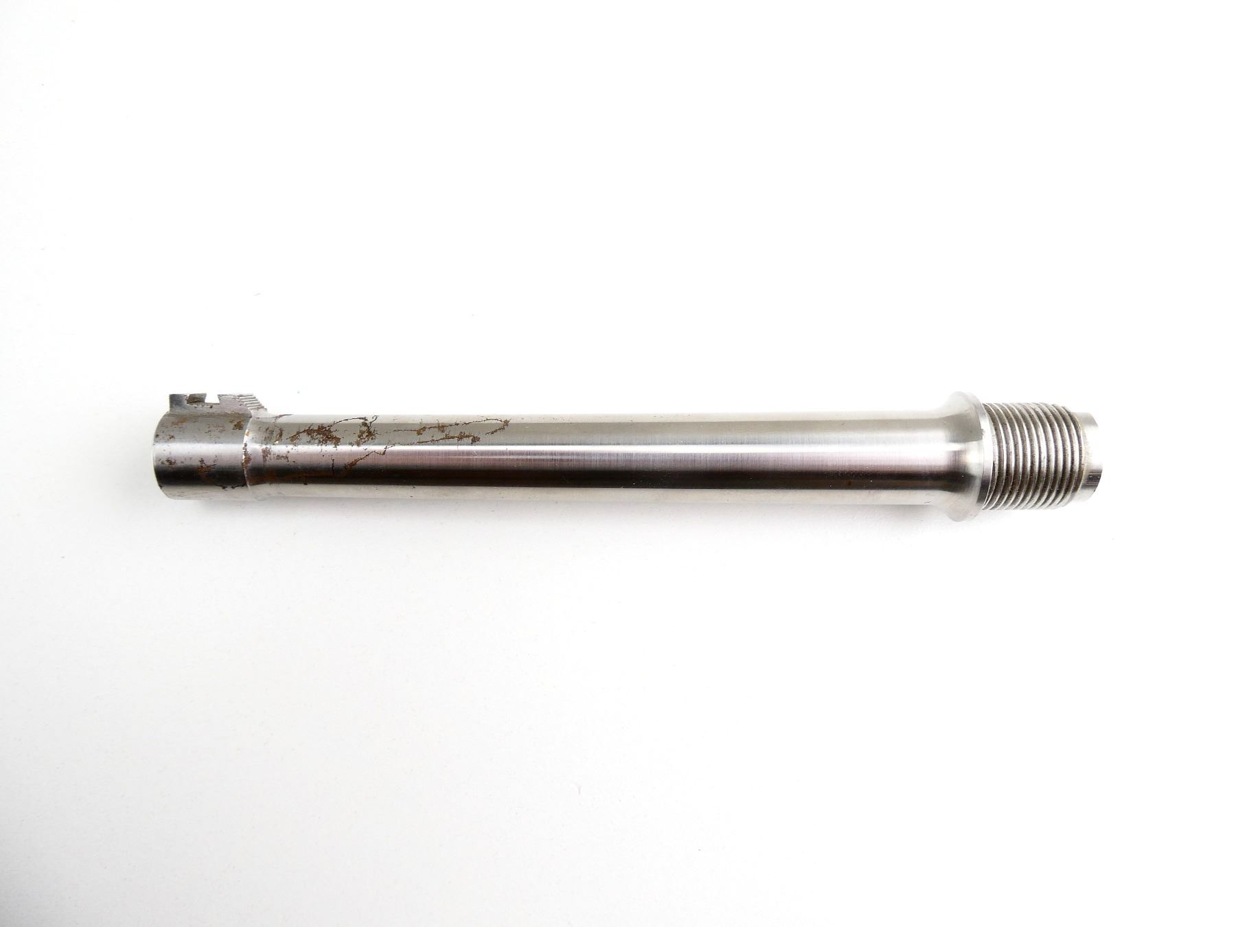 (1) BARREL, IN THE WHITE STEEL CONSTRUCTION, 9MM LUGER, BORE IS EXCELLENT / SHINEY, UNMARKED, OAL APPROX. 5 7/8". MAY REQUIRE FITTING. SEE PHOTOS. PAL REQUIRED.