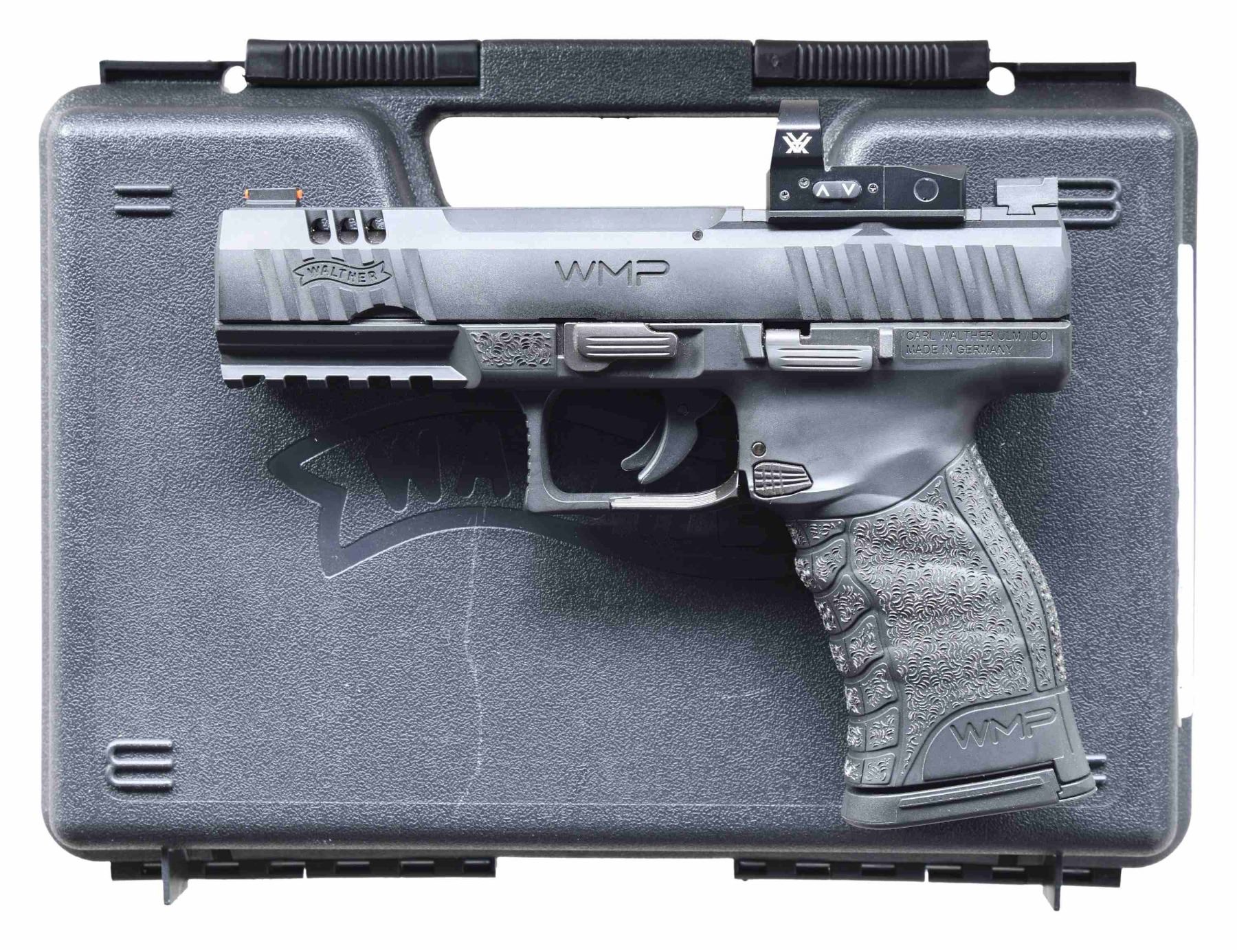 Cal. 22 WMR. S# WT003083. Bbl. 4 3/8". Fiber optic front sight. Blacked out rear sight. Slide mounted Vortex Venom green dot sight. Ambi slide release. Ported slide has front & rear serrations. Polymer frame with picatinny accessory rail. MAGS: 1-15 rd. UNATTACHED ACCESSORIES: matching numbered factory hardcase with trigger lock & manual. CONDITION: frame & metal show some light handling marks & wear. Action functions properly when hand cycled. Bright near excellent bore. (25-2090/MJC). MODERN. $250-350.