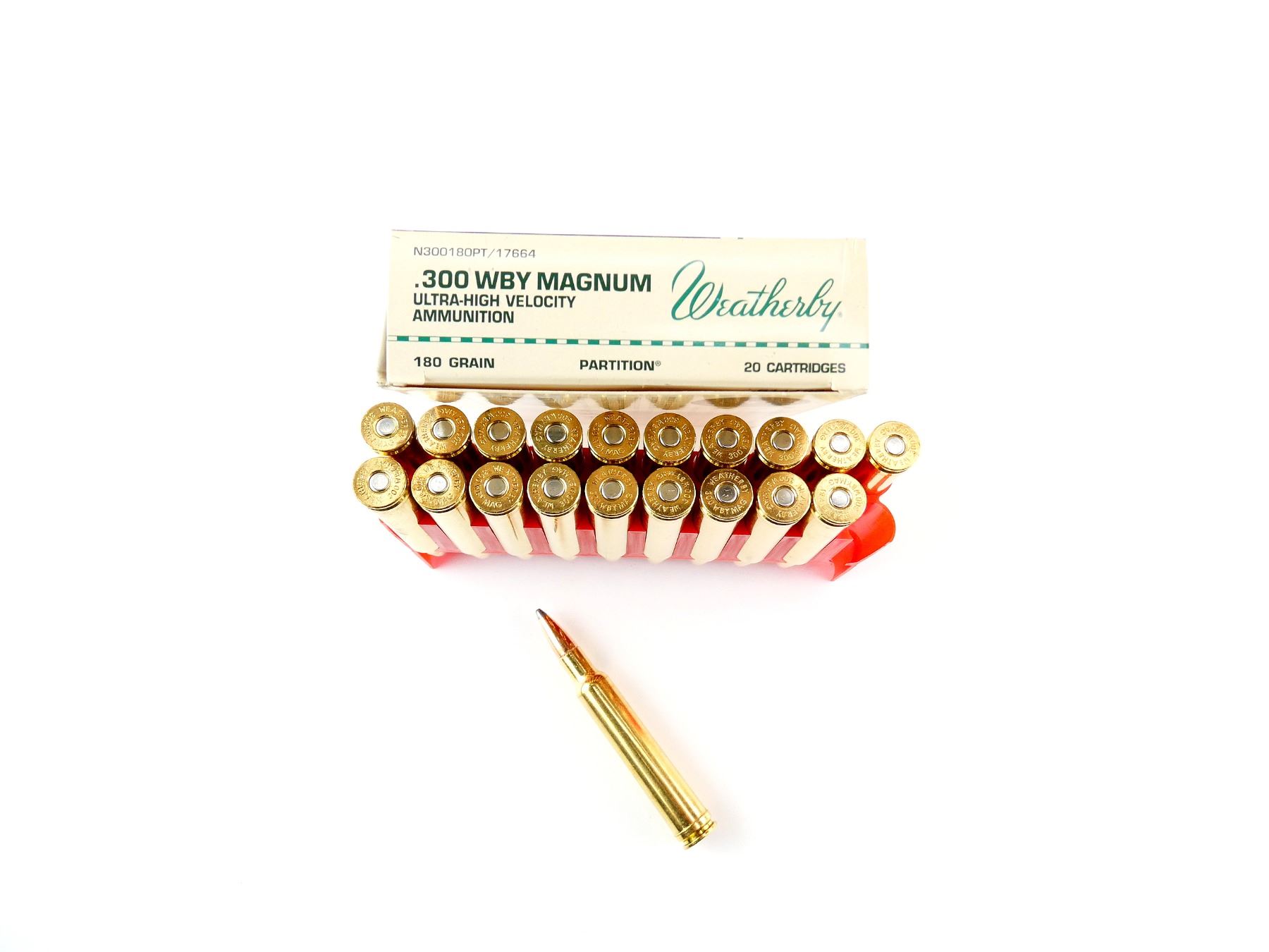 LOT INCLUDES; APPROX. (20) RNDS, 180 GRNS (STATED ON BOX NOT CONFIRMED), PARTITION.