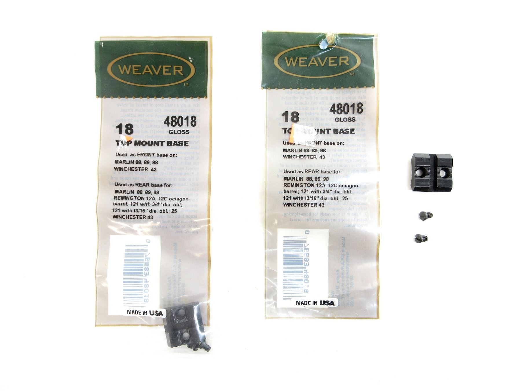 LOT INCLUDES; (2) SCOPE RING BASES, GLOSS BLACK ALLOY CONSTRUCTION, FITS MARLIN 88 / 89 / 98 / WINCHESTER 43 / ETC., PART #: 48018, APPEARS NEW OLD STOCK IN ORIGINAL PACKAGING, MAY NOT BE COMPLETE. MAY REQUIRE FITTING. SEE PHOTOS.