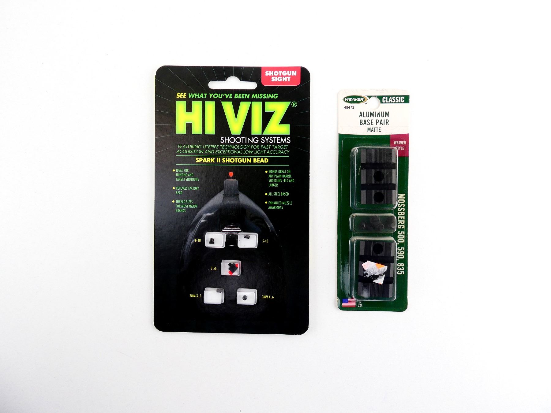 WEAVER MOSSBERG 500 / 590 / 835 SCOPE BASES AND HIVIZ SPARK 11 SHOTGUN BEAD LOT