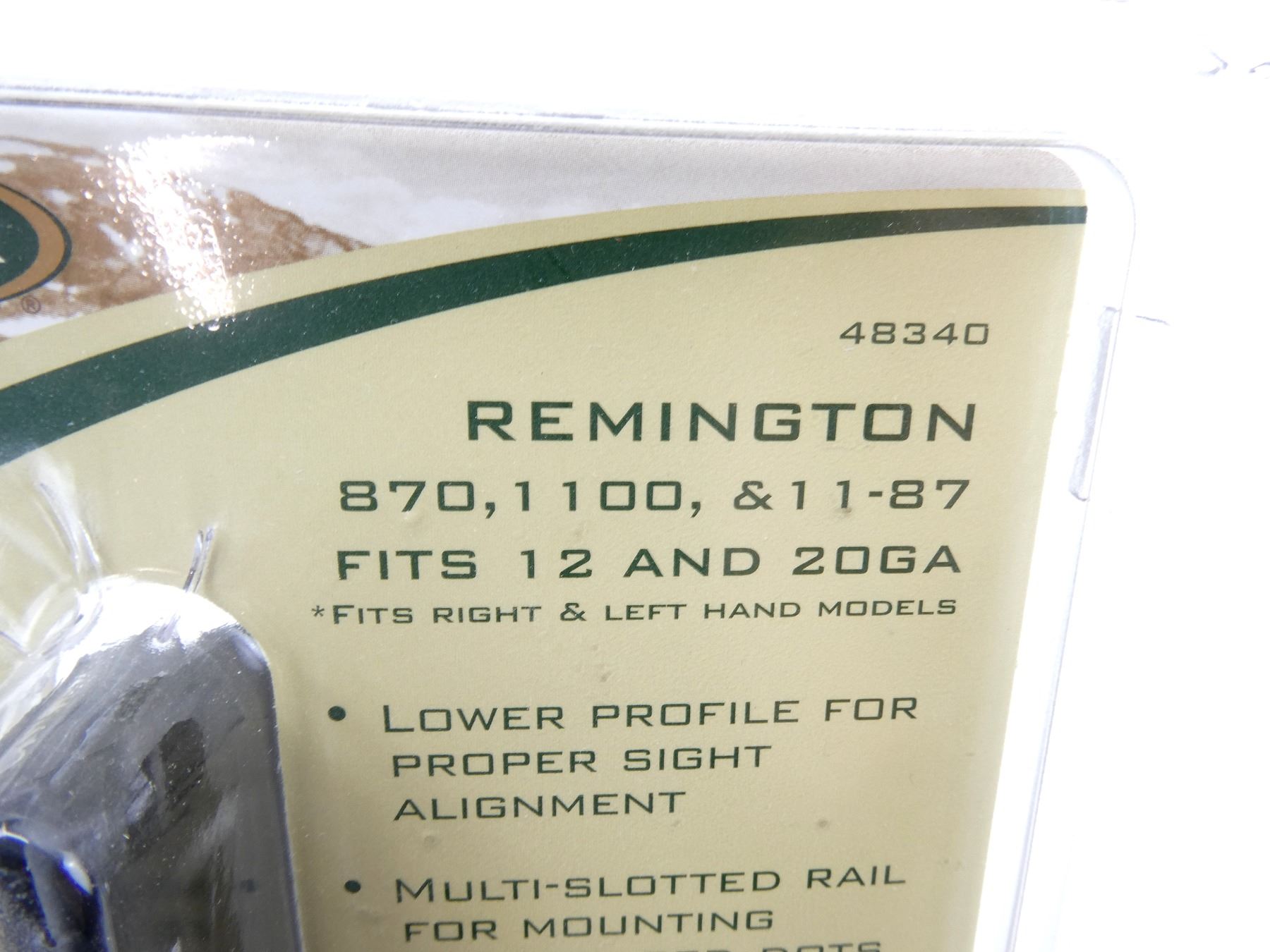 (1) FITS REMINGTON 870 / 1100 / 11-87 12 G. & 20 G. SHOTGUNS, BLACK POLYMER CONSTRUCTION, PART #: 48340, NOS IN ORIGINAL SEALED PACKAGING. MAY REQUIRE FITTING. SEE PHOTOS.