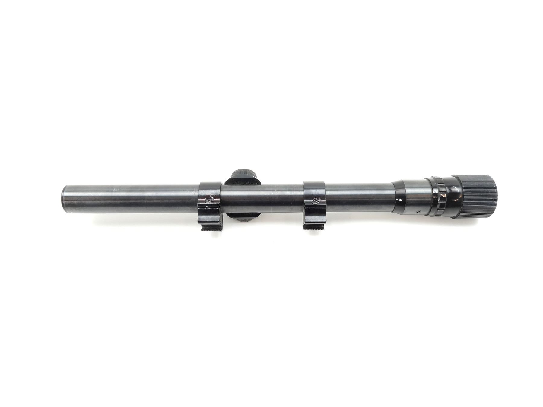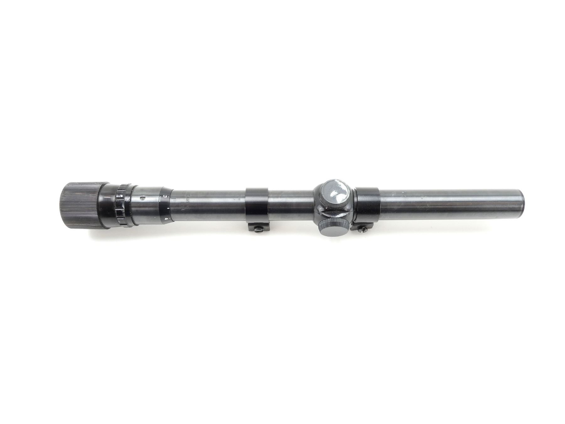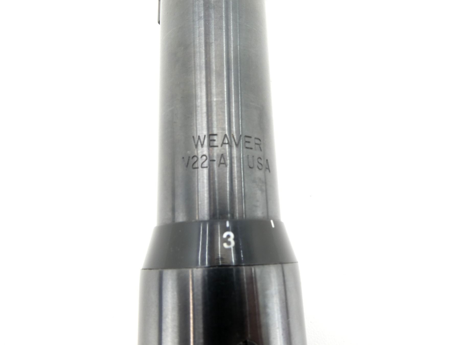 (1) CLEAR OPTICS, DUPLEX RETICLE, 22MM TUBE DIAMETER, WORKING MAGNIFICATION RING, WINDAGE & ELEVATION KNOBS TURN, MARKED: "WEAVER V22-A", ETC., SHOWS SOME WEAR & TEAR / USE MARKS, WITH 1" SCOPE RINGS ATTACHED. MAY REQUIRE FITTING. SEE PHOTOS.