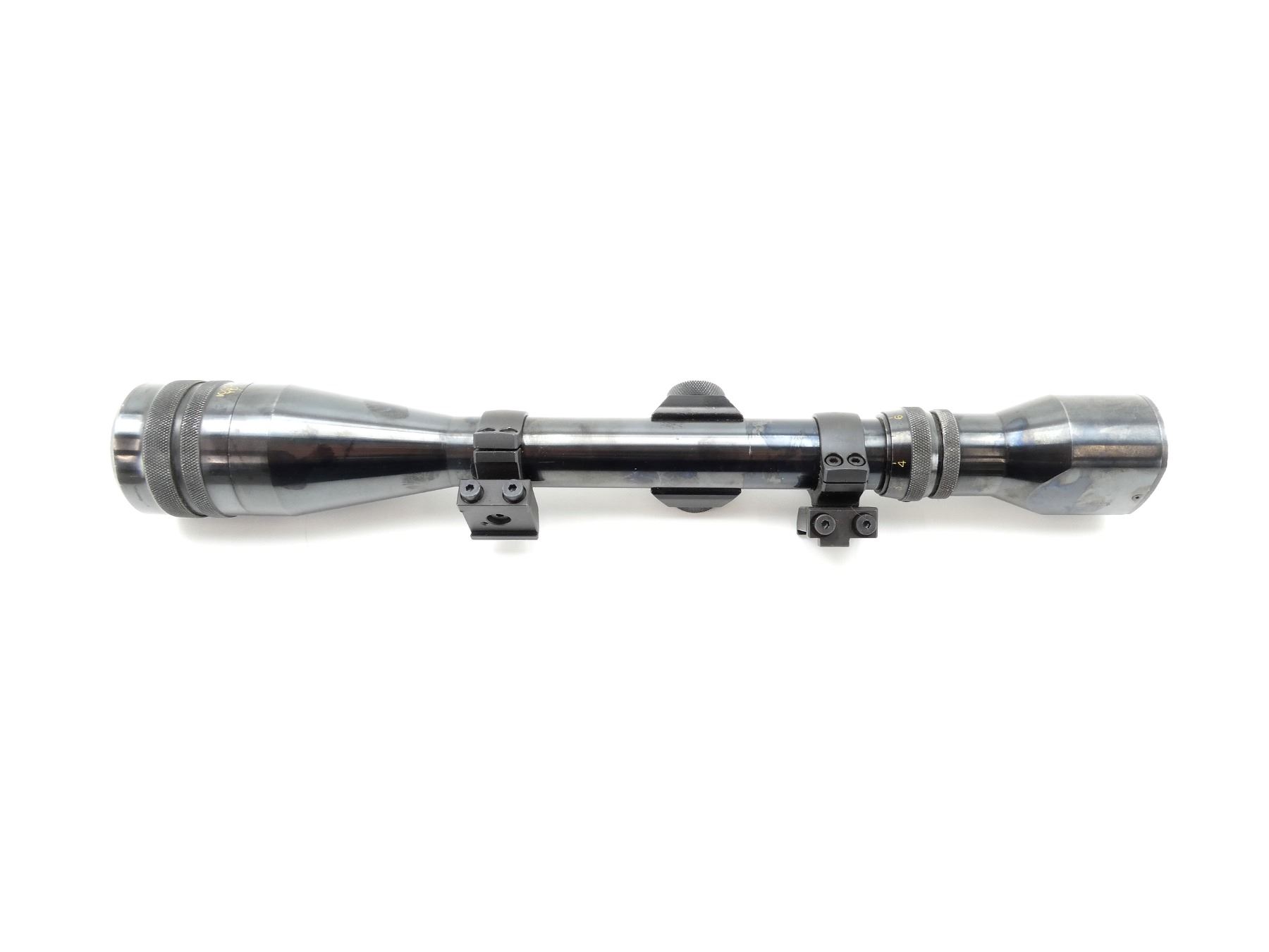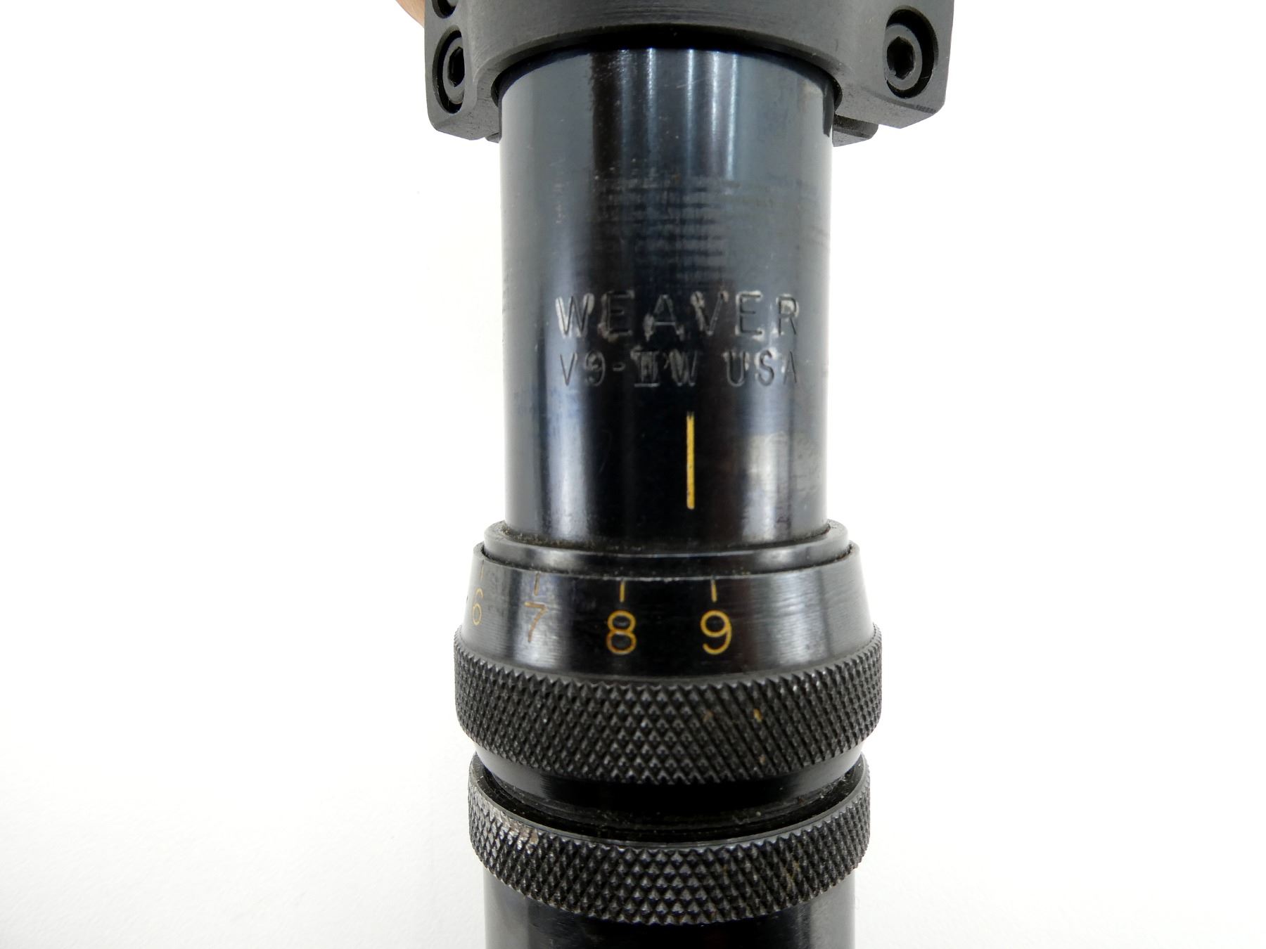(1) CLEAR OPTICS, EL PASO DUPLEX RETICLE, 1" TUBE DIAMETER, WITH ADJUSTABLE OBJECTIVE, WORKING MAGNIFICATION RING, WINDAGE & ELEVATION KNOBS TURN, MARKED: "WEAVER V9-II W", ETC., SHOWS SOME WEAR & TEAR / USE MARKS, WITH 1" SCOPE RINGS ATTACHED. MAY REQUIRE FITTING. SEE PHOTOS.