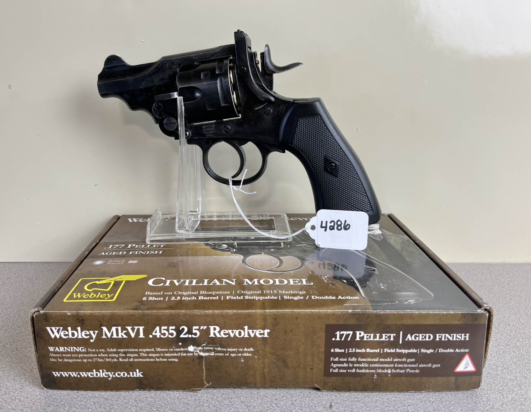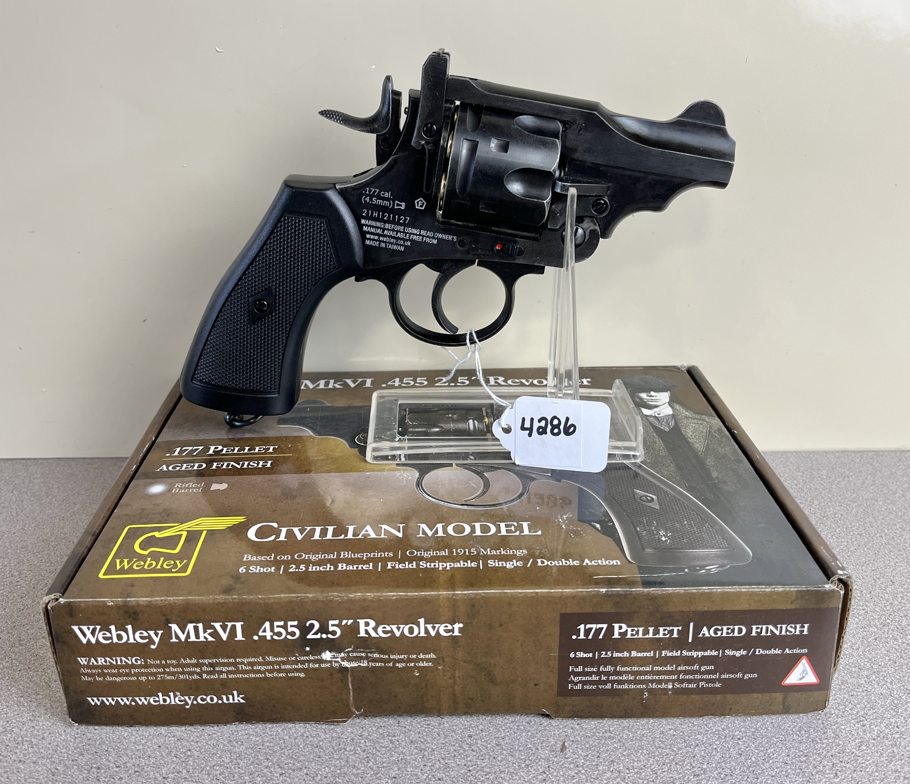 CONDITION: VG OVERALL. SPECS: APPROX 2.5IN BBL. <500FPS. EXTRAS: ORIGINAL BOX, 6X BB CARTRIDGES. S/N: 21H121127