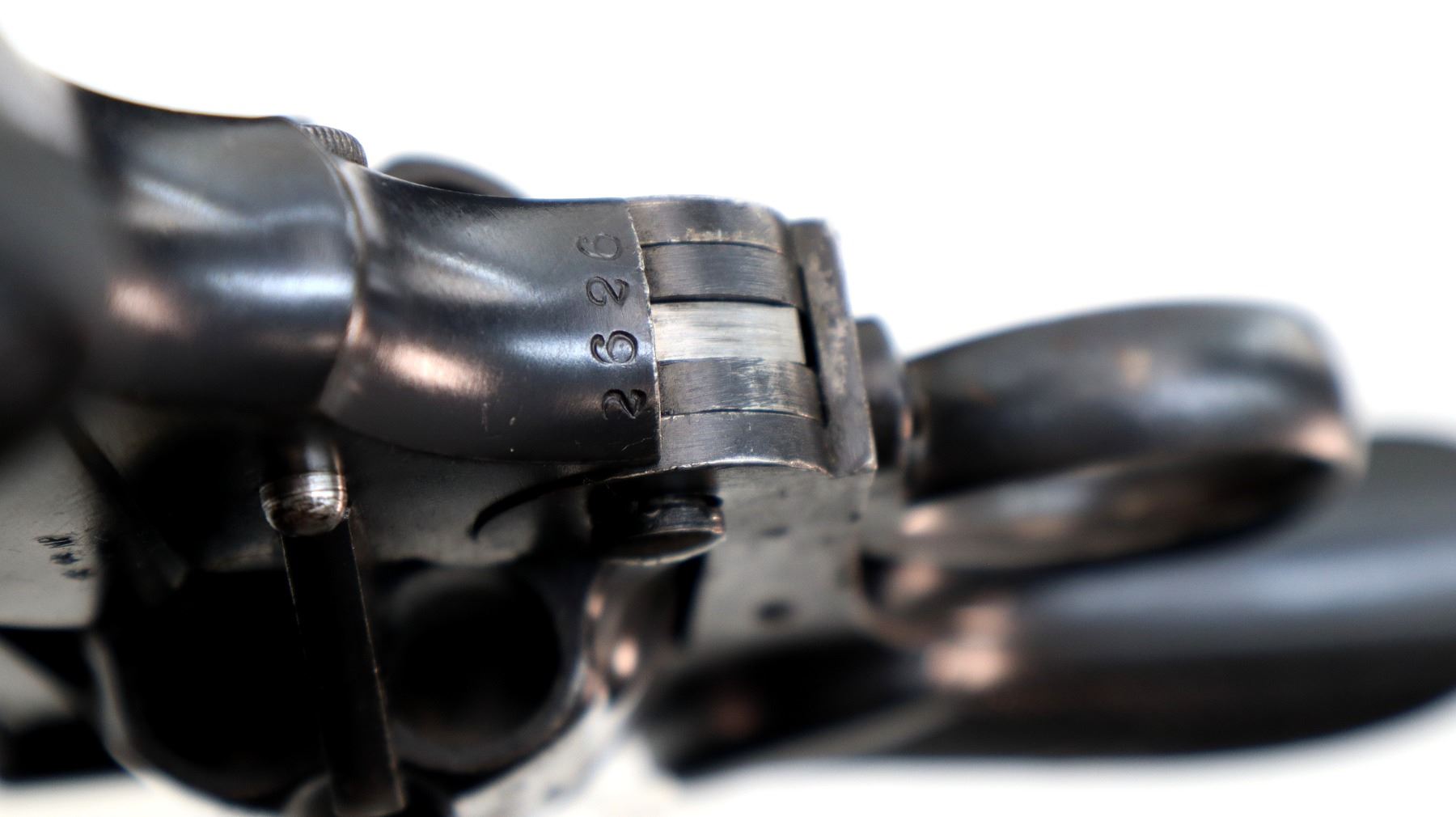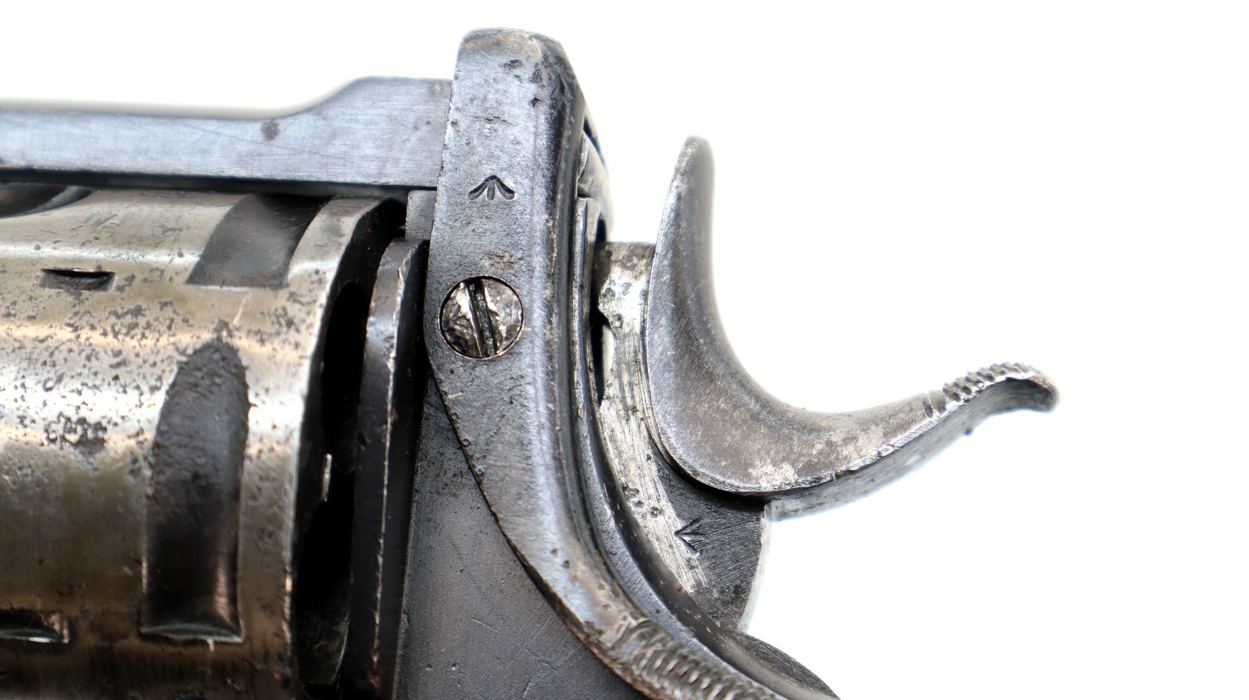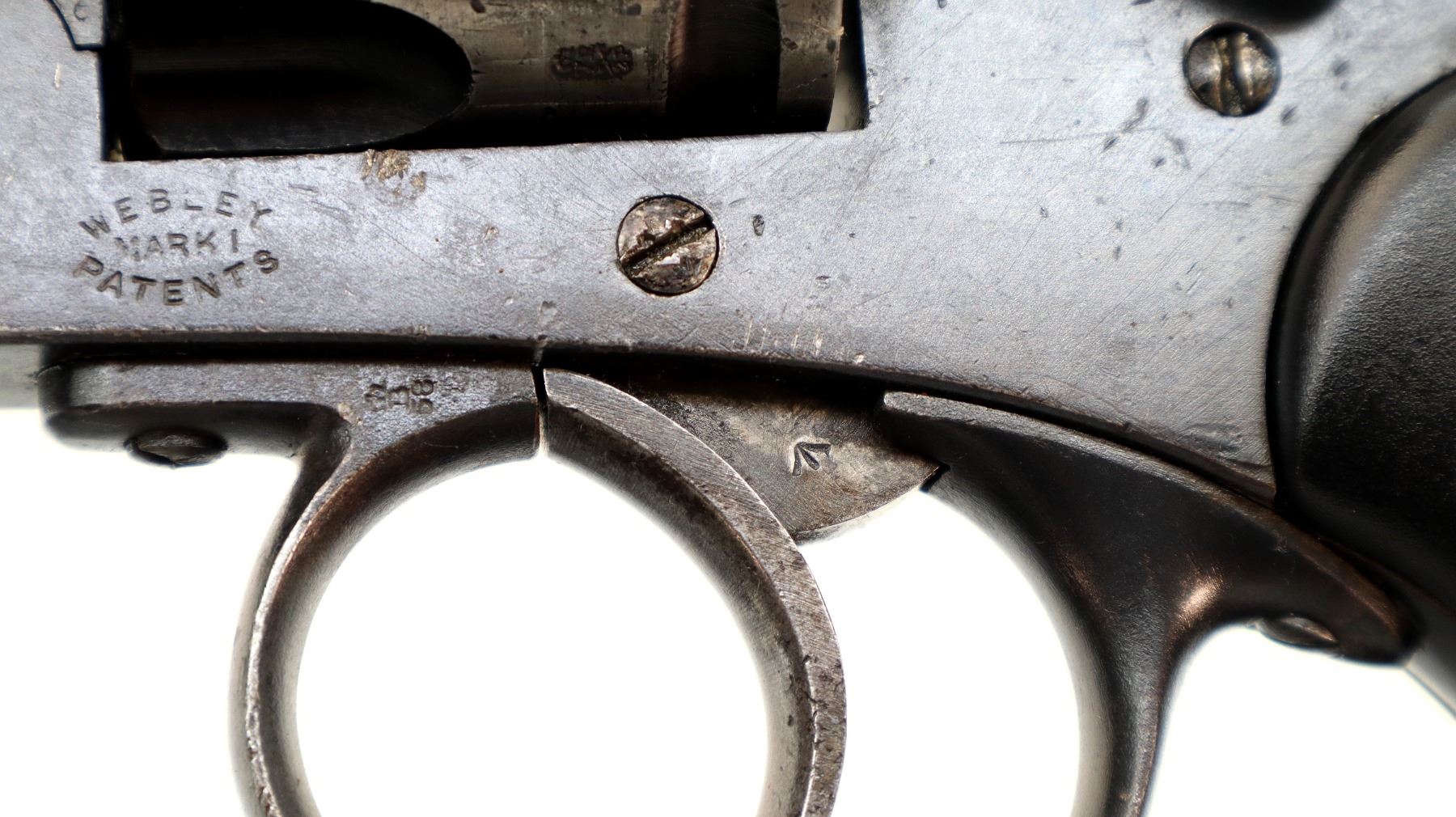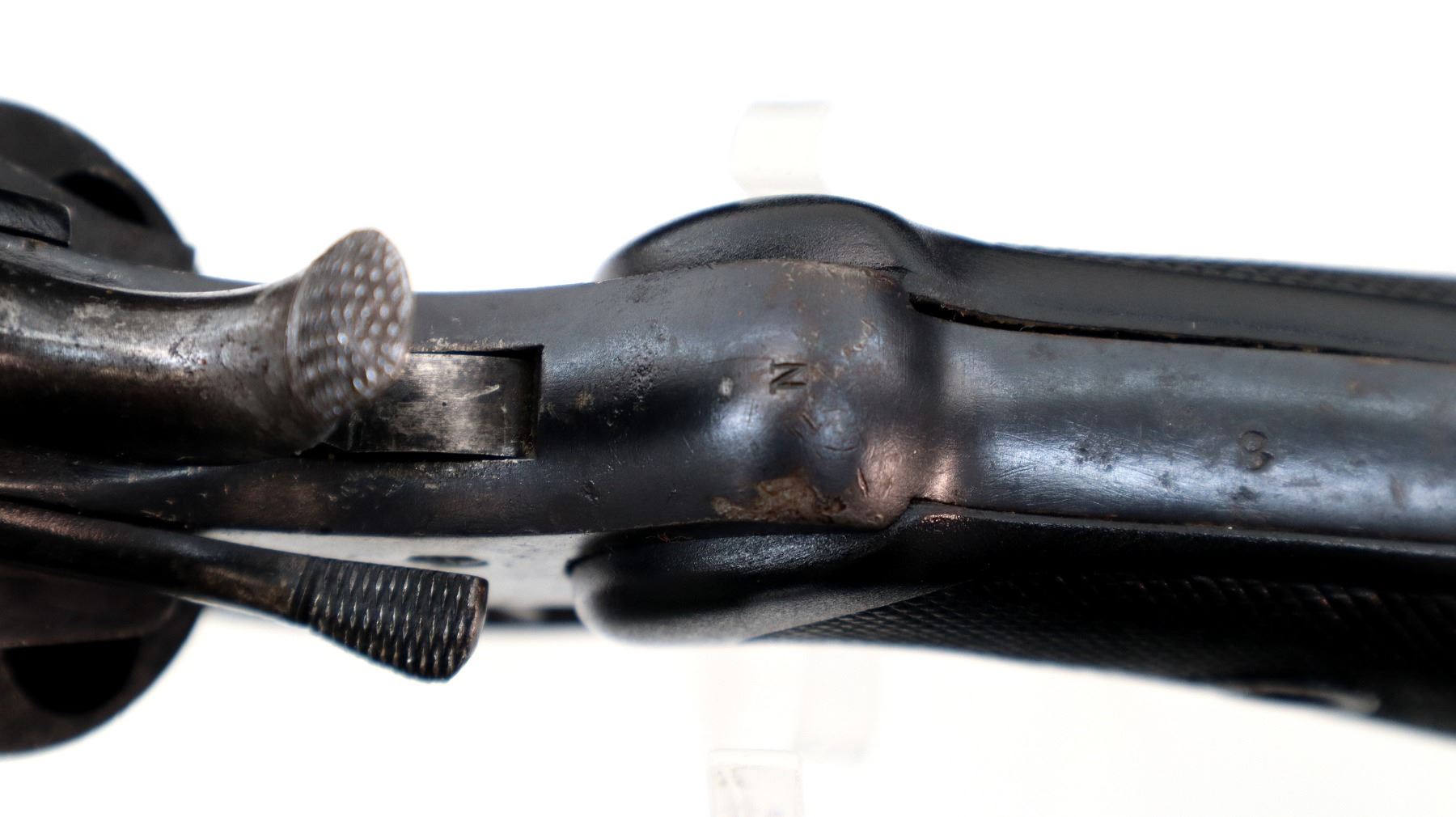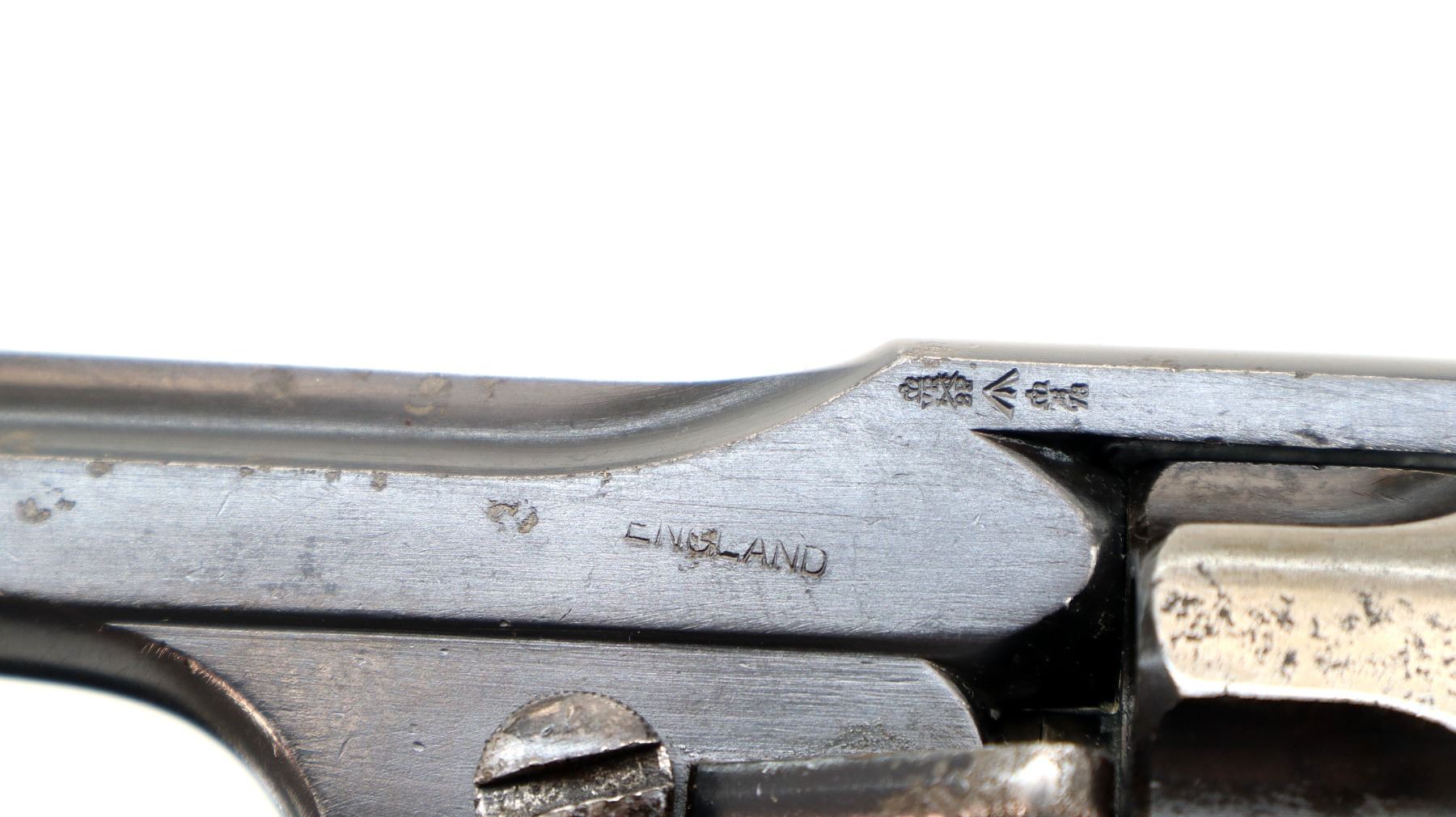 Wear: Metal finish shows some light pitted spots, rust speckles, scratches, handling marks and wear. Grips show some marks, scratches and wear.
