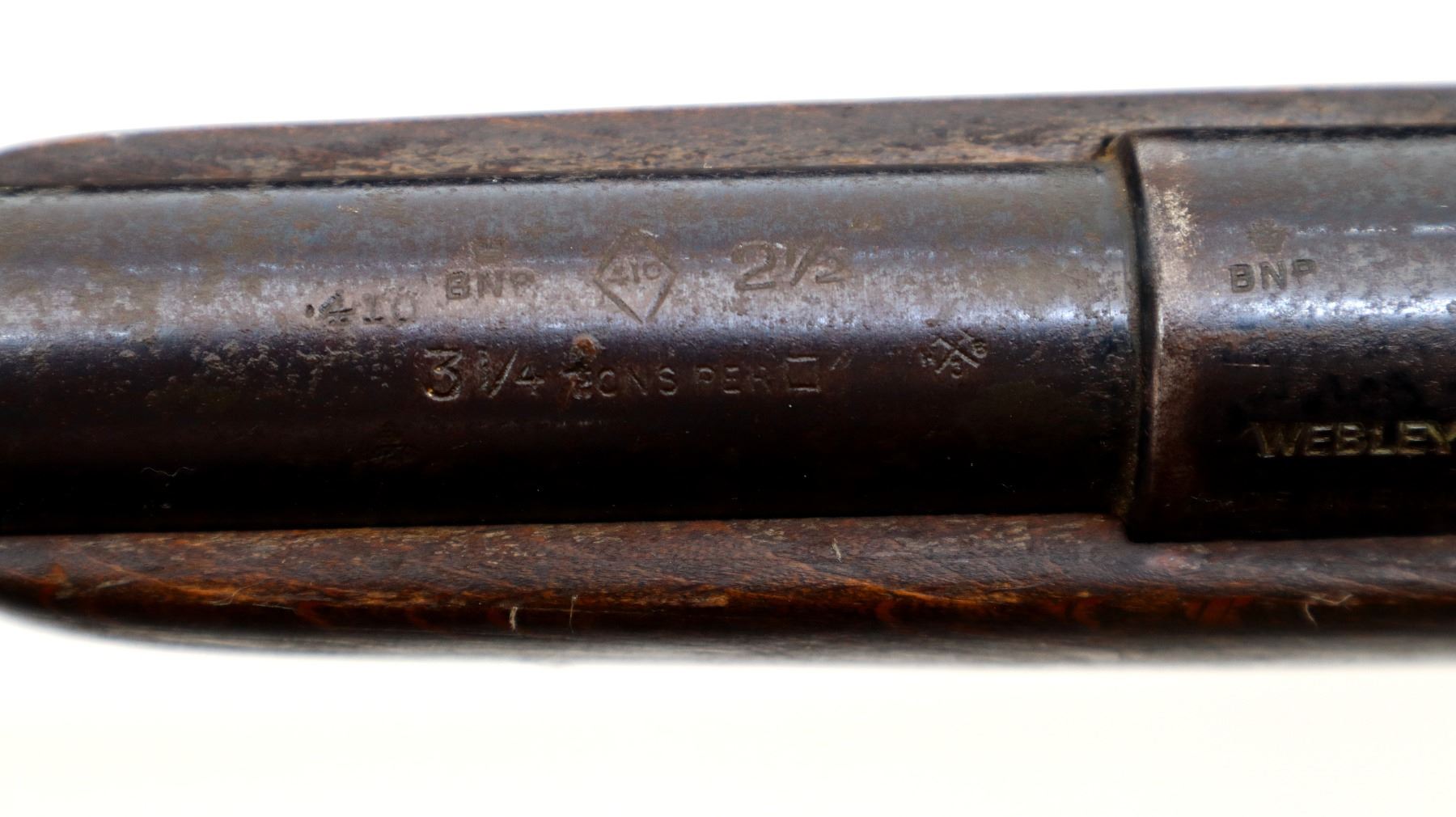 Wear: Metal finish shows light rust overall, scratches, handling marks and wear. Stock shows marks, scratches and wear.