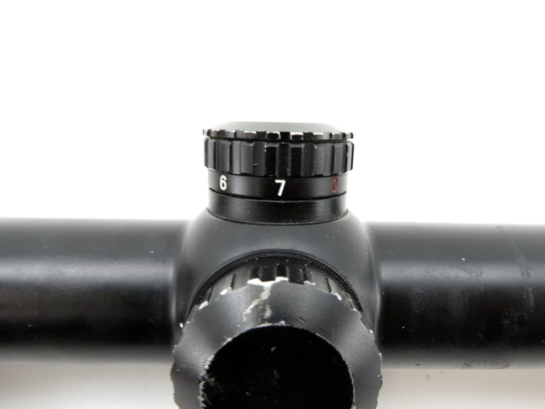 (1) CLEAR OPTICS, ILLUMINATED (DOESN'T WORK) GERMAN NO.5 RETICLE, 30MM TUBE DIAMETER, WORKING MAGNIFICATION RING, WINDAGE & ELEVATION KNOBS TURN, MARKED: "WELTER OPTICS", "2.5-10X50", "060100237", ETC., SHOWS WEAR & TEAR / USE MARKS. MAY REQUIRE FITTING. SEE PHOTOS.