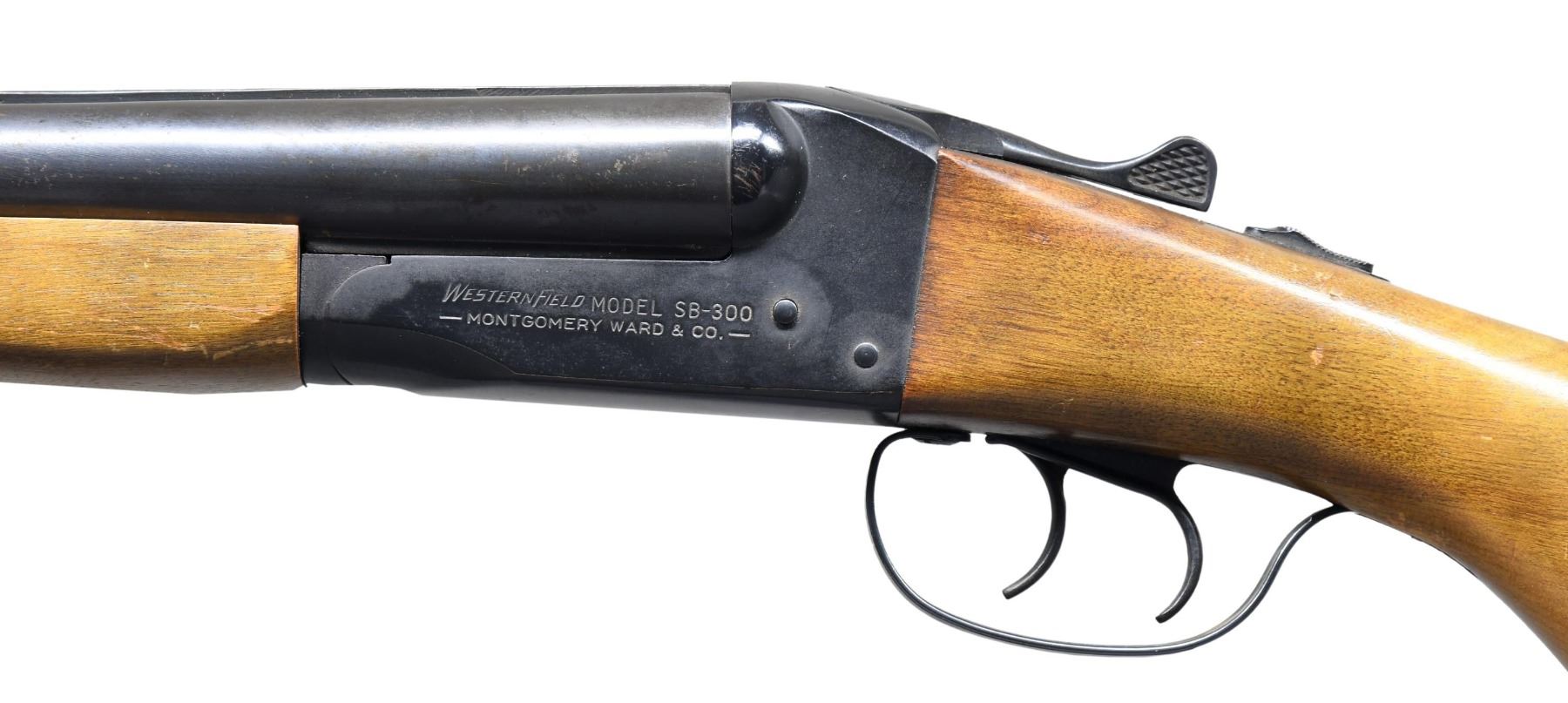 Cal. 16 Ga., 2 3/4". NSN. Bbls. Mfg. Stevens by & sold by Montgomery Ward & Co. Bbls. 28" w/ steel bead. Bore chokes measure Full & Mod. Boxlock action w/ dbl. triggers & extractors. Hardwood stock set. CONDITION: good blue & black finish w/ peppery oxidation throughout. Good wood finish with marks throughout. Bores show fouling. (25-3193/MD). CURIO. $200-300.