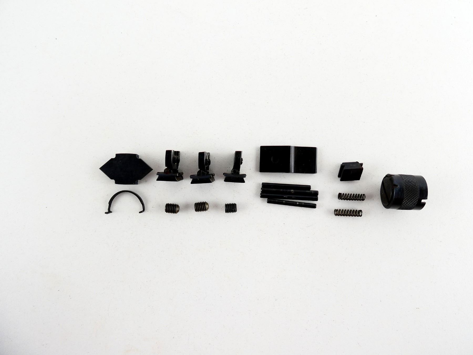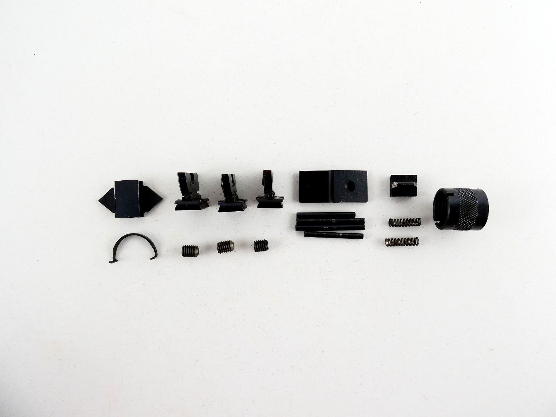 LOT INCLUDES; MAG CATCH WITH PIN & SPRING, (2) ADJUSTABLE REAR SIGHTS, GAS CYLINDER CP WITH RETAINER, ETC. MAY REQUIRE FITTING. SEE PHOTOS.