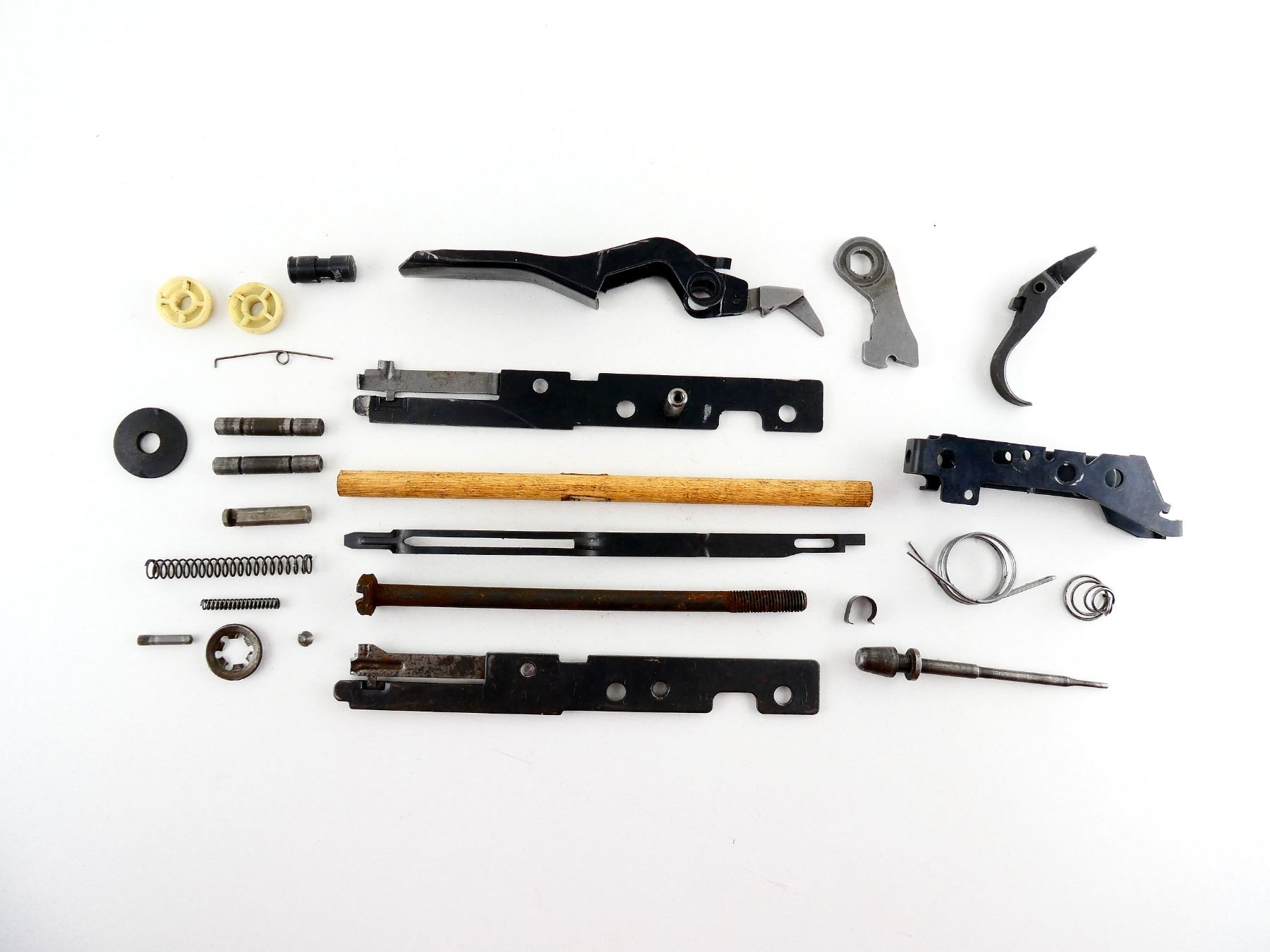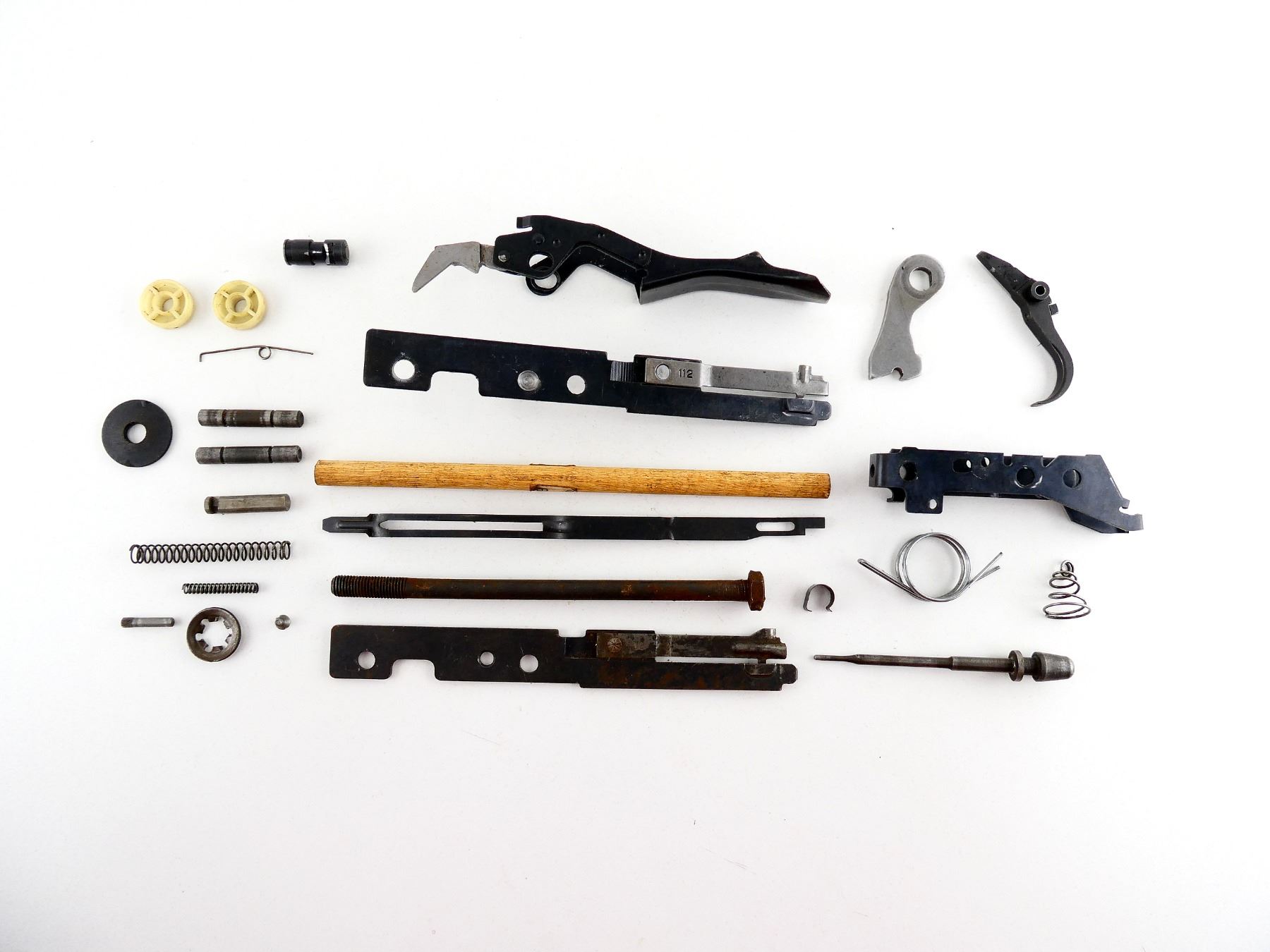 LOT INCLUDES; STOCK BOLT, FIRING PIN, LEFT / RIGHT SHELL STOPS, LIFTER, HAMMER, TRIGGER, EJECTOR, VARIOUS PINS / SCREWS / SPRINGS, ETC. MAY REQUIRE FITTING. SEE PHOTOS.