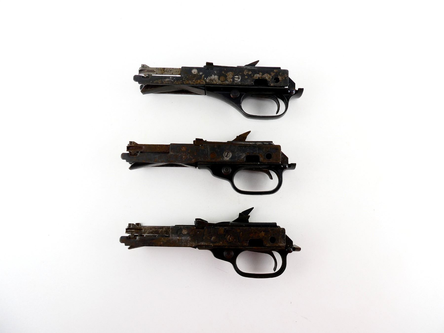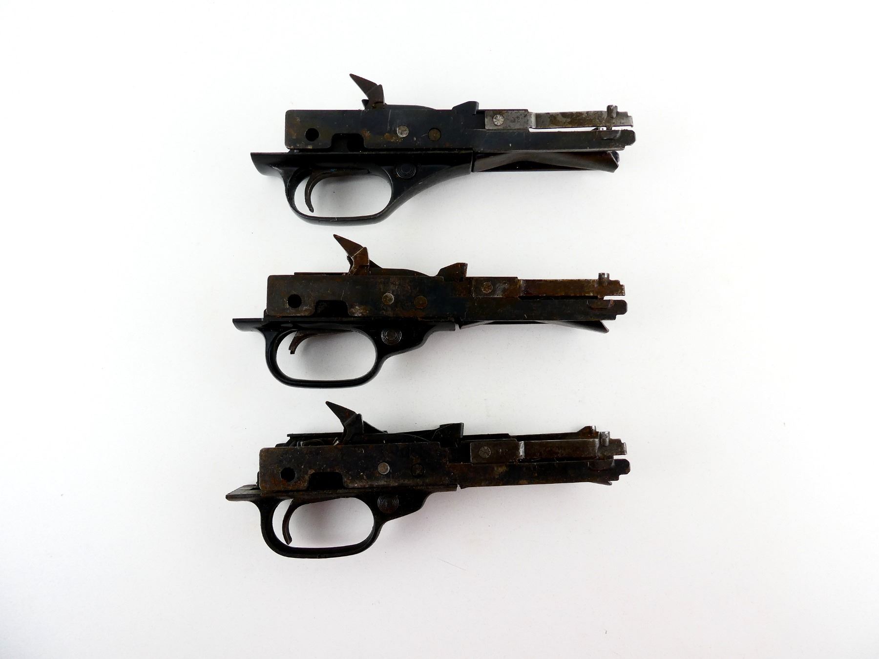 LOT INCLUDES; (3) TRIGGER MECH., APPEARS COMPLETE, BLUED STEEL & BLACK POLYMER CONSTRUCTION, ONE IS BROKEN. MAY REQUIRE FITTING. SEE PHOTOS.