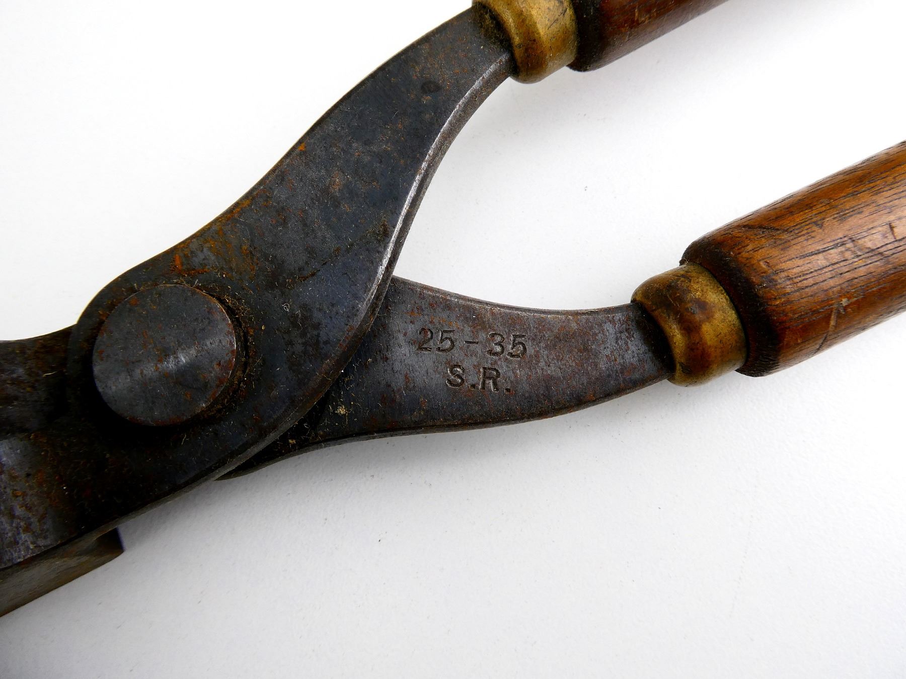 LOT INCLUDES; (1) .25-35 S.R. SINGLE-CAVITY BULLET MOLD WITH WOOD HANDLES ATTACHED, MARKED: ".25-35 S.R." & "WINCHESTER REP ARMS CO.", ETC. SEE PHOTOS.
