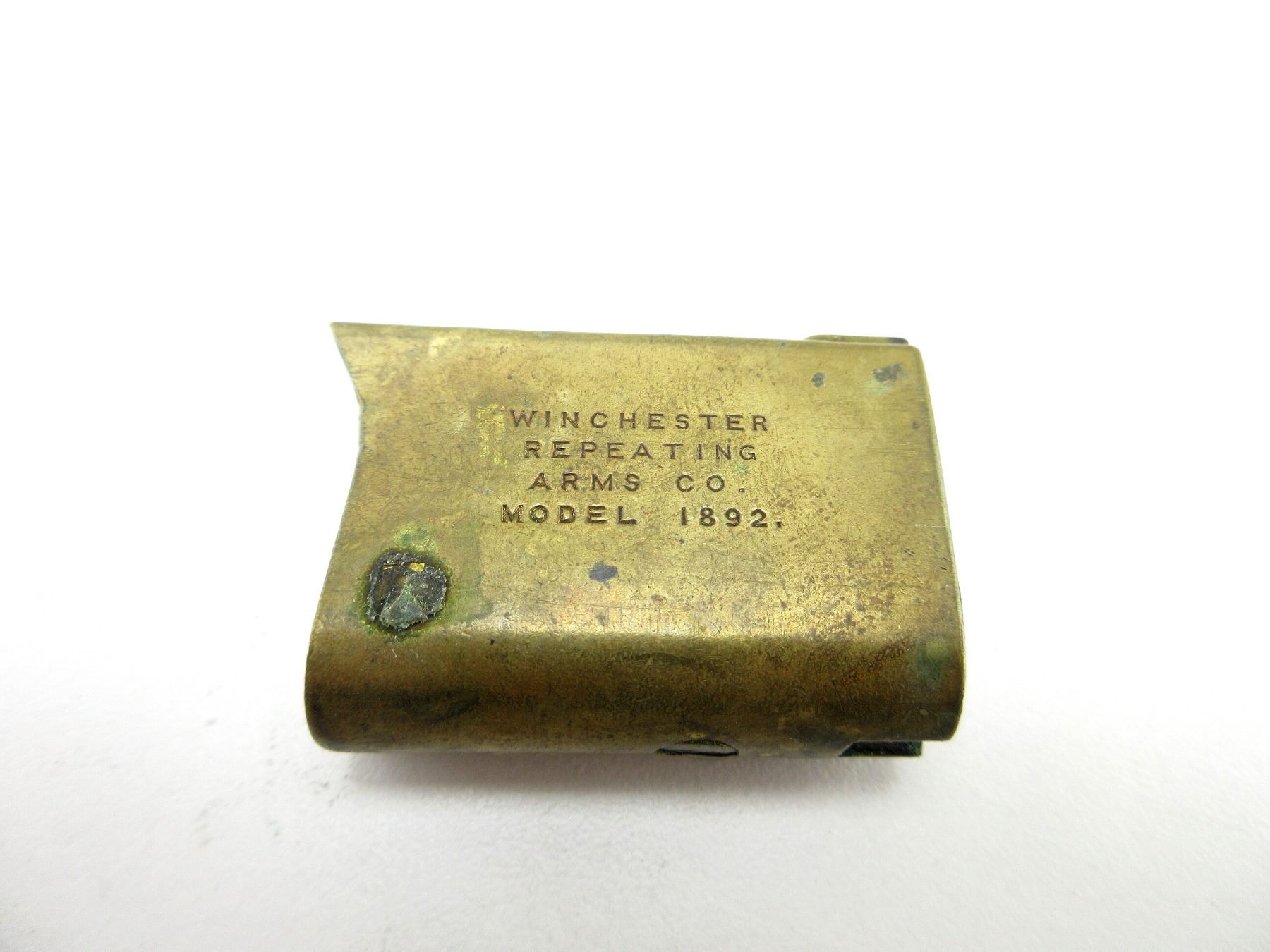 LOT INCLUDES; (1) WINCHESTER 1892 BORE MIRROR, BRASS CONSTRUCTION, MIRROR INTACT, MARKED: "WINCHESTER REPEATING ARMS CO., MODEL 1892", (1) UNKNOWN WINCHESTER CHECKERED BLACK POLYMER BUTT PLATE, NO SCREWS & (1) MOSSBERG SLING SWIVEL. MAY REQUIRE FITTING. SEE PHOTOS.