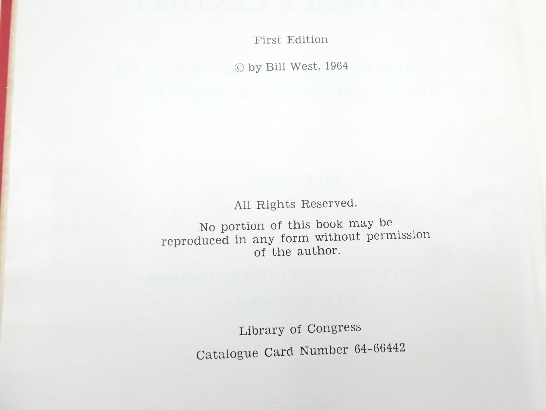 (1) BY BILL WEST, HARD COVER, COPYRIGHT 1964. SEE PHOTOS.