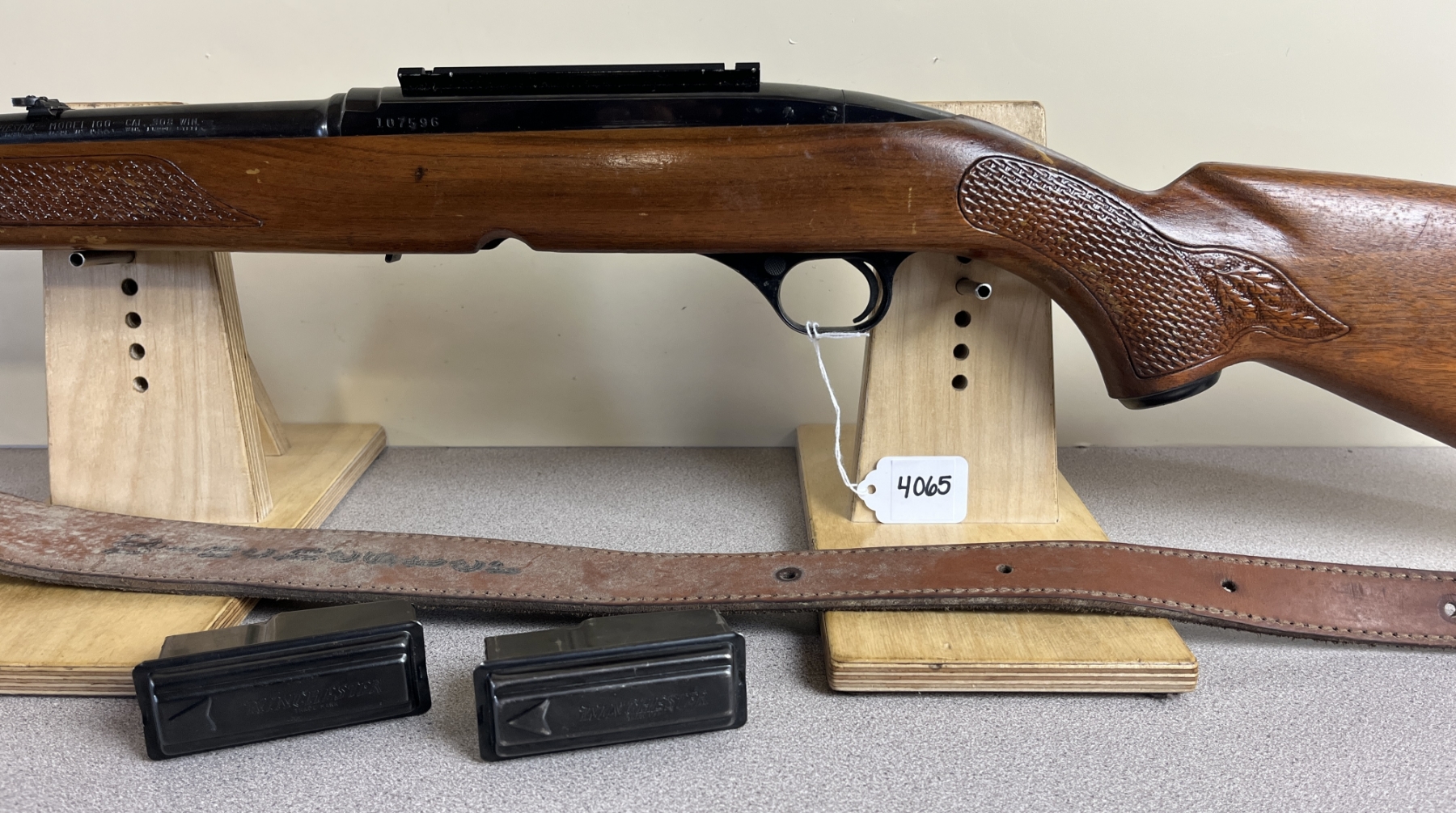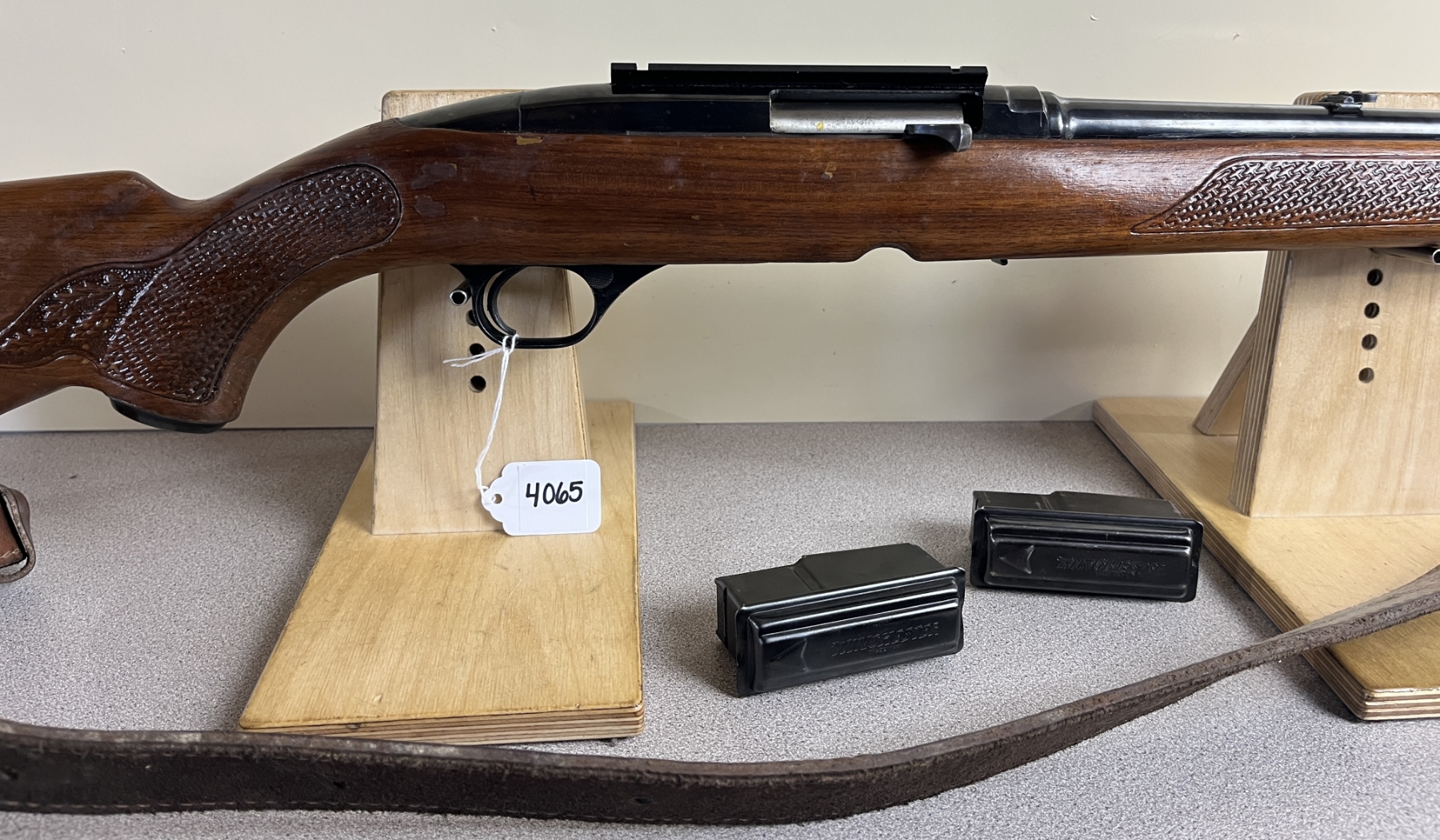 CONDITION: F-G OVERALL INCL BORE. SPECS: 21.5IN BBL W/ IRON SIGHTS. INCL 2X MAG.EXTRAS: LEATHER SLING. SCOPE BASE. S/N: 107596.