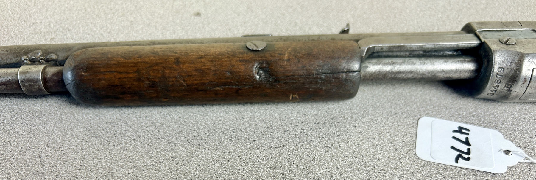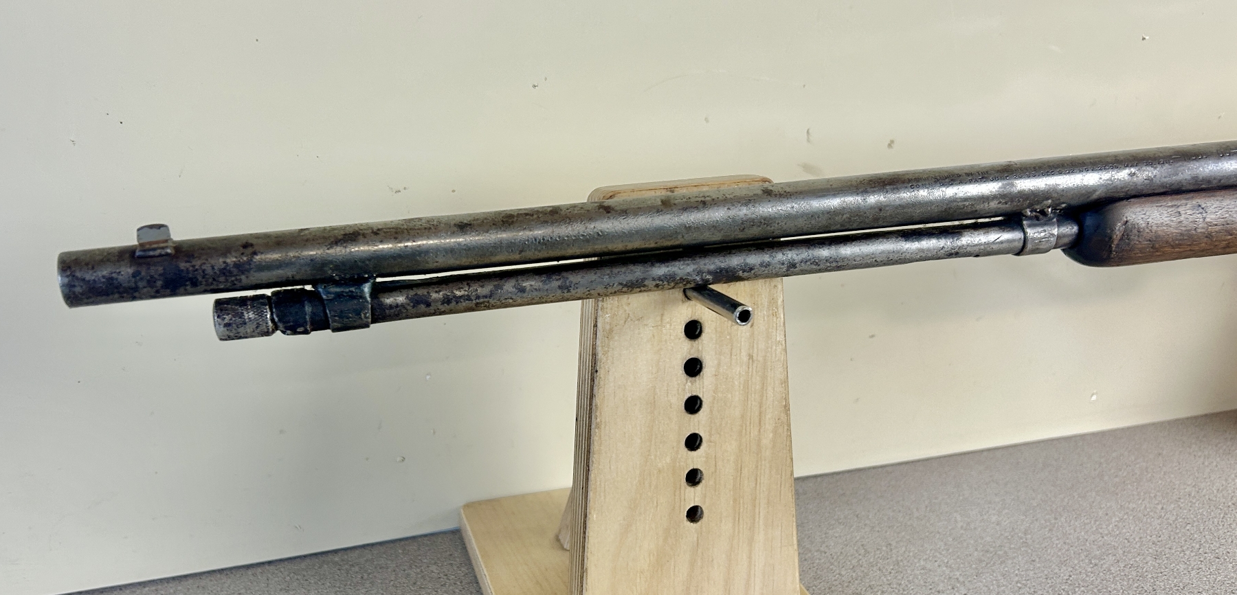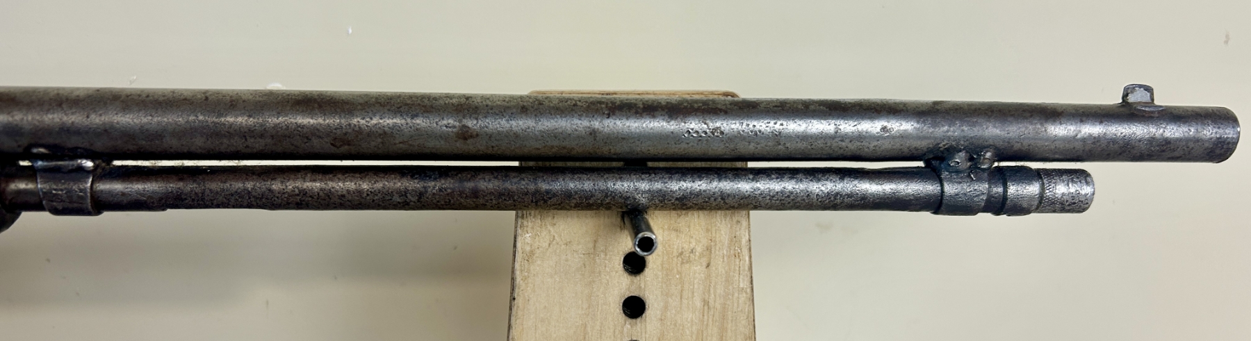 CONDITION: P OVERALL, BORE F. NOTE: RING NEAR MUZZLE APPROX 3IN BACK, STOCK HELD TOGETHER WITH TAPE, MAG TUBE HANGERS ARE WELDED, SIGNIFICANT PITTING THROUGHOUT. SPECS: 20IN BBL. EXTRAS: NONE. S/N: 314879