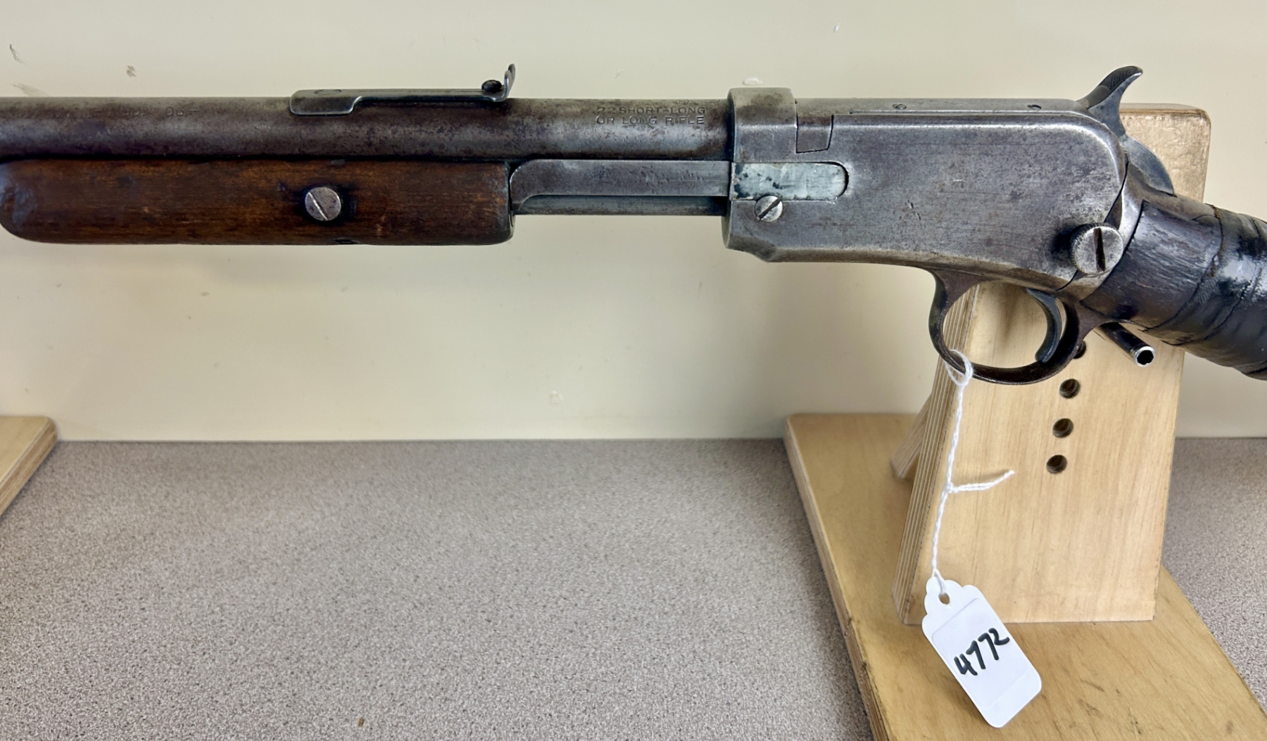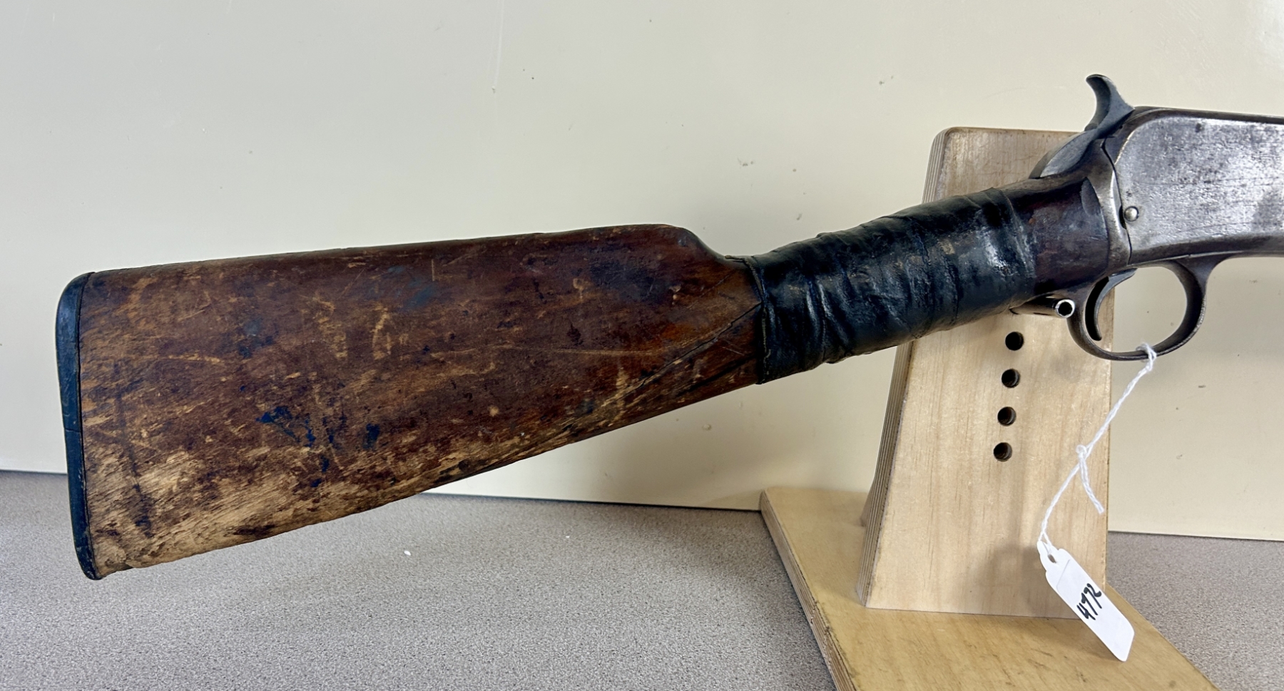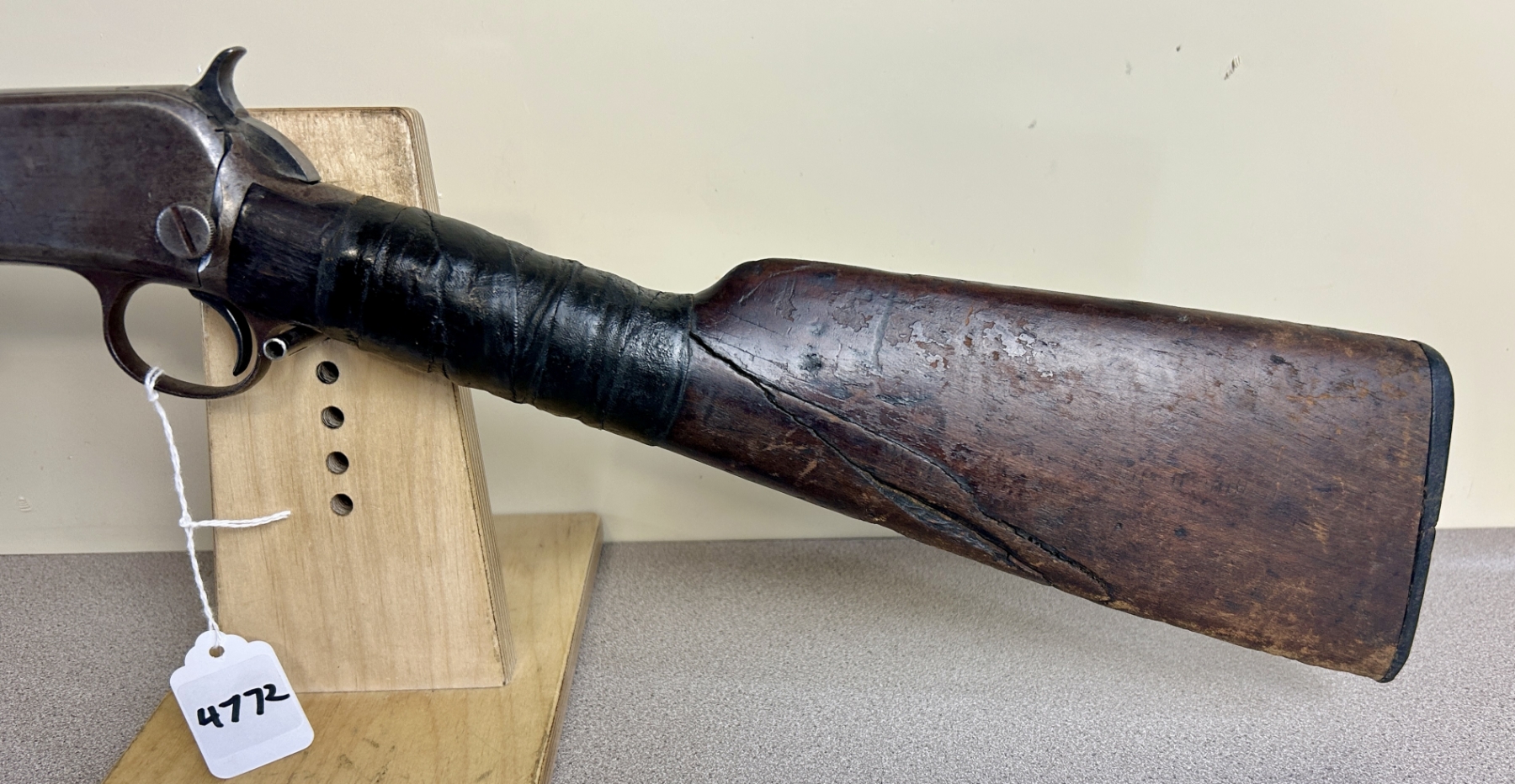 CONDITION: P OVERALL, BORE F. NOTE: RING NEAR MUZZLE APPROX 3IN BACK, STOCK HELD TOGETHER WITH TAPE, MAG TUBE HANGERS ARE WELDED, SIGNIFICANT PITTING THROUGHOUT. SPECS: 20IN BBL. EXTRAS: NONE. S/N: 314879