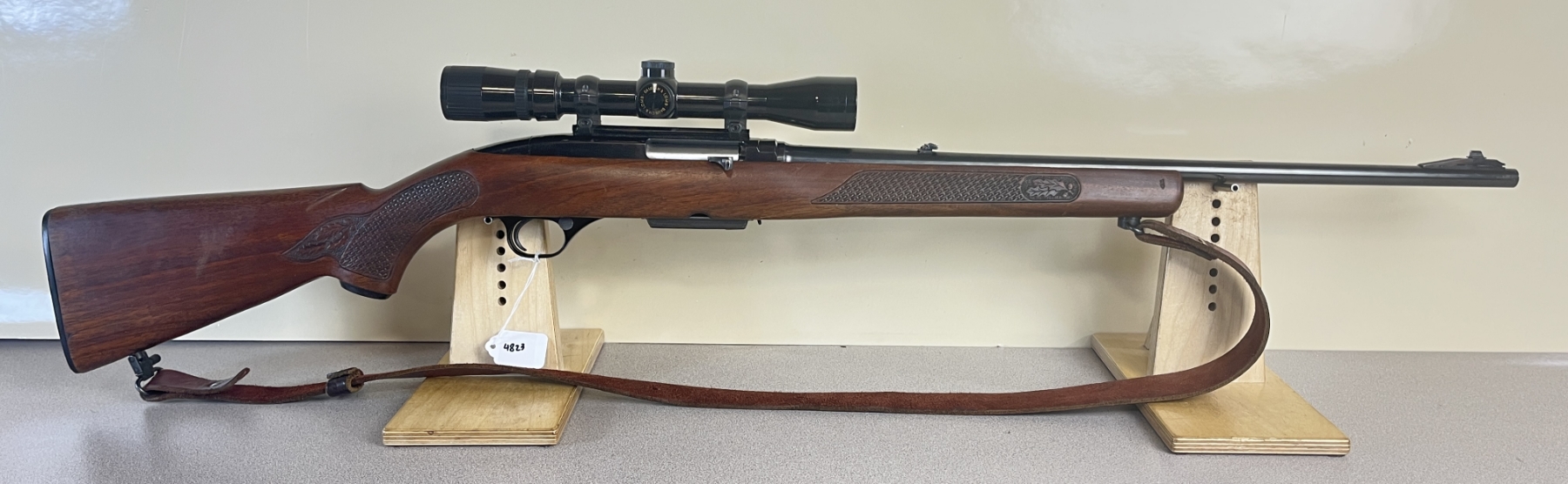 CONDITION: G-VG OVERALL INCL BORE. SPECS: 22IN BBL WITH SIGHTS. EXTRAS: BAUSH AND LOMB BALVAR 1.5-6X32 SCOPE CLEAR WITH CROSSHAIRS, LEATHER SLING. S/N: 149018