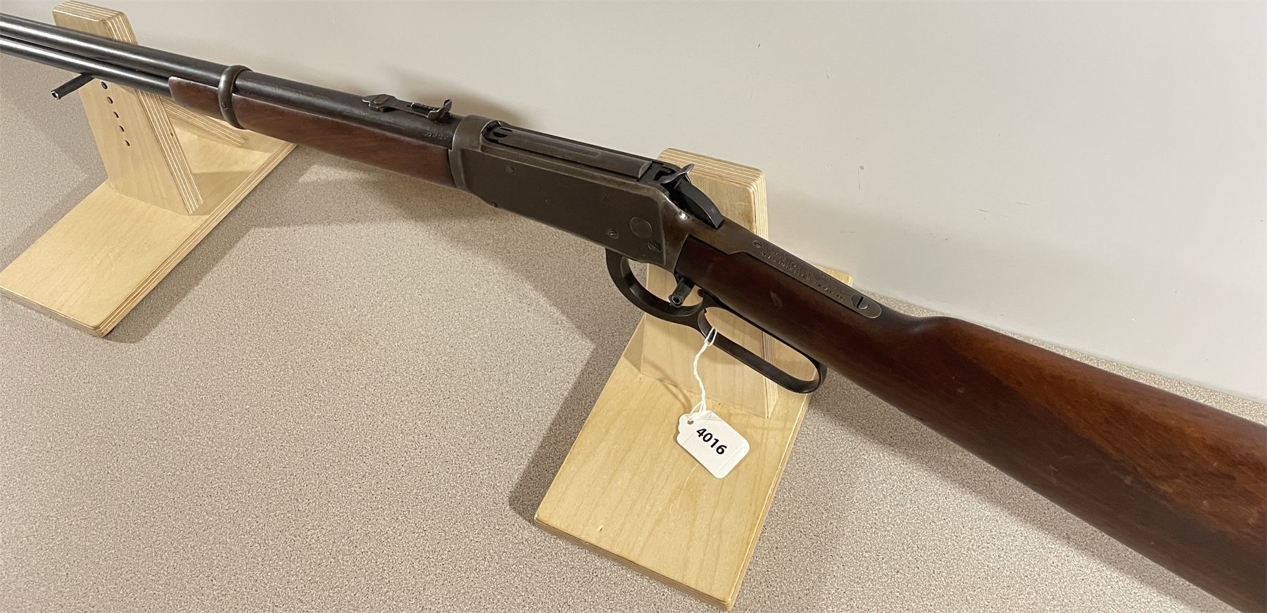 CONDITION: G OVERALL INCLUDING BORE. STOCK CHIPPED BEHIND TRIGGER. MINOR BARREL PITTING. SPECS: 20 INCH BARREL. EXTRAS: NONE. S/N: 698738.