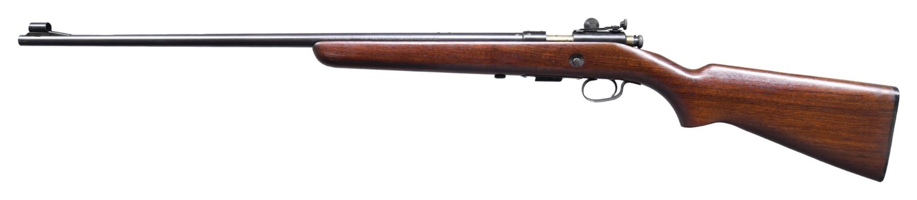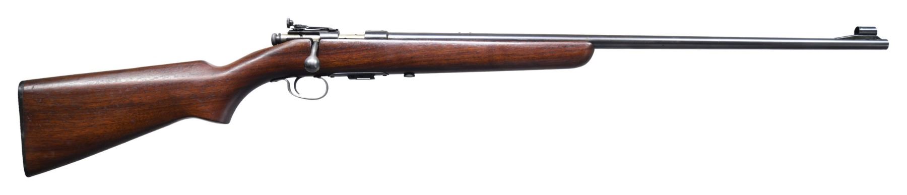 Cal. 22 S, L, LR. NSN. Mfg. 1935-1963. Bbl. 25". Hooded 80A target front sight & Number 97B rear aperture sight; drilled & tapped for open sights. Cock on close action. Walnut stock with Win. buttplate. MAGS: 1 - 5 rd. CONDITION: Very good original blue lightly fading & mixing with brown patina showing scattered handling marks & spots of finish loss throughout. Very good original wood finish with scattered light handling marks & mildew stains on buttstock. Very good shiny bore. (25-1780/MD). CURIO. $300-400.