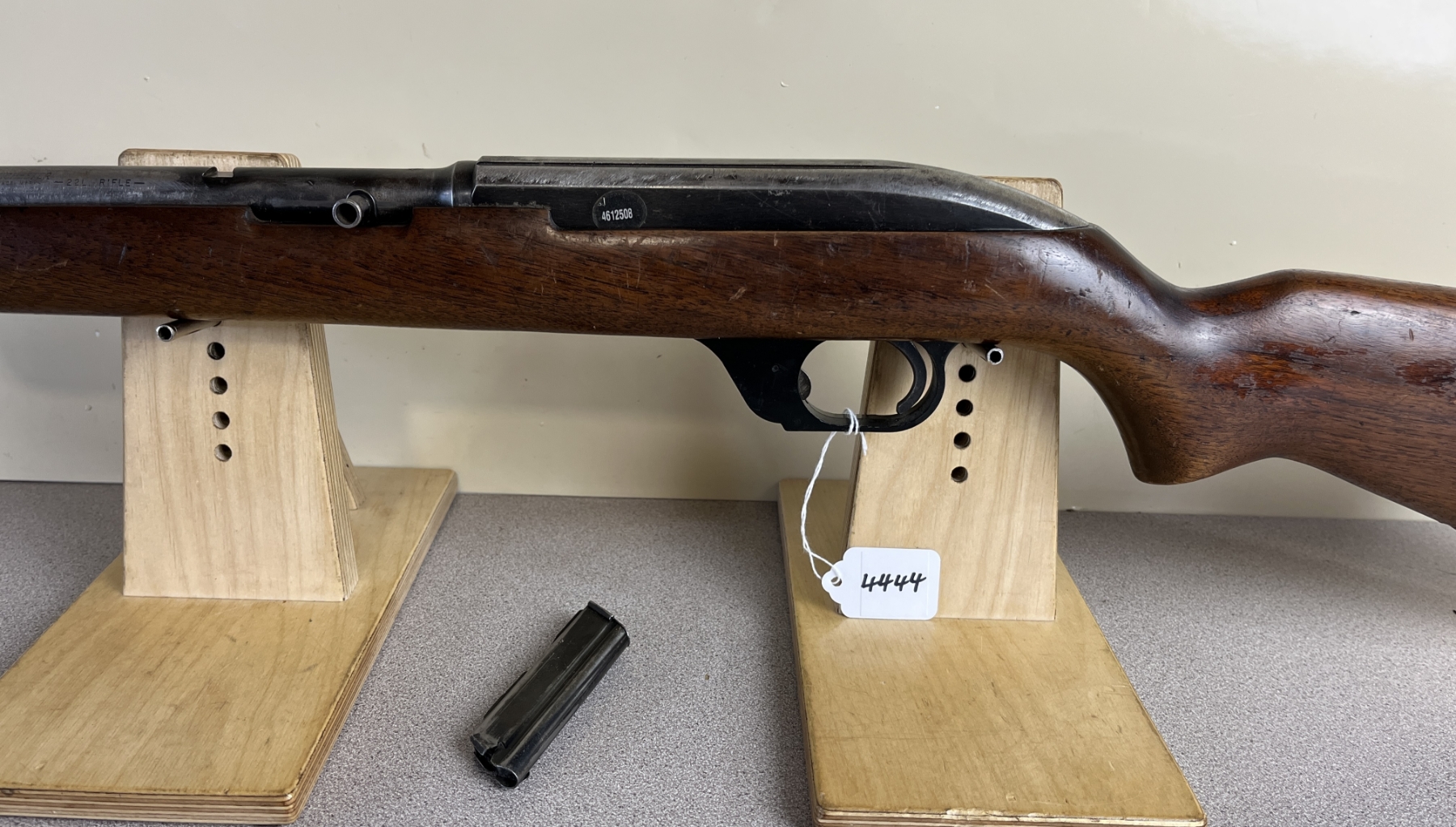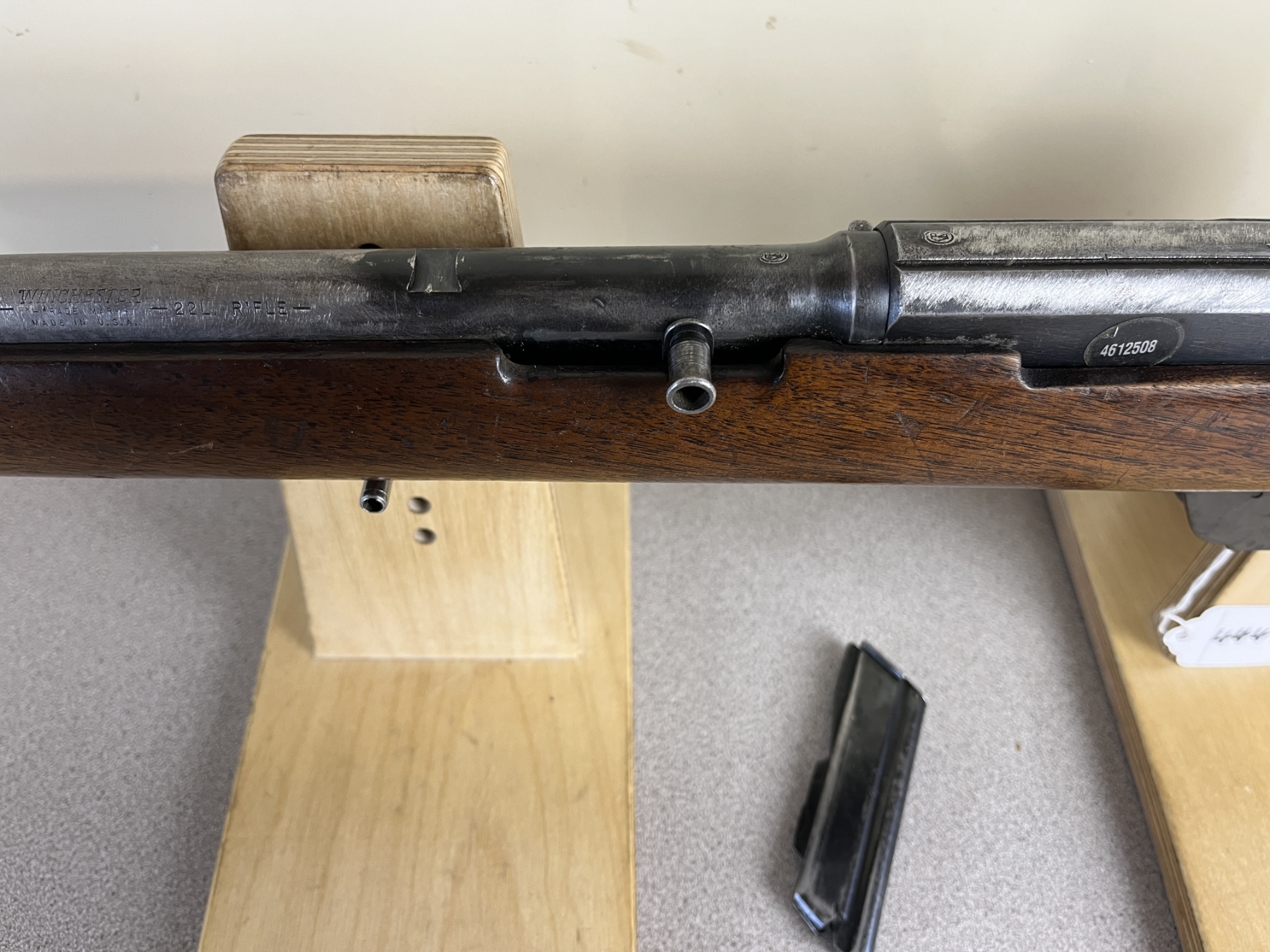 CONDITION: F OVERALL INCL BORE. NOTE STOCK REPAIR AT HEEL. MISSING REAR SIGHT. RIFLE SHOWS SIGNS OF POWER GRINDER BEING USED TO REMOVE CORROSION. SPECS: 22IN BBL. INCL 1X MAGAZINE. EXTRAS: NONE. S/N: 4612508