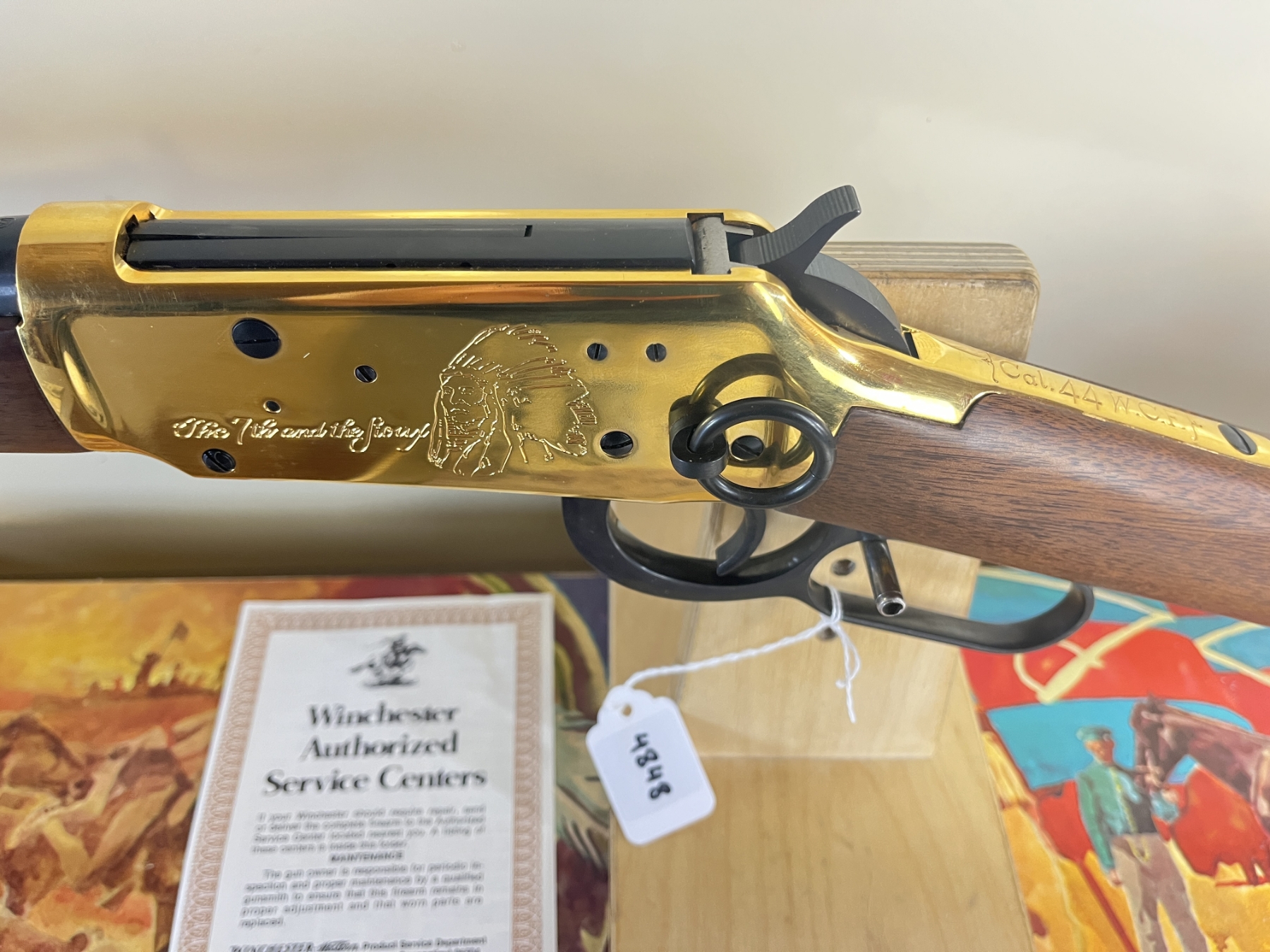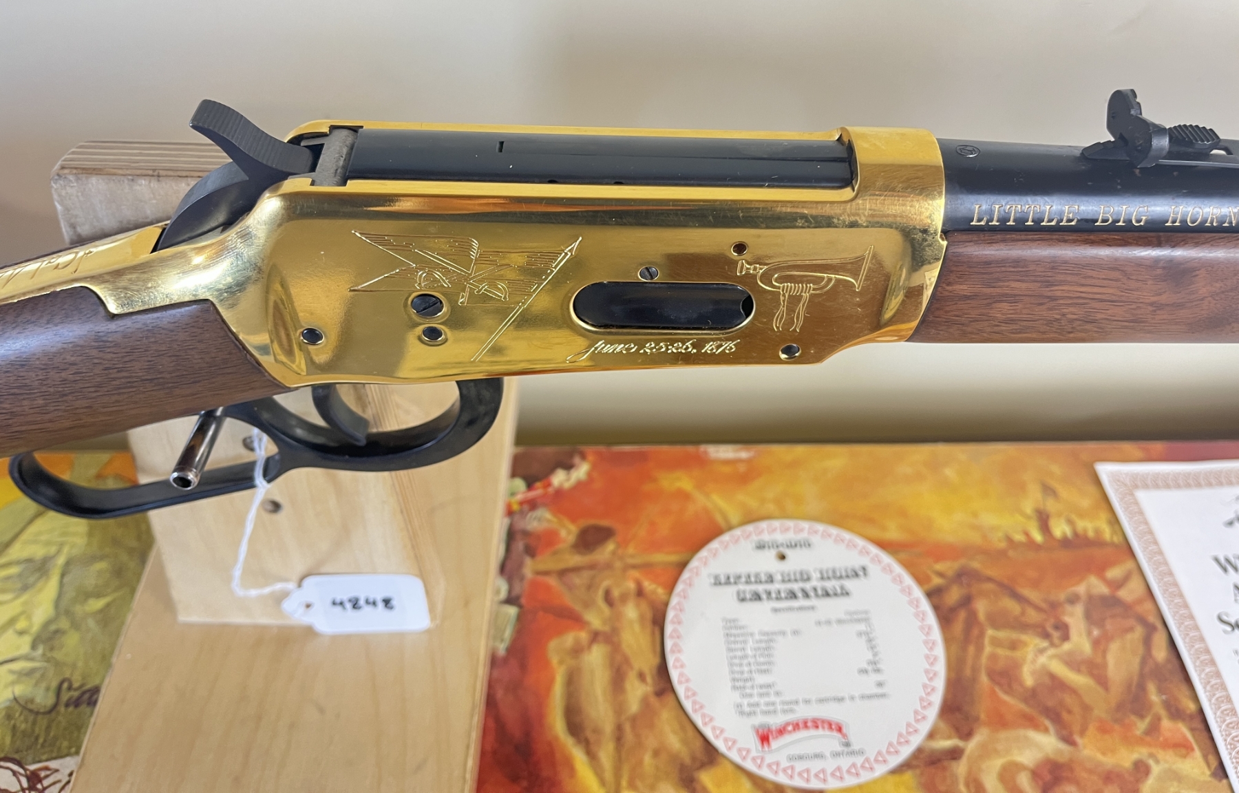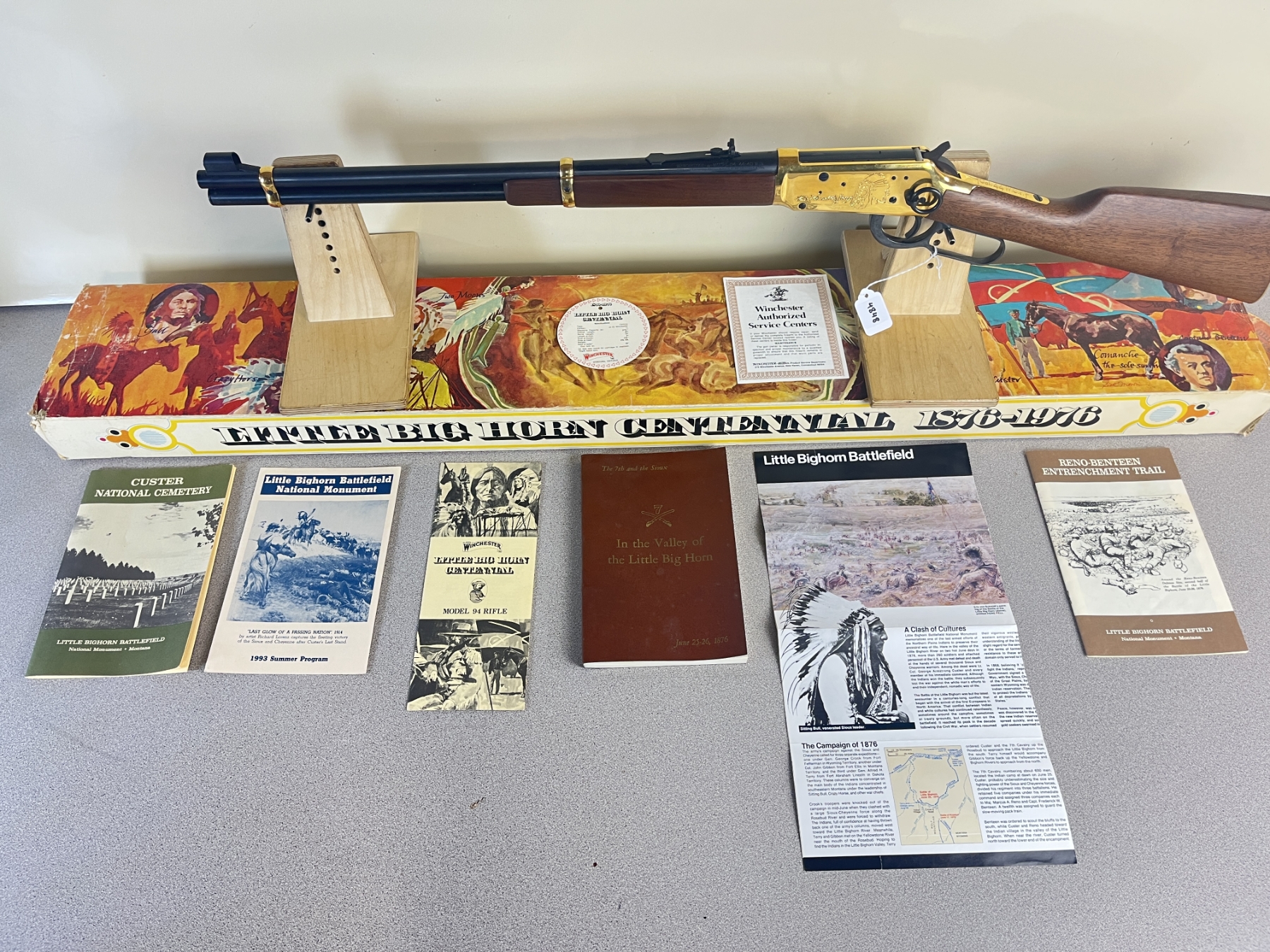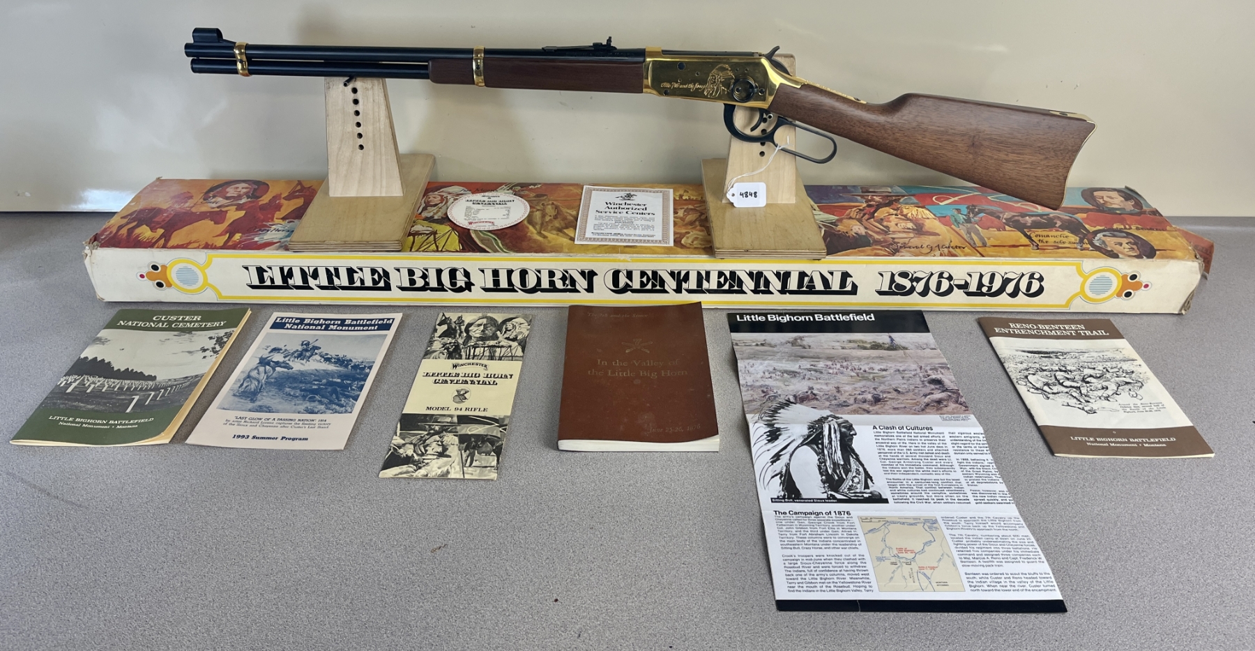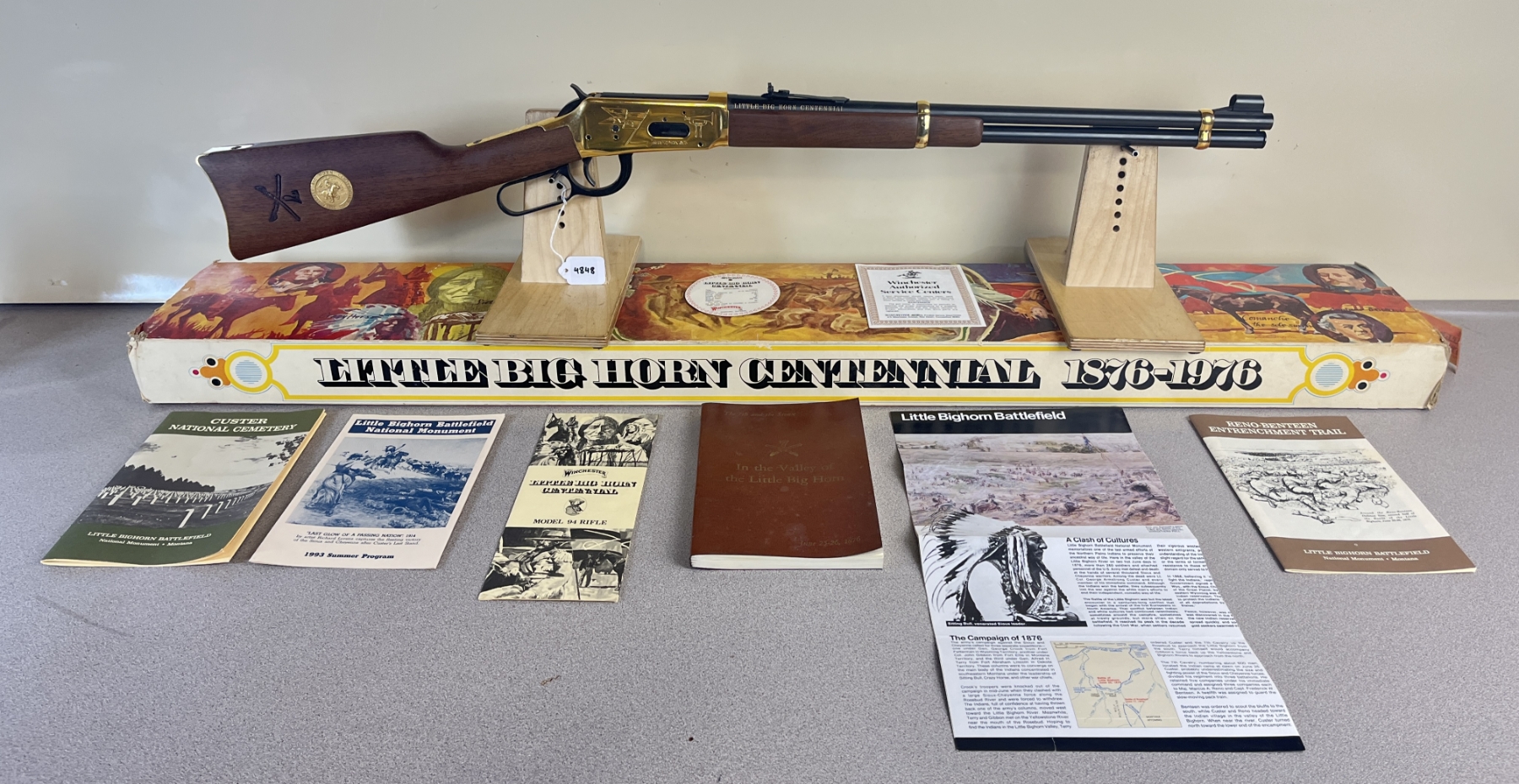 CONDITION: VG OVERALL INCL BORE. SPECS: 20IN BBL. GOLDEN ENGRAVED RECEIVER. EXTRAS: ORIGINAL BOX AND PAPERWORK, MISCELLANEOUS PUBLICATIONS ON THE BATTLE OF LITTLE BIG HORN. S/N: LBH08526