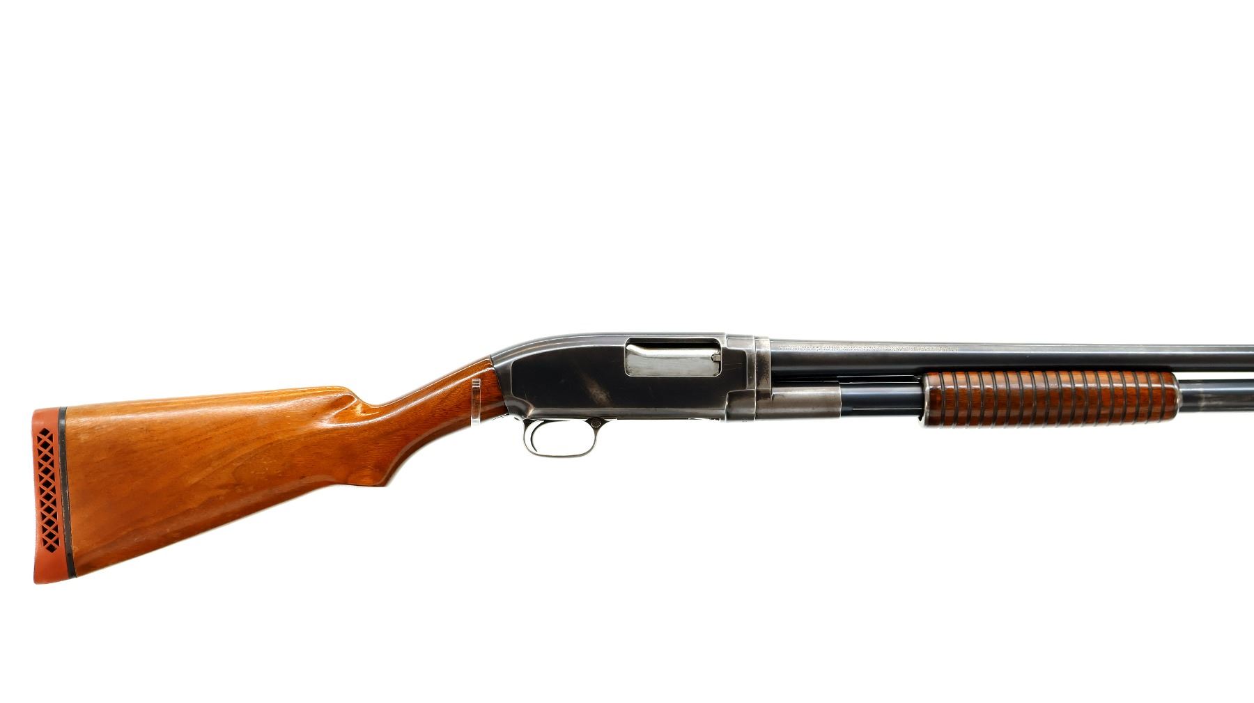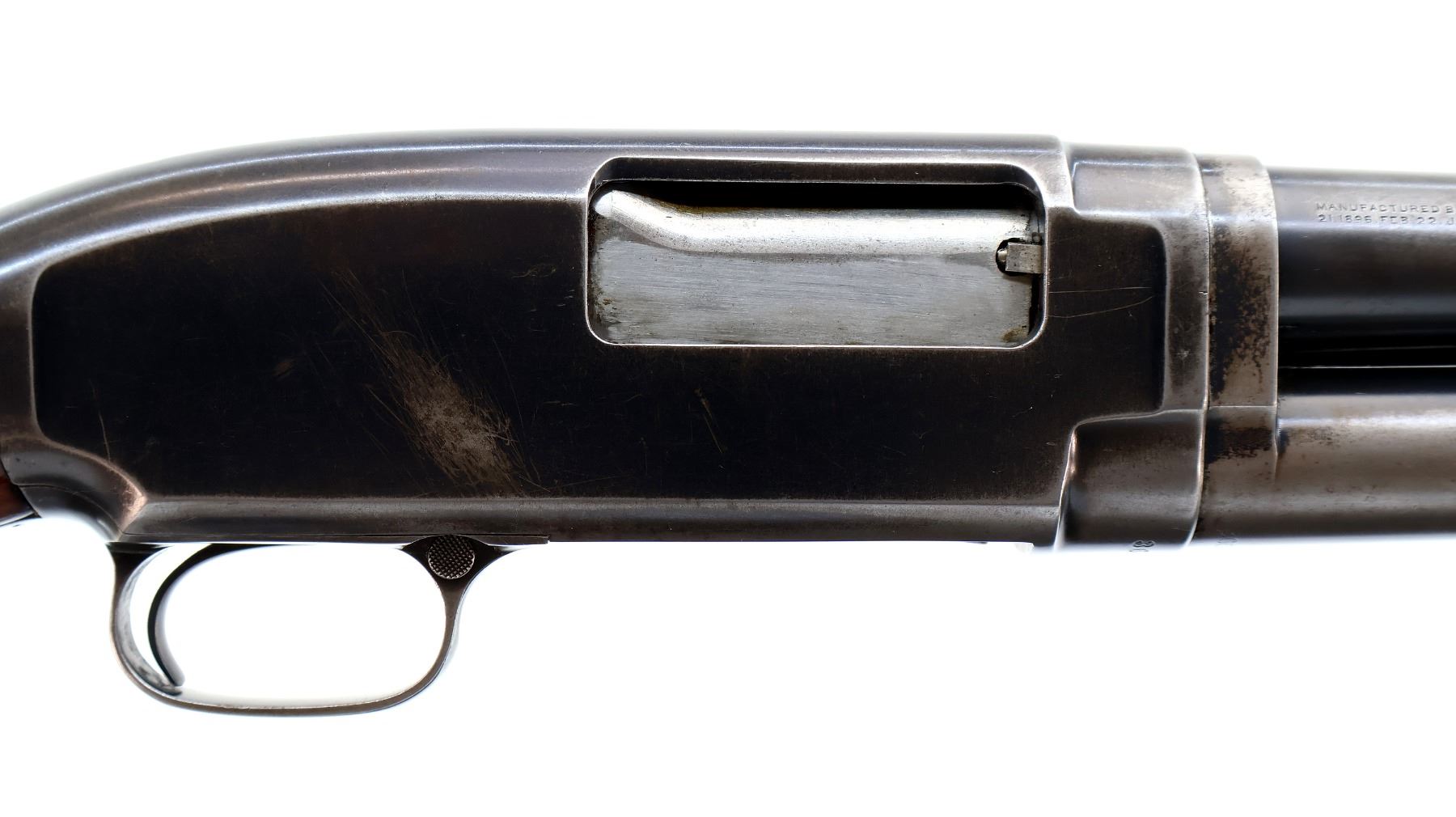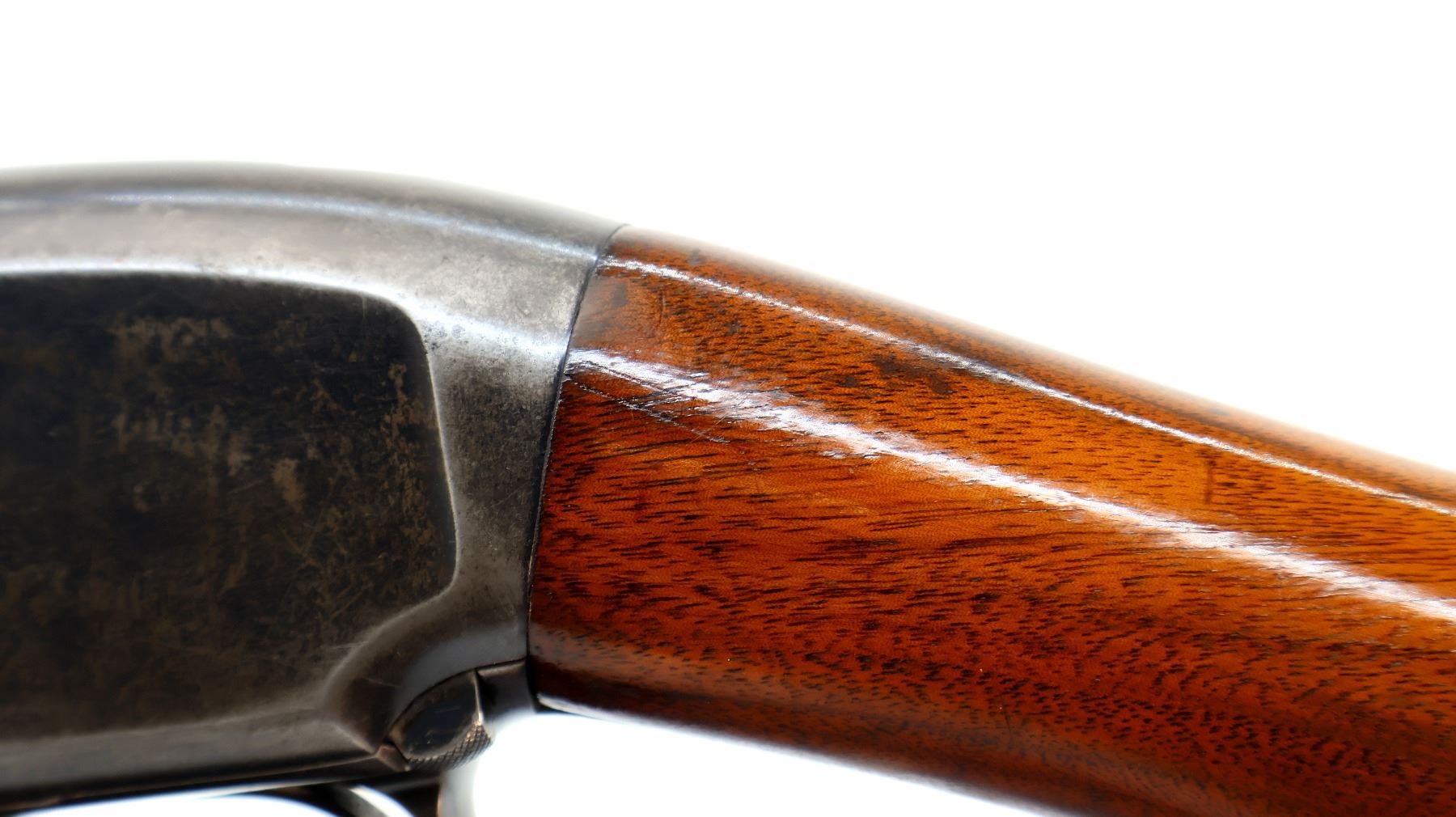 Main Description: Manufactured 1923. Silver bead, blued finish, round barrel. Two piece wood stocks, grooved forearm, pistol grip, red vented rubber recoil pad, 13.75" LOP