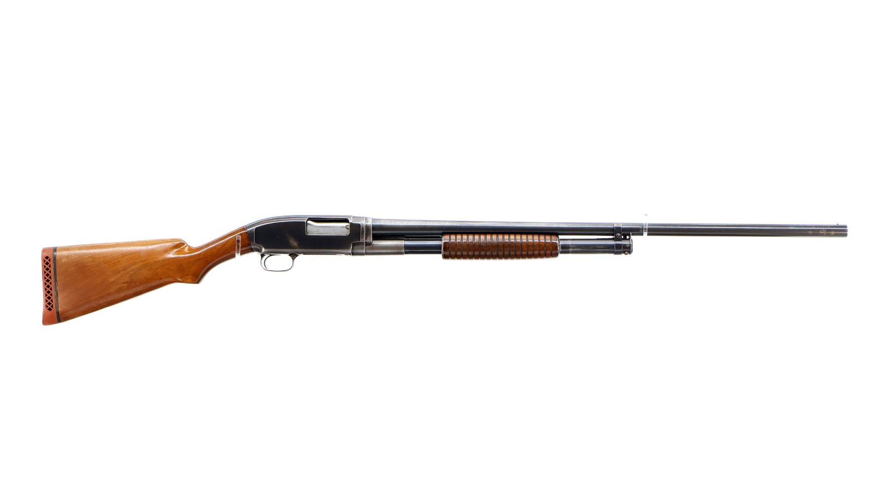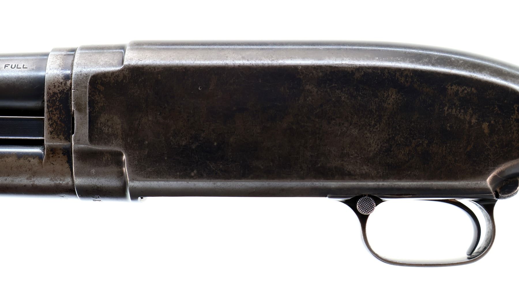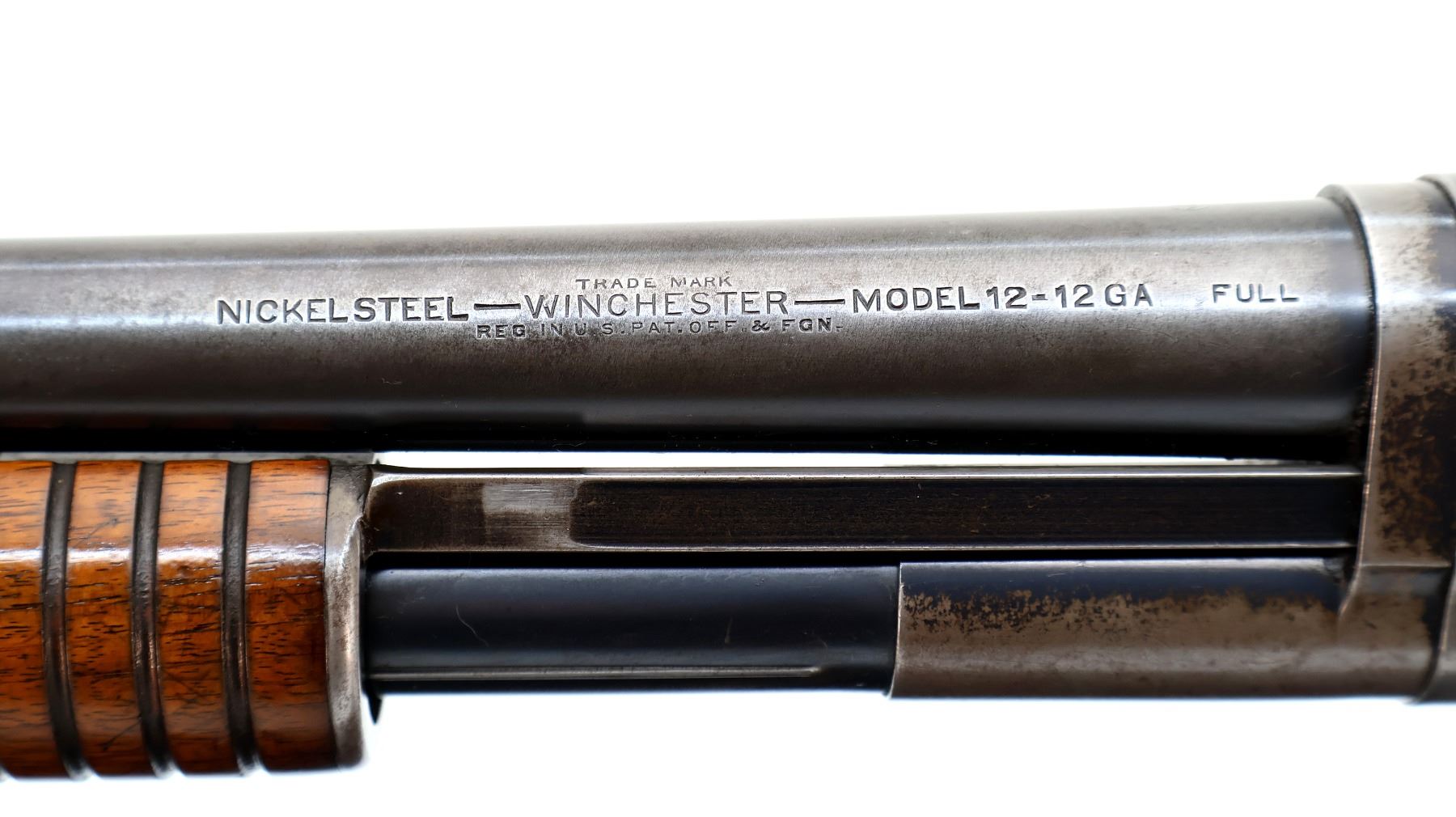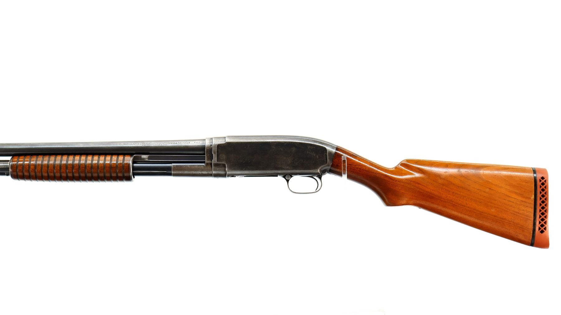 Main Description: Manufactured 1923. Silver bead, blued finish, round barrel. Two piece wood stocks, grooved forearm, pistol grip, red vented rubber recoil pad, 13.75" LOP