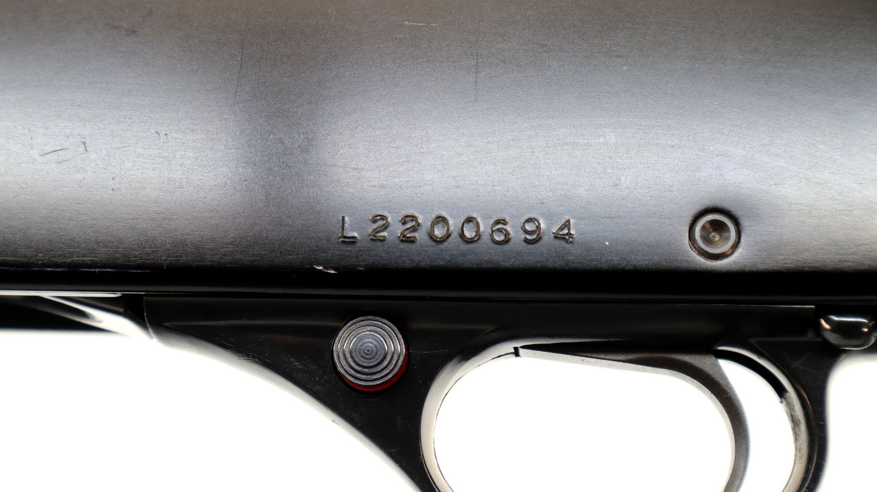 Main Description: Brass bead, blued round barrel, black alloy receiver. Two piece wood stocks, grooved forearm, pistol grip, black vented rubber recoil pad, 13" LOP
