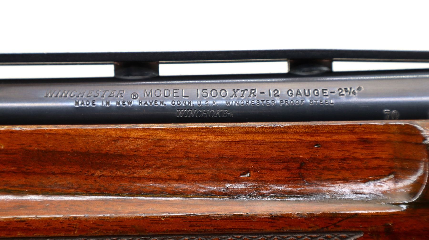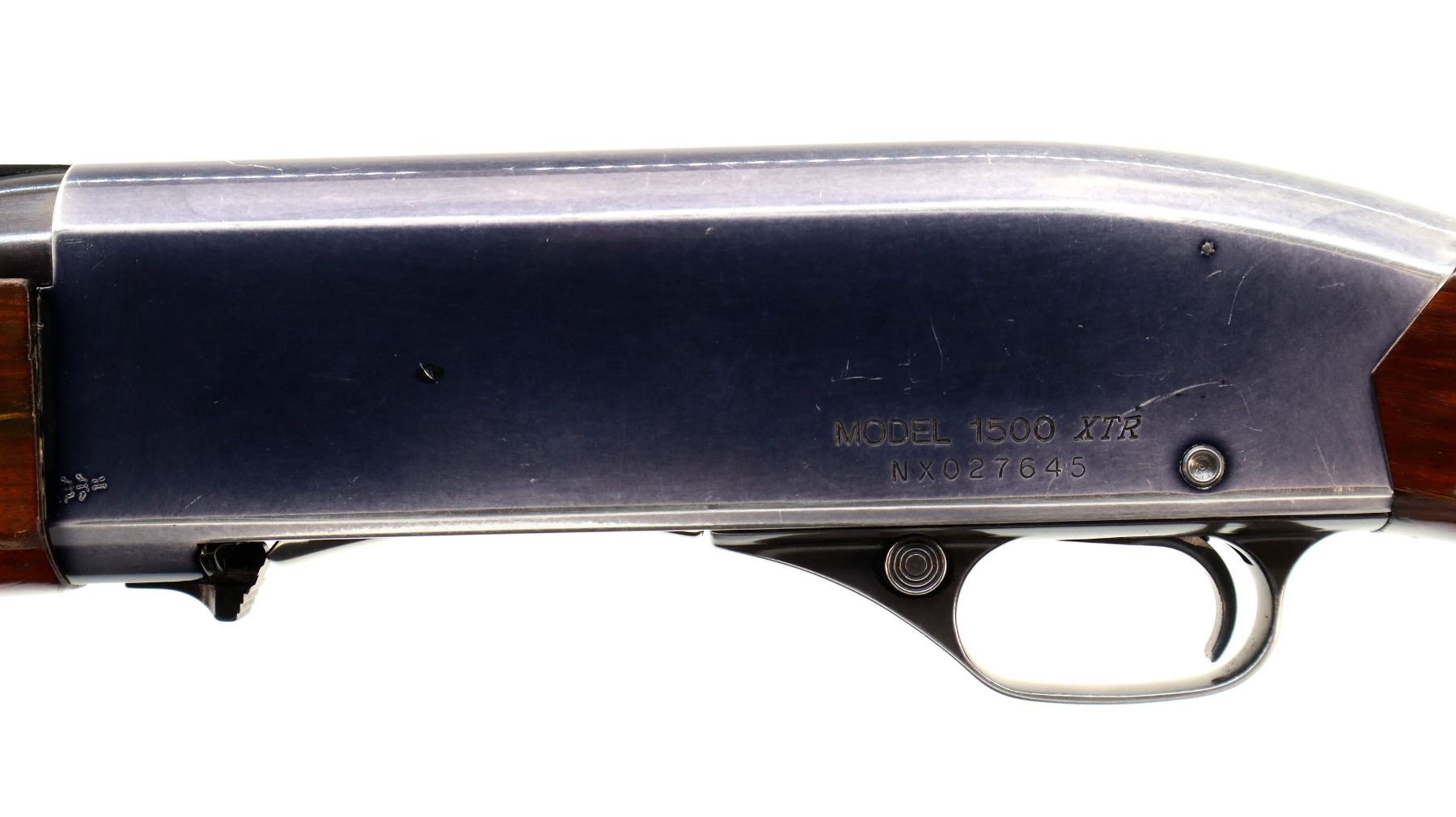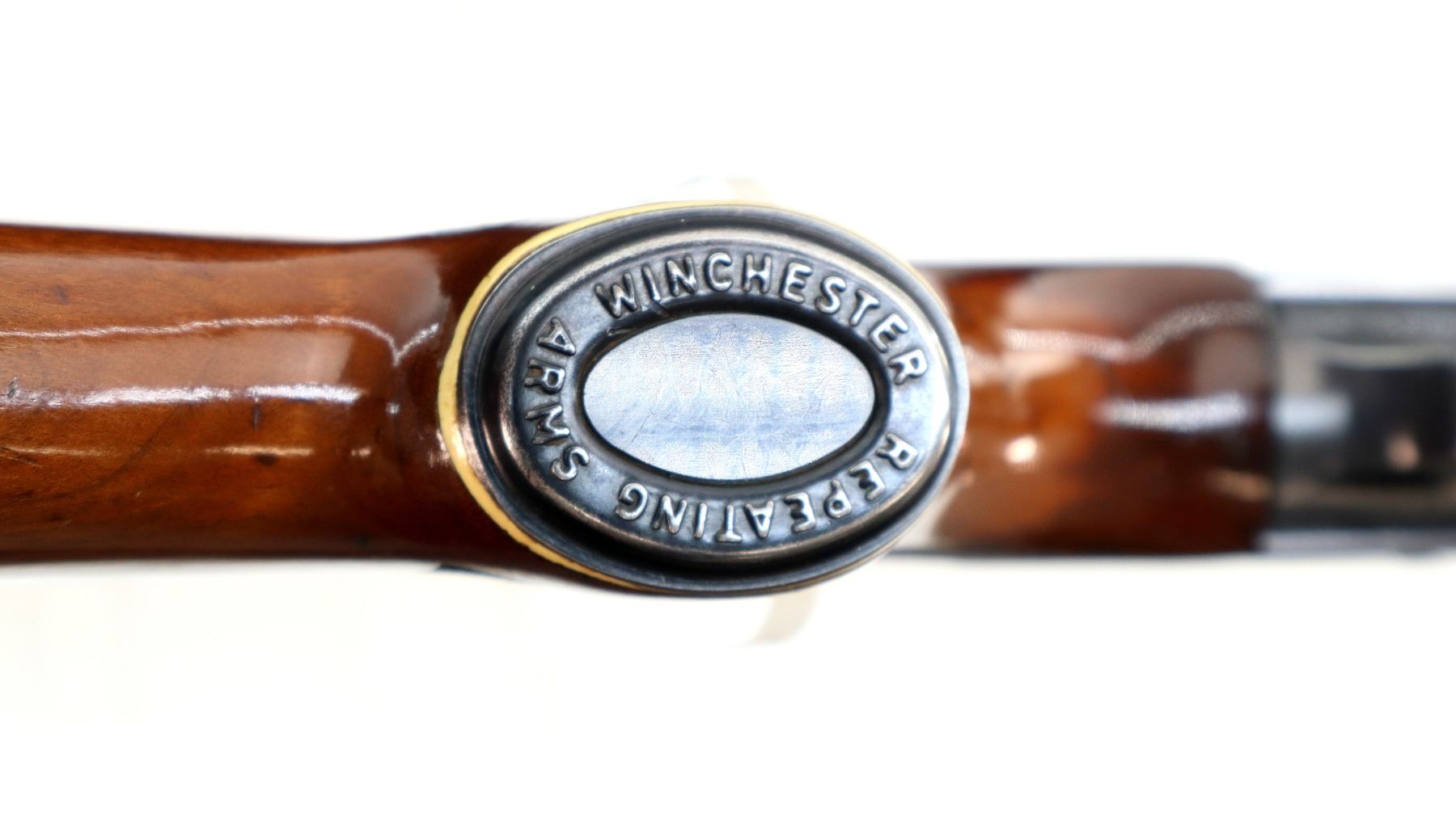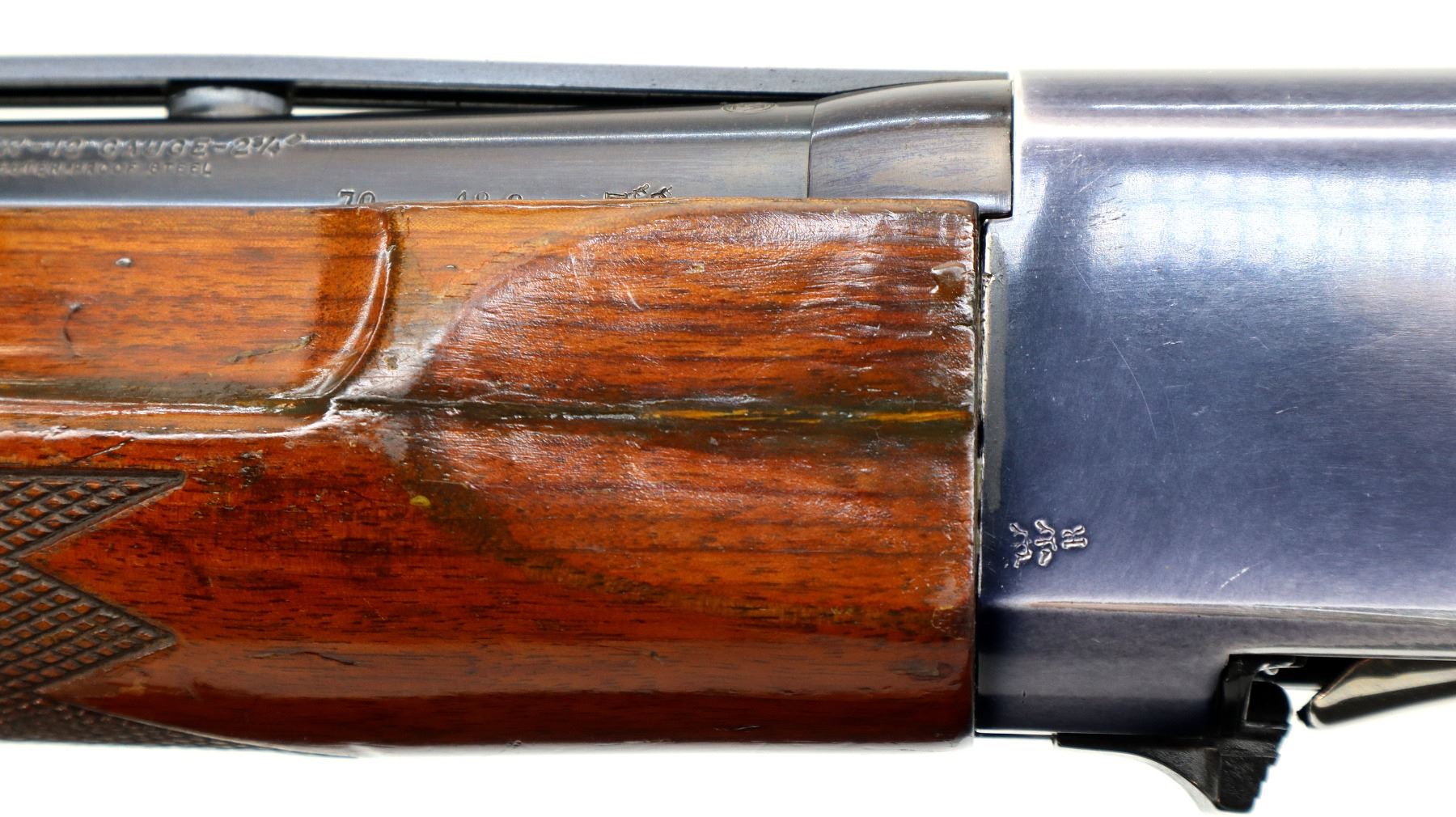 Main Description: Brass bead, blued vent rib barrel, black alloy receiver, jeweled bolt, slide release does not function requires parts, adjustment or repair. Two piece wood stocks, checkered forearm which is cracked and repaired, checkered pistol grip and black polymer butt plate, steel grip cap.