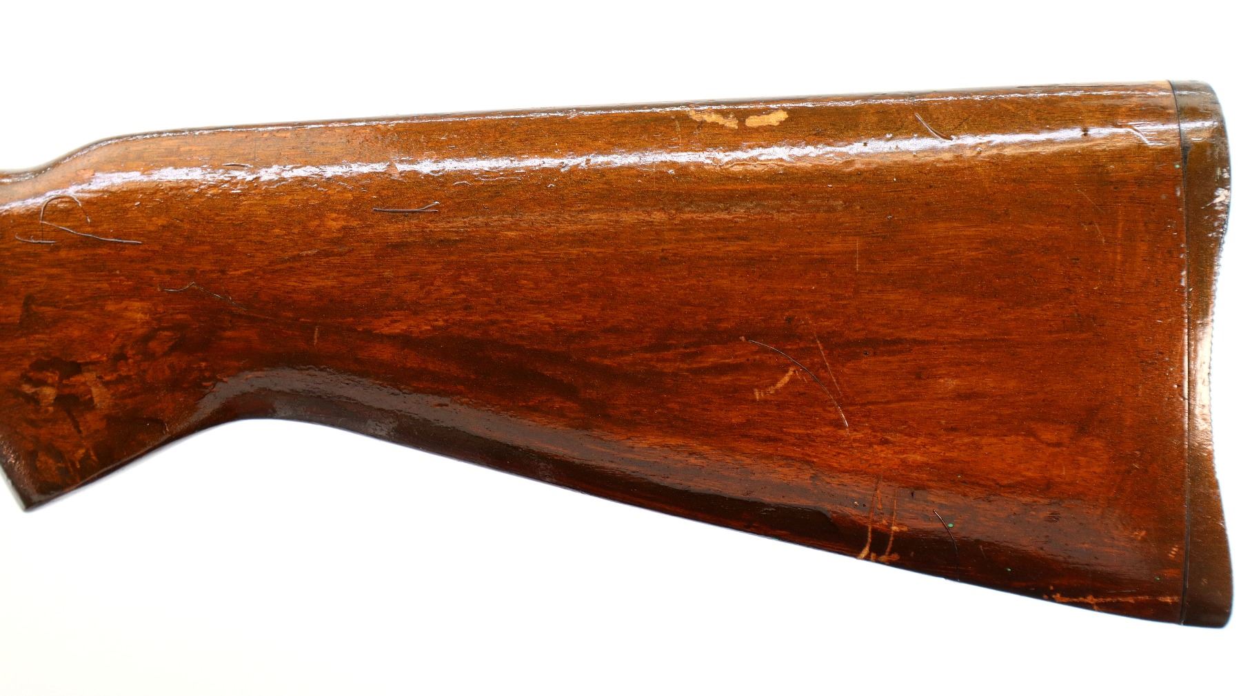 Wear: Metal finish turning brown with light rust speckles, scratches, handling marks and wear. Stocks show marks, scratches and wear.