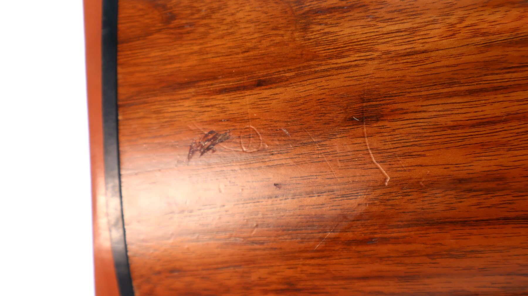 Wear: Metal finish shows some light rust speckles, scratches, handling marks and wear. Stock shows some marks, scratches and wear.