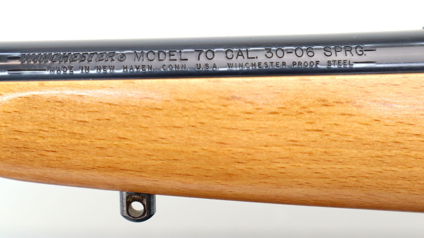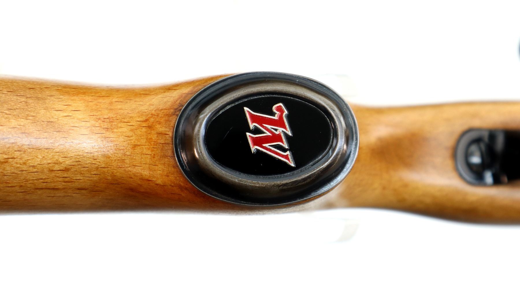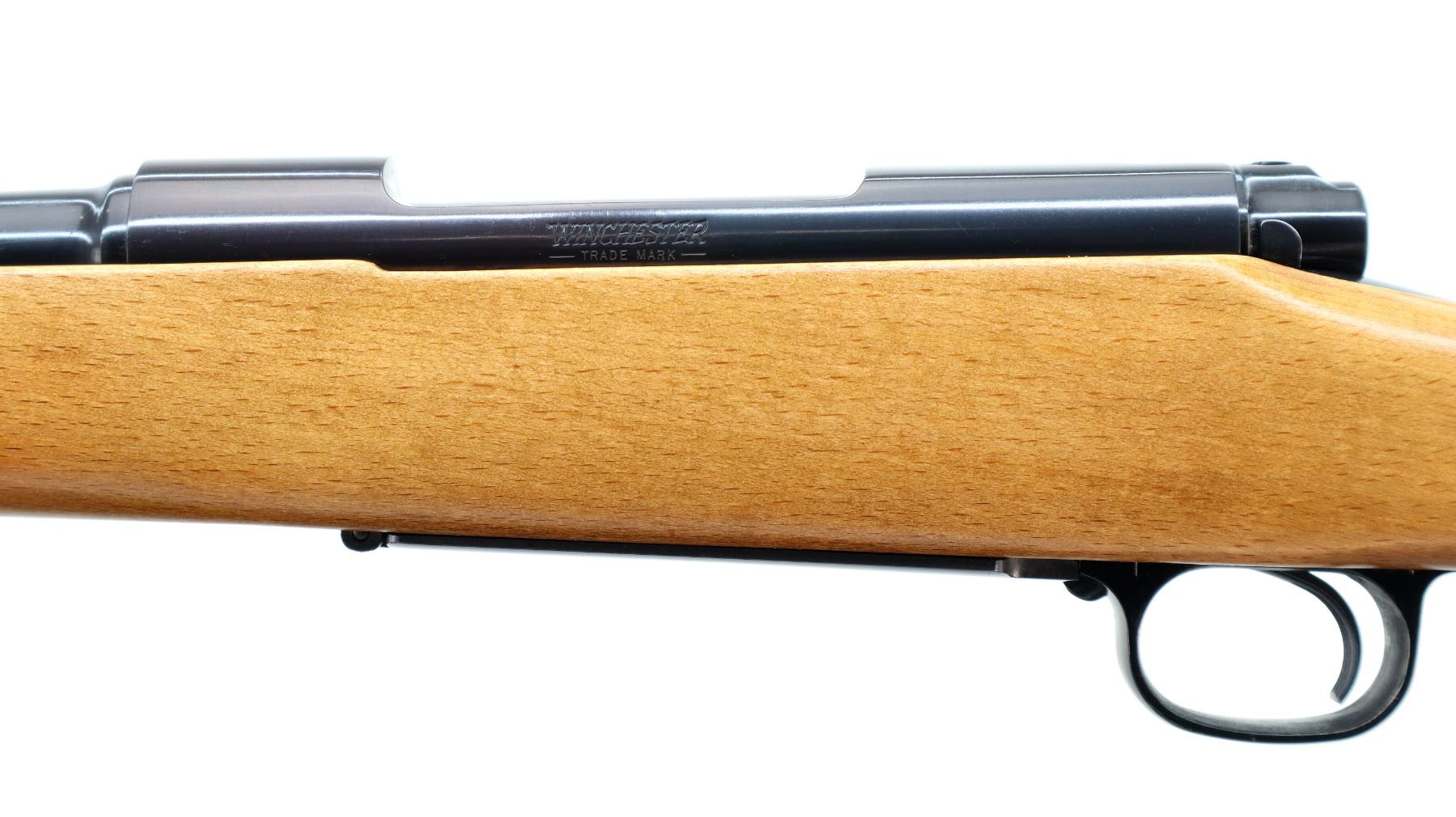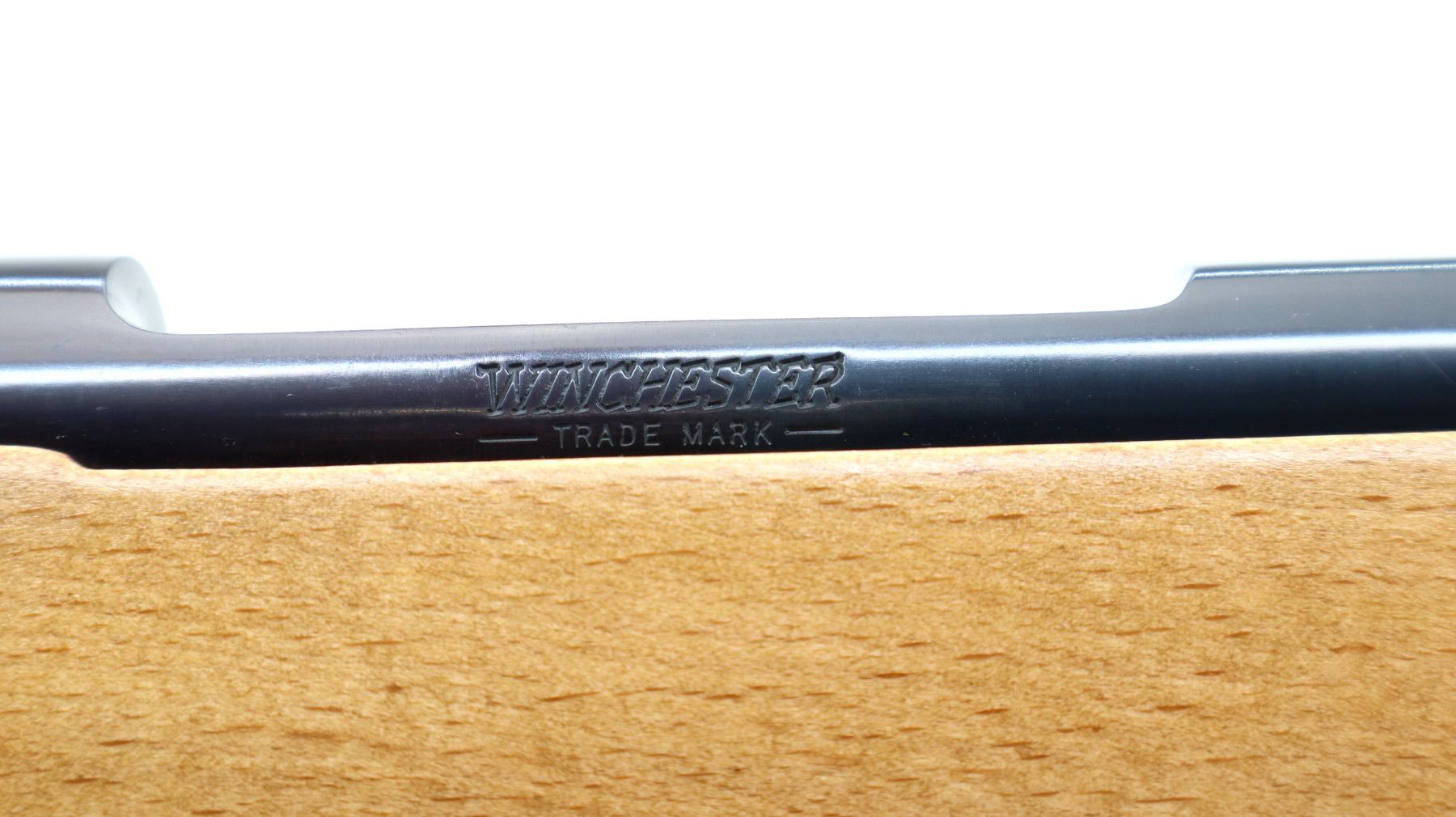 Main Description: Blade front sight with hood and ramp, adjustable folding u notched rear sight with ramp, blued finish, receiver drilled and tapped with plug screws installed, checkered bolt knob. One piece wood stock, pistol grip, black rubber recoil pad, 13.75" LOP, steel grip cap, hinged floor plate, swivel studs.