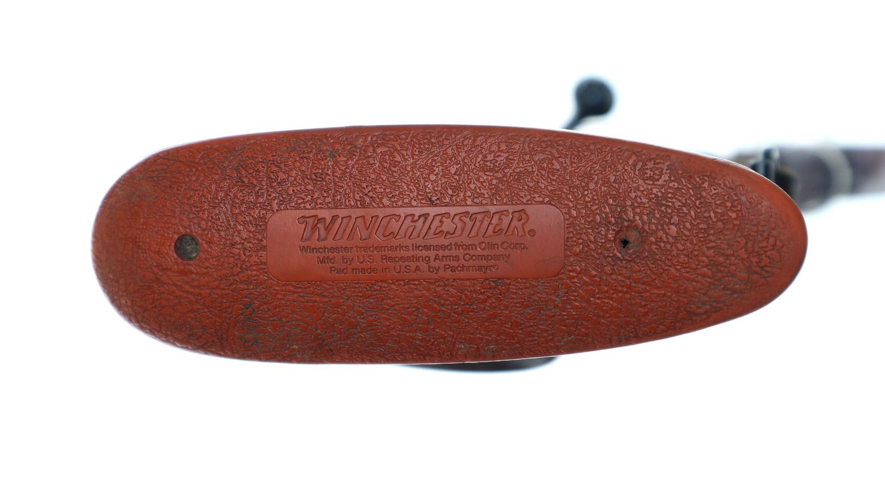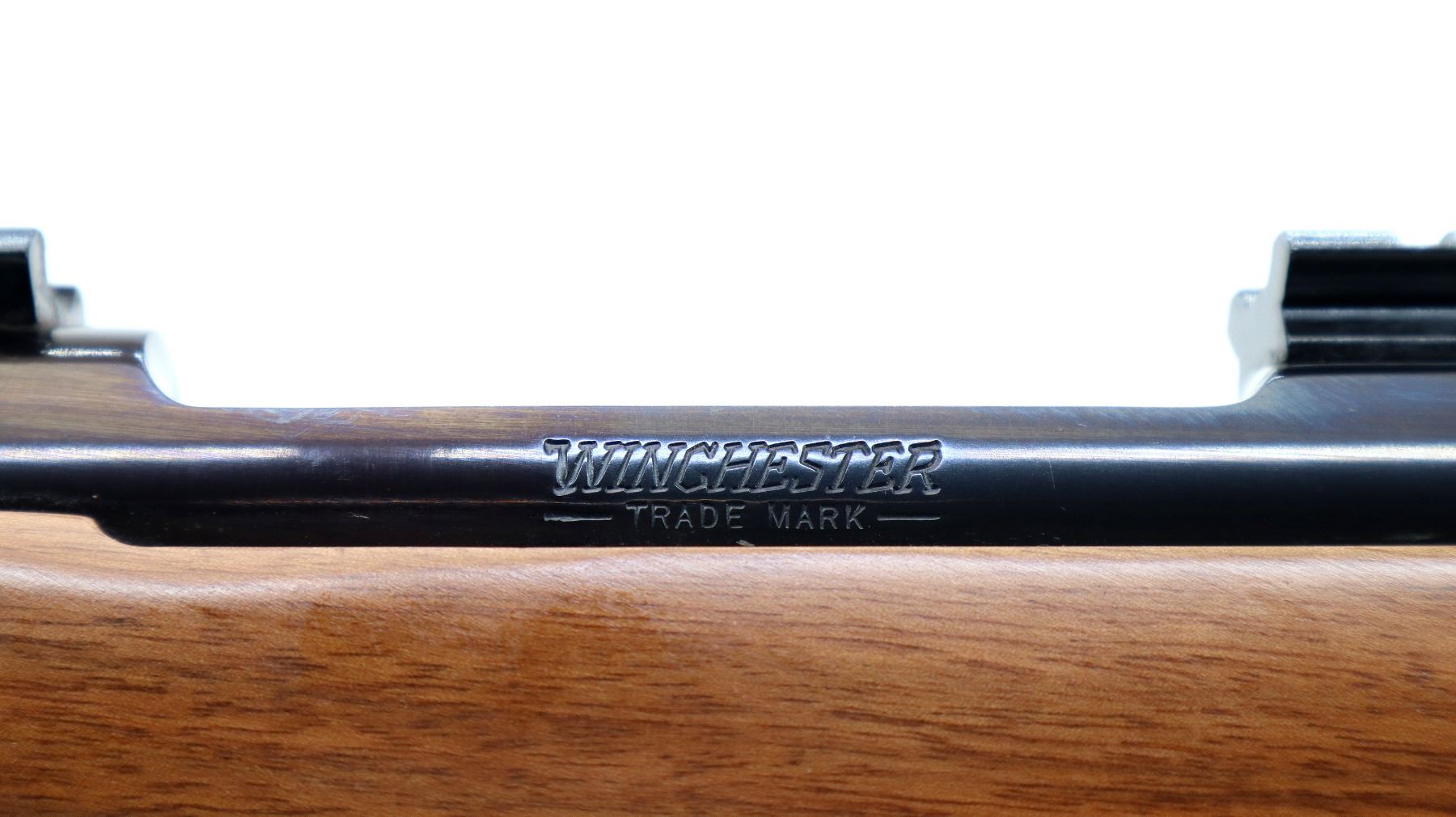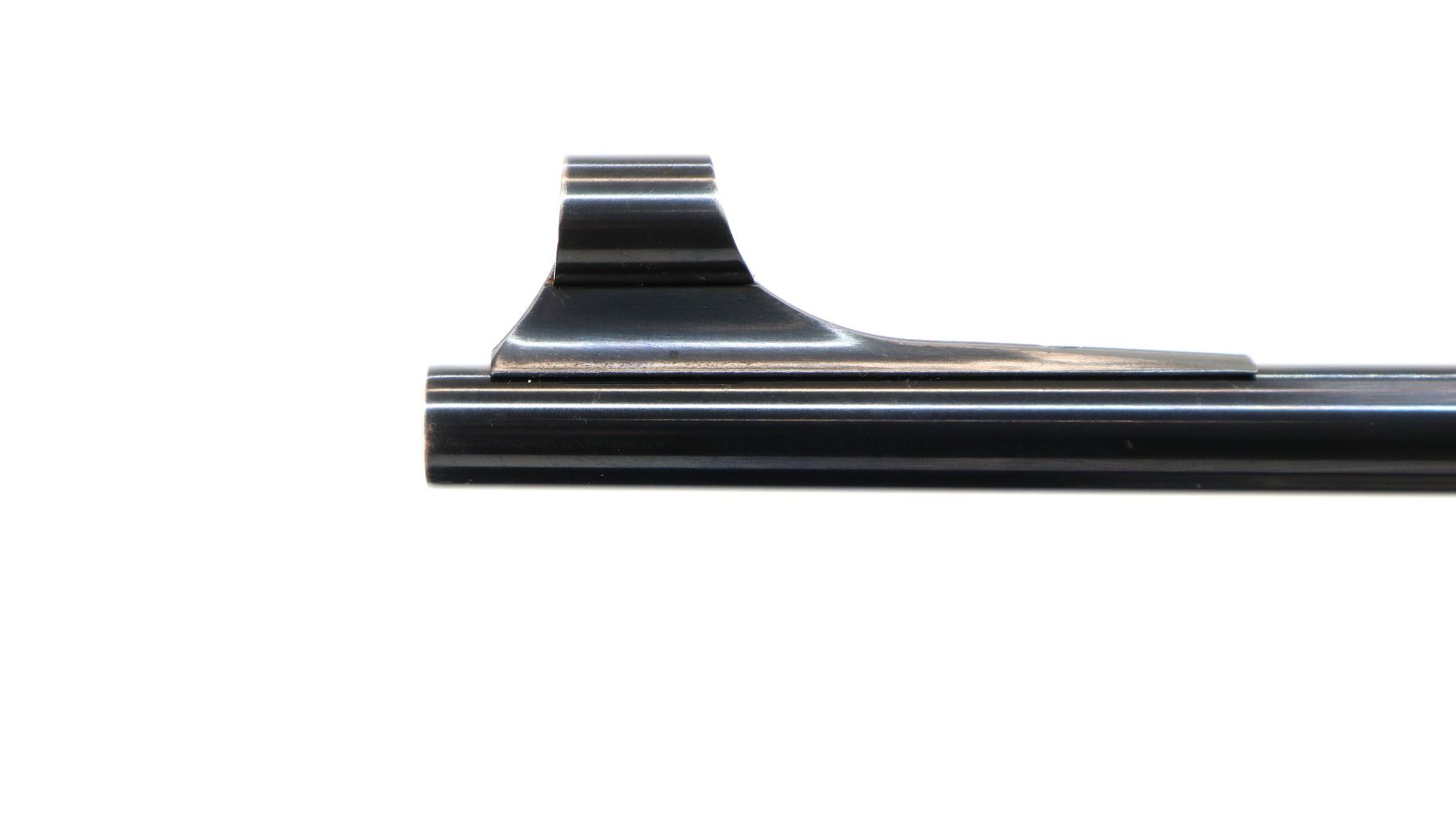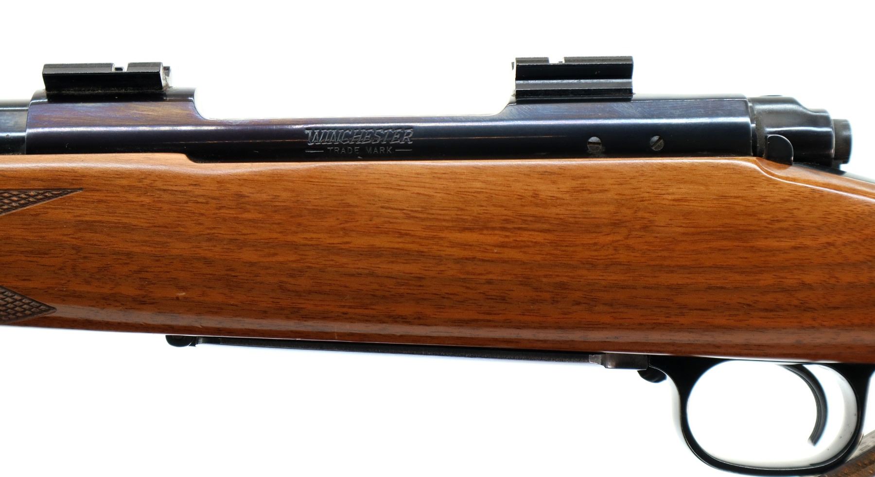 Main Description: Blade front sight with hood and ramp, adjustable folding u notched rear sight, polish blued finish, receiver drilled and tapped with two piece scope bases installed, jeweled push feed bolt with checkered knob. One piece satin finish wood stock, checkered forearm and pistol grip, cheek rest, red rubber recoil pad, 13.5" LOP, grip cap, hinged floor plate, sling swivels with brown leather sling.