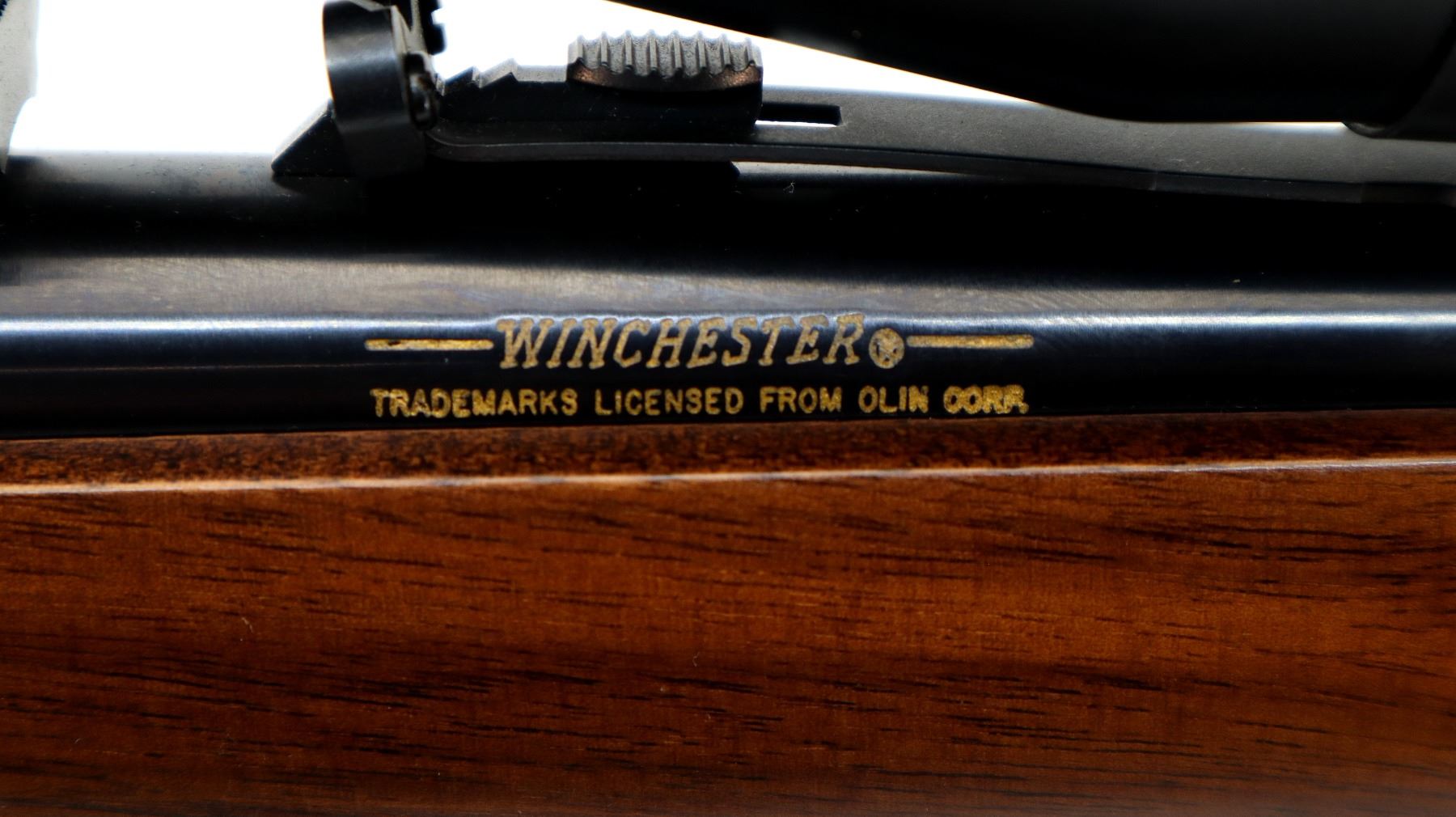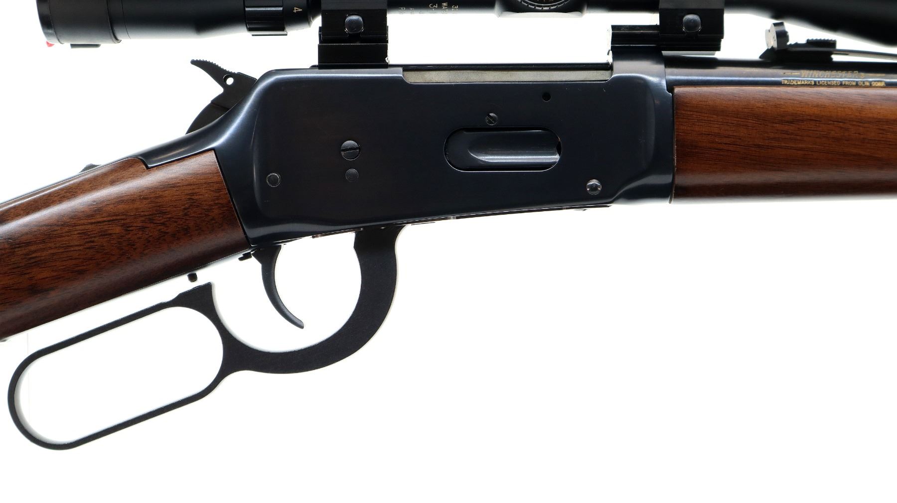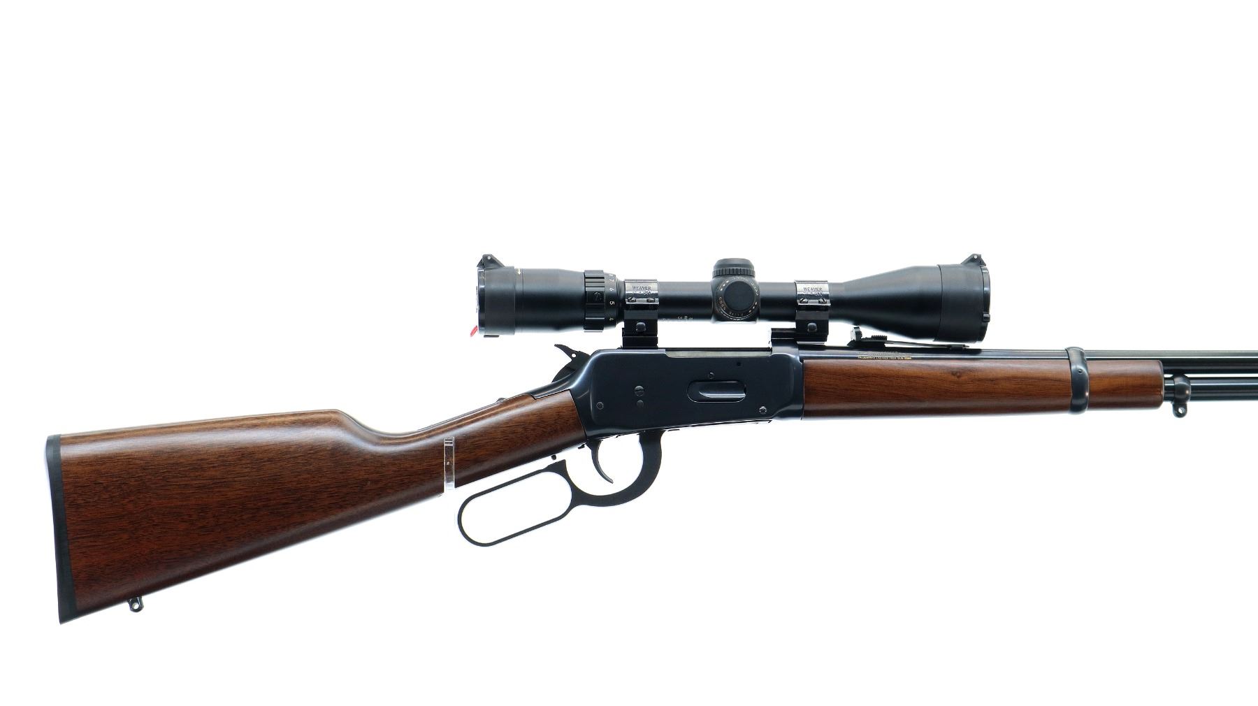 Main Description: Blade front sight, adjustable u notched rear sight, polish blued finish, receiver drilled and tapped with Bushnell Elite 3200 3-10x40 scope installed, clear optics with duplex crosshair. Angled eject bolt, grooved spur hammer, tang safety. Two piece wood stocks, straight grip, black rubber recoil pad, full length magtube, swivel studs.