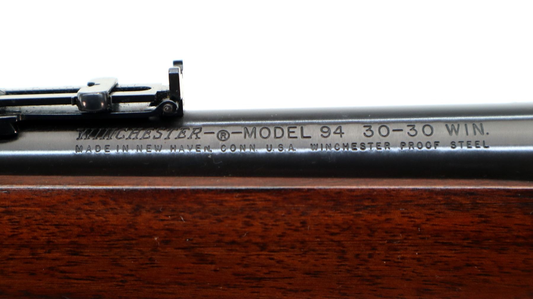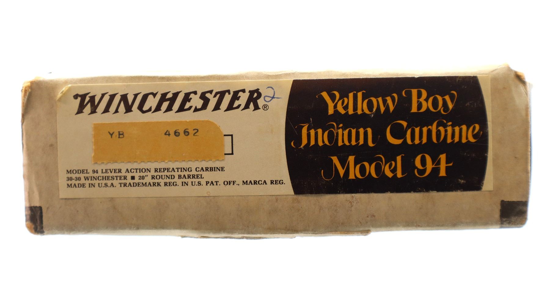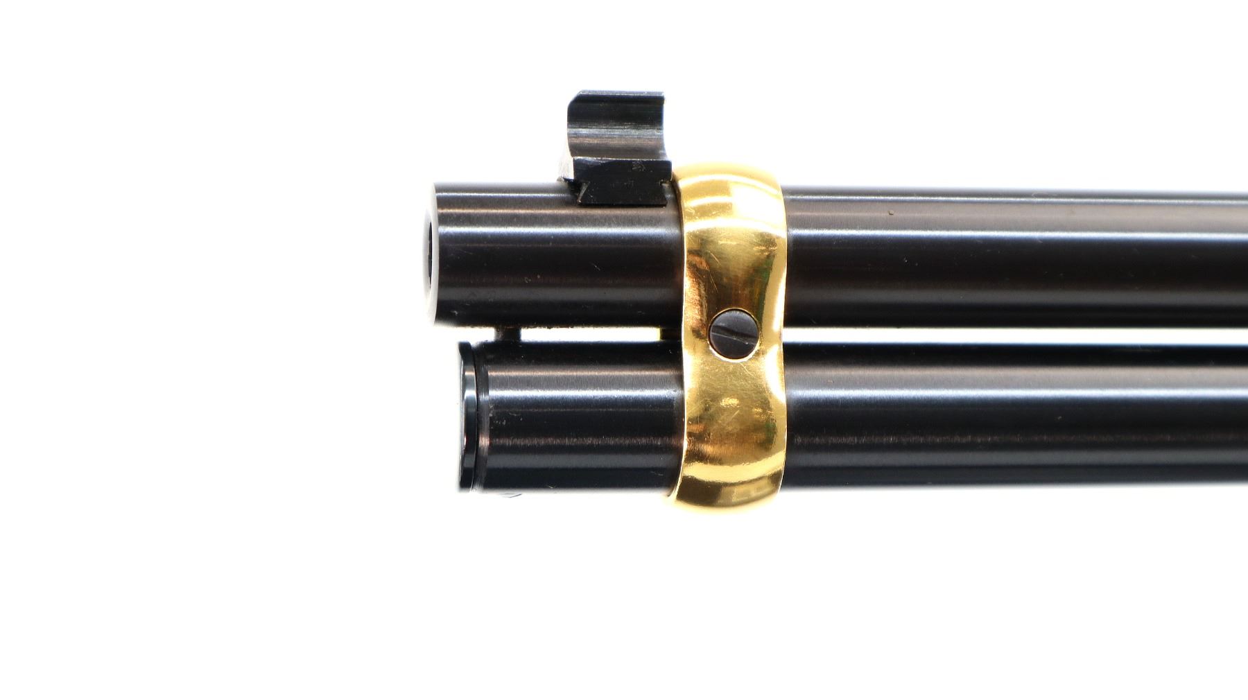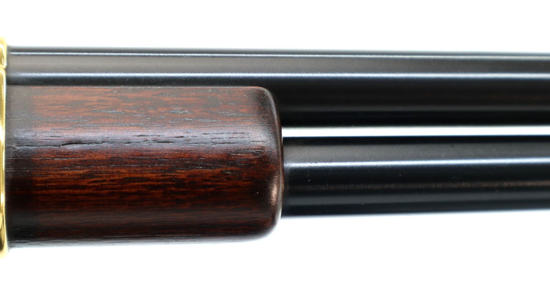 Main Description: Blade front sight, adjustable u notched ladder rear sight, polish blued barrel, bolt, lever and full length magtube, engraved gold receiver, grooved spur hammer, saddle ring and stud. Two piece wood stocks, straight grip, smooth curved gold butt plate and barrel bands.