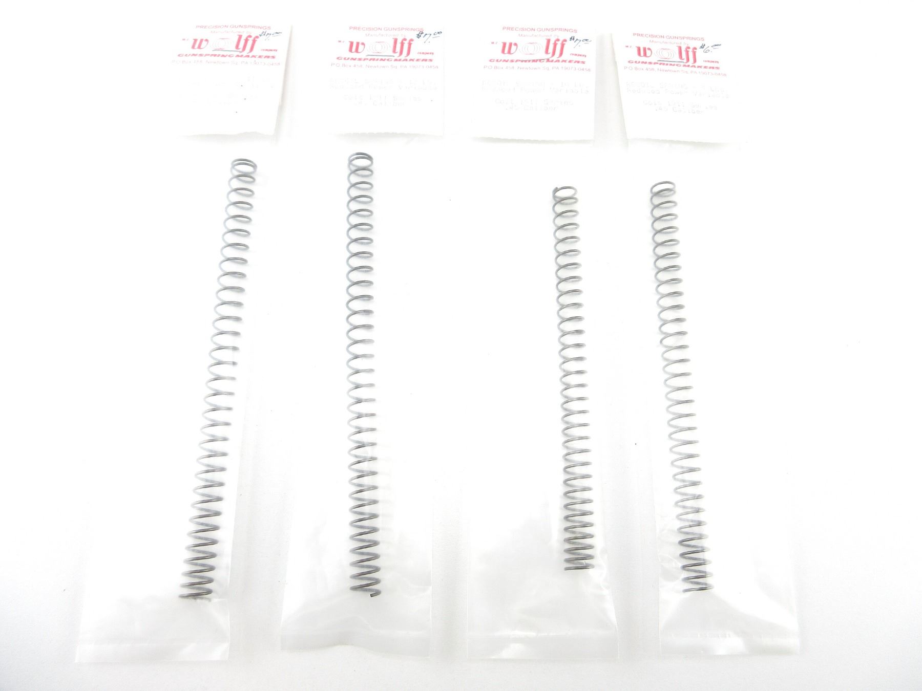 LOT INCLUDES; (1) 9LB RECOIL SPRING, APPEARS NEW OLD STOCK IN ORIGINAL PACKAGING, (1) 10LB RECOIL SPRING, APPEARS NEW OLD STOCK IN ORIGINAL PACKAGING, (1) 11LB RECOIL SPRING, APPEARS NEW OLD STOCK IN ORIGINAL PACKAGING & (1) 13LB RECOIL SPRING, APPEARS NEW OLD STOCK IN ORIGINAL PACKAGING. MAY REQUIRE FITTING. SEE PHOTOS.