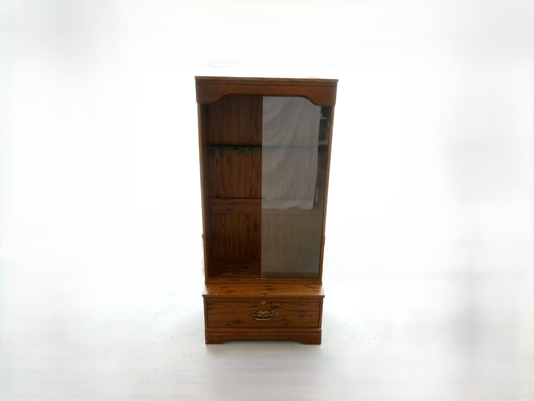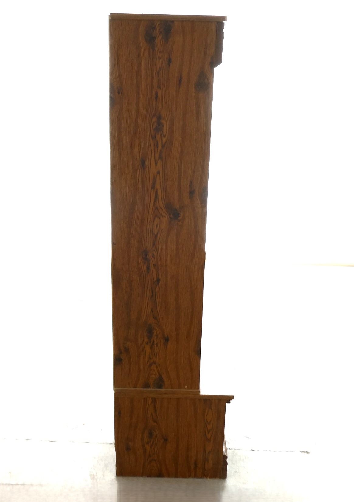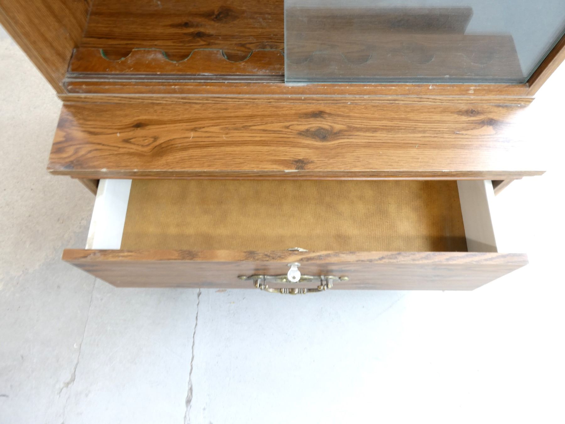 LOT INCLUDES; (1) BROWN WOODEN GUN CABINET, (2) SLIDING GLASS DOORS, (6) GUN RESTS, (1) WORKING INNER LIGHT, REQUIRED STANDARD WALL PLUG-IN, (1) DRAWER LOCKING WITH (1) KEY, APPROX. OVERALL LENGTH 30"X17"X65 1/4", LIGHT WEAR & TEAR, SEE PHOTOS,*PICK UP ONLY, NO SHIPPING*.