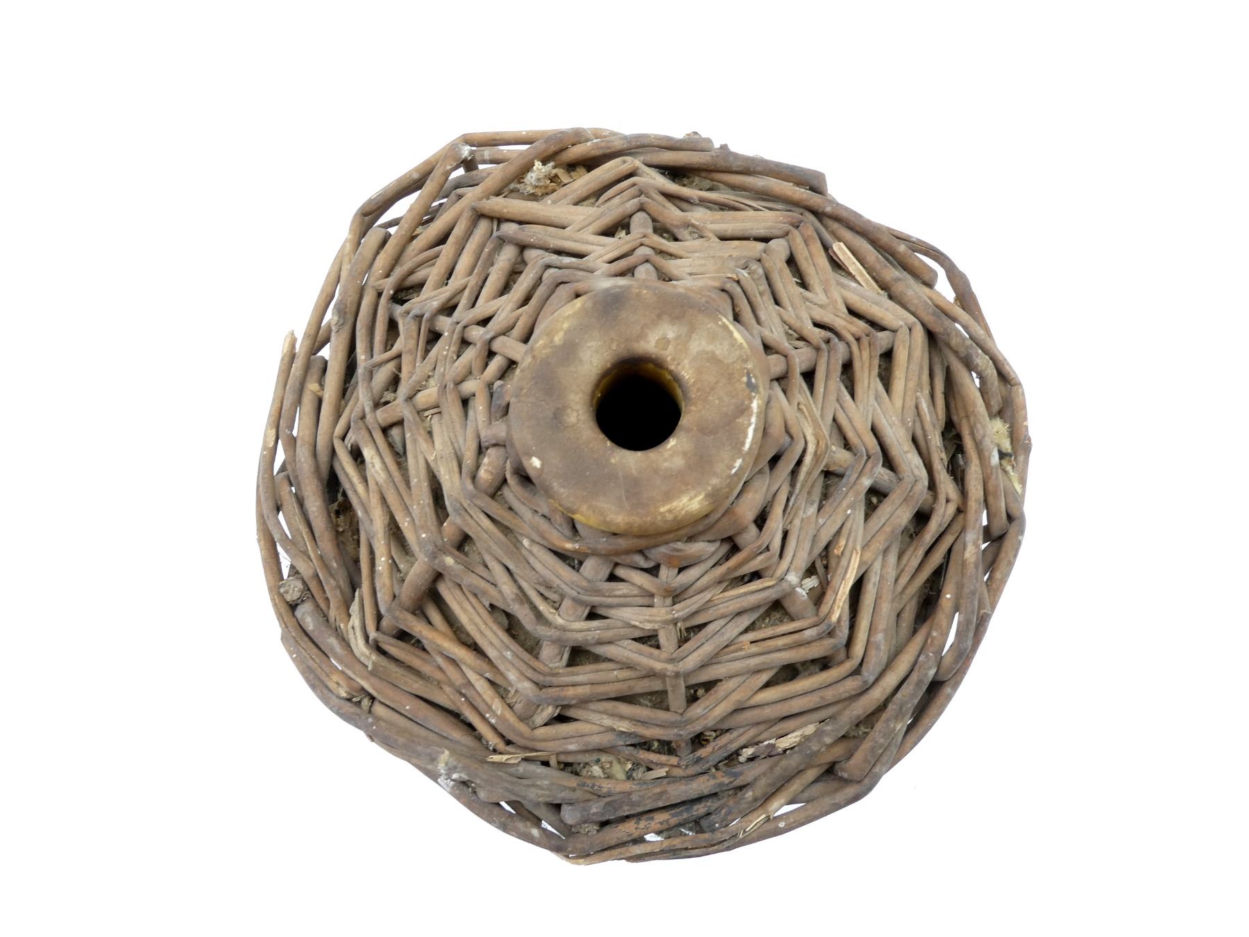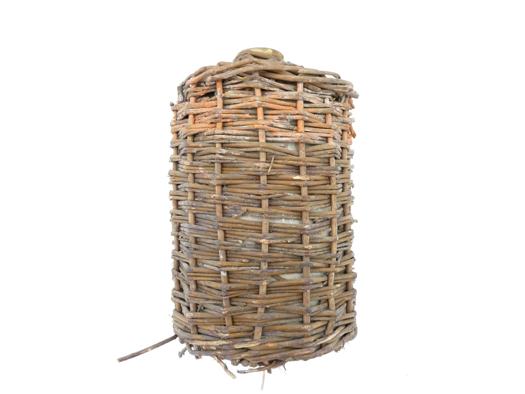 (1) FOR RUM / SRD (SUPPLY RESERVE DEPOT), IN WICKER COVER WITH RED BAND INDICATING USE, PORTION OF WICKER COVER HAS BEEN CUT / REMOVED. SEE PHOTOS. *NO GUARANTEE ON GLASS FOR SHIPPING*