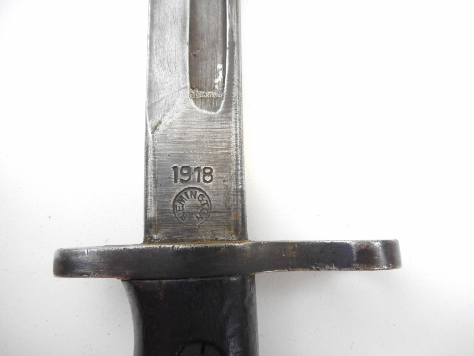 WWI U.S. MILITARY P-17 REMINGTON 1918 BAYONET WITH SCABBARD , RICASSO MARKED REMINGTON 1918 AND WITH EAGLE HEAD, ORDINANCE US 24, WITH SCABBARD MARKED JEWELL - 1918 & H.E., FROM THE JIM SHEPHERD ESTATE
