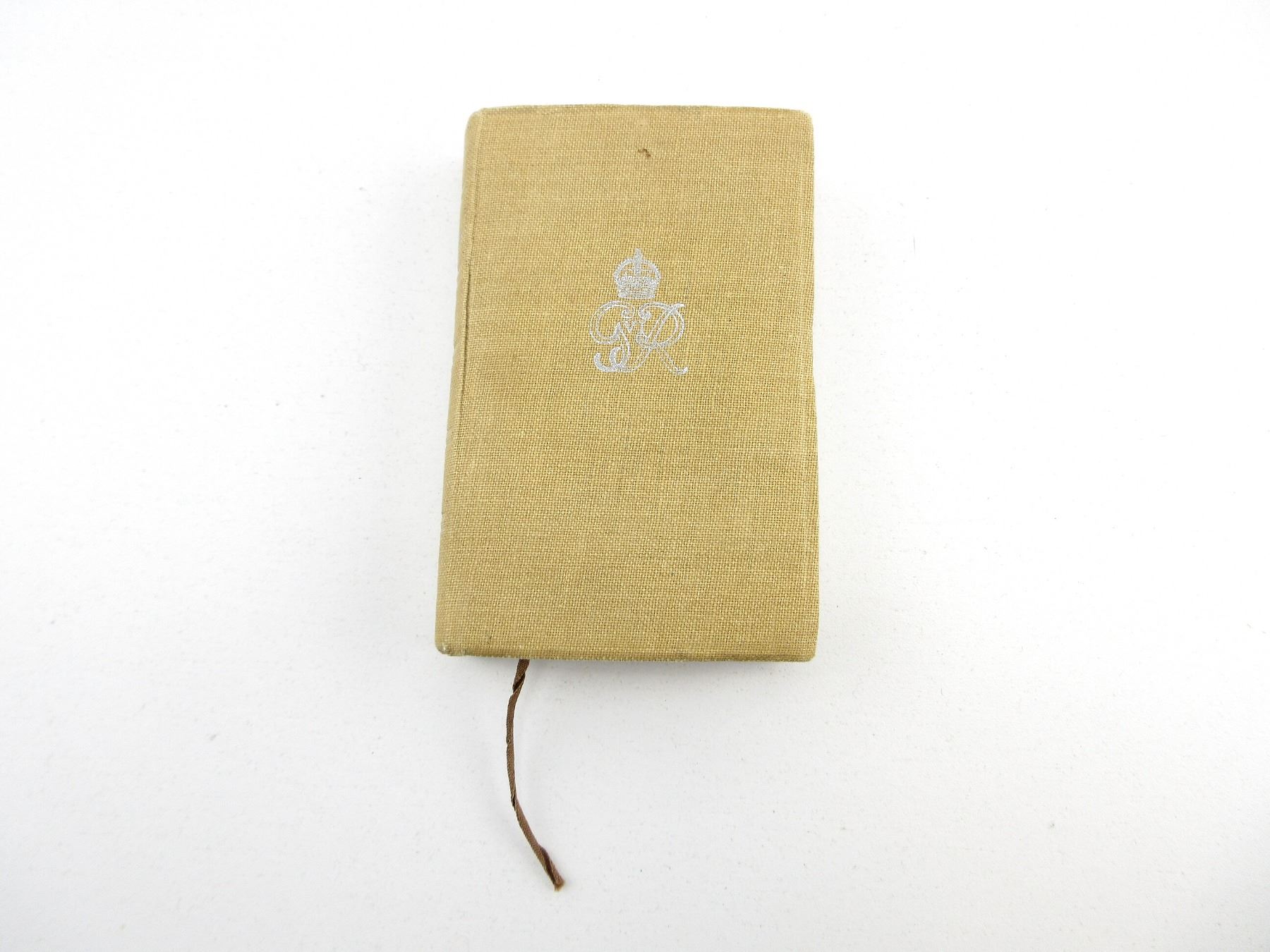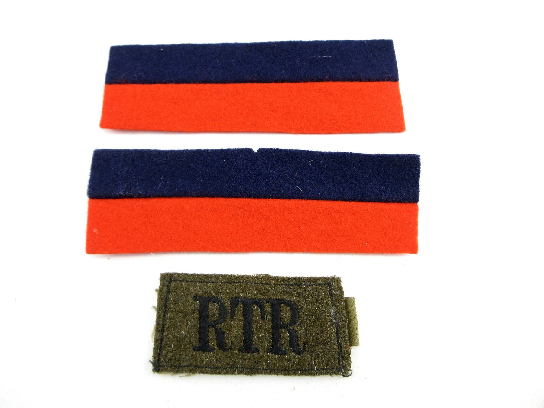 NAMED TO: 2ND LT J.H. VAUGHN-WILLIAMS R.T.R., LOT INCLUDES; (1) NEW TESTAMENT BIBLE NAMED TO: "LT VAUGHN-WILLIAMS, RTR MEF", DATED: "1939", (1) ROYAL TANK REGIMENT PLASTIC CAP BADGE, MARKED: "STANLEY & SONS, WALSALL", PLASTIC CAP BADGES WERE FIRST INTRODUCED INTO THE BRITISH ARMY IN 1941 AS A RESULT OF METAL SHORTAGES, (1) RTR GREEN WOOL BADGE, (2) BLUE / RED DIVISION BADGES & (4) INFORMATION SHEETS / RECORD DETAILS OF LT. J.H. VAUGHN-WILLIAMS AND HIS SERVICE. SEE PHOTOS.