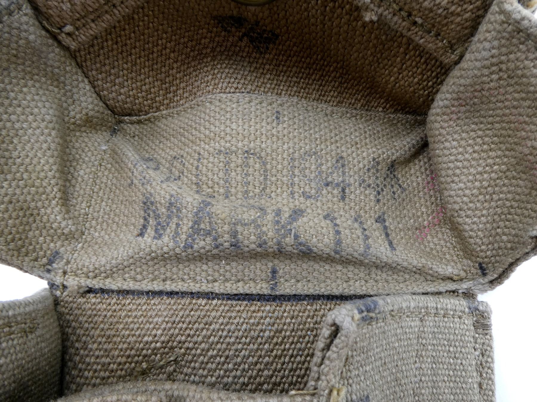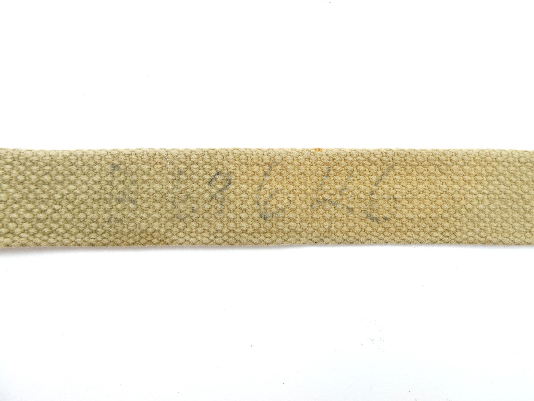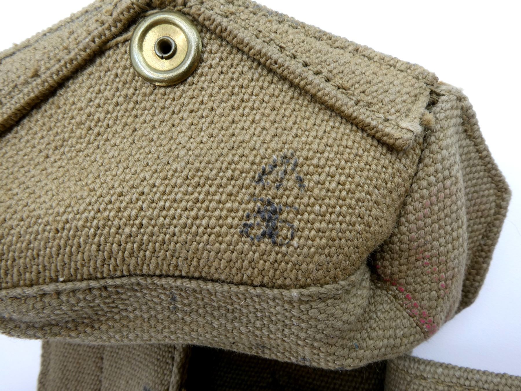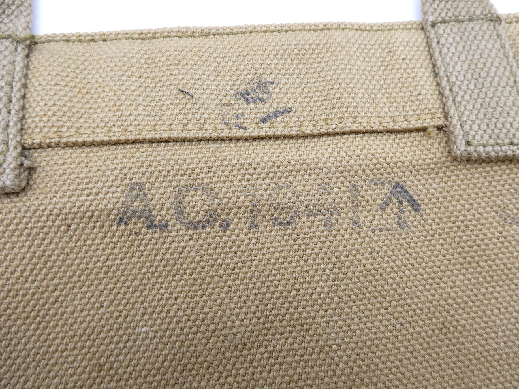 LOT INCLUDES; (2) TAN P37 WEB AMMO POUCHES, BOTH MARKED: "R.P.LTD. 1944" BROAD ARROW, "MARK III", BROAD ARROW OVER "35", BRASS / STEEL FITTINGS, (2) TAN P37 WEB SHOULDER STRAPS, BOTH MARKED: "M.E.CO. 1942" BROAD ARROW, "NORMAL", ONE WITH BROAD ARROW OVER "B", BRASS FITTINGS, OALS APPROX. 45.5" / 46" & (1) TAN P37 WEB LARGE FIELD PACK, MARKED: "A.C. 1941" WITH BROAD ARROW, VARIOUS OTHER FAINT / UN-CLEAR MARKINGS, BRASS FITTINGS. SEE PHOTOS.