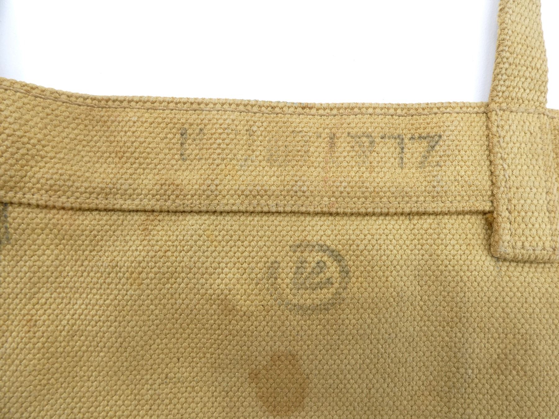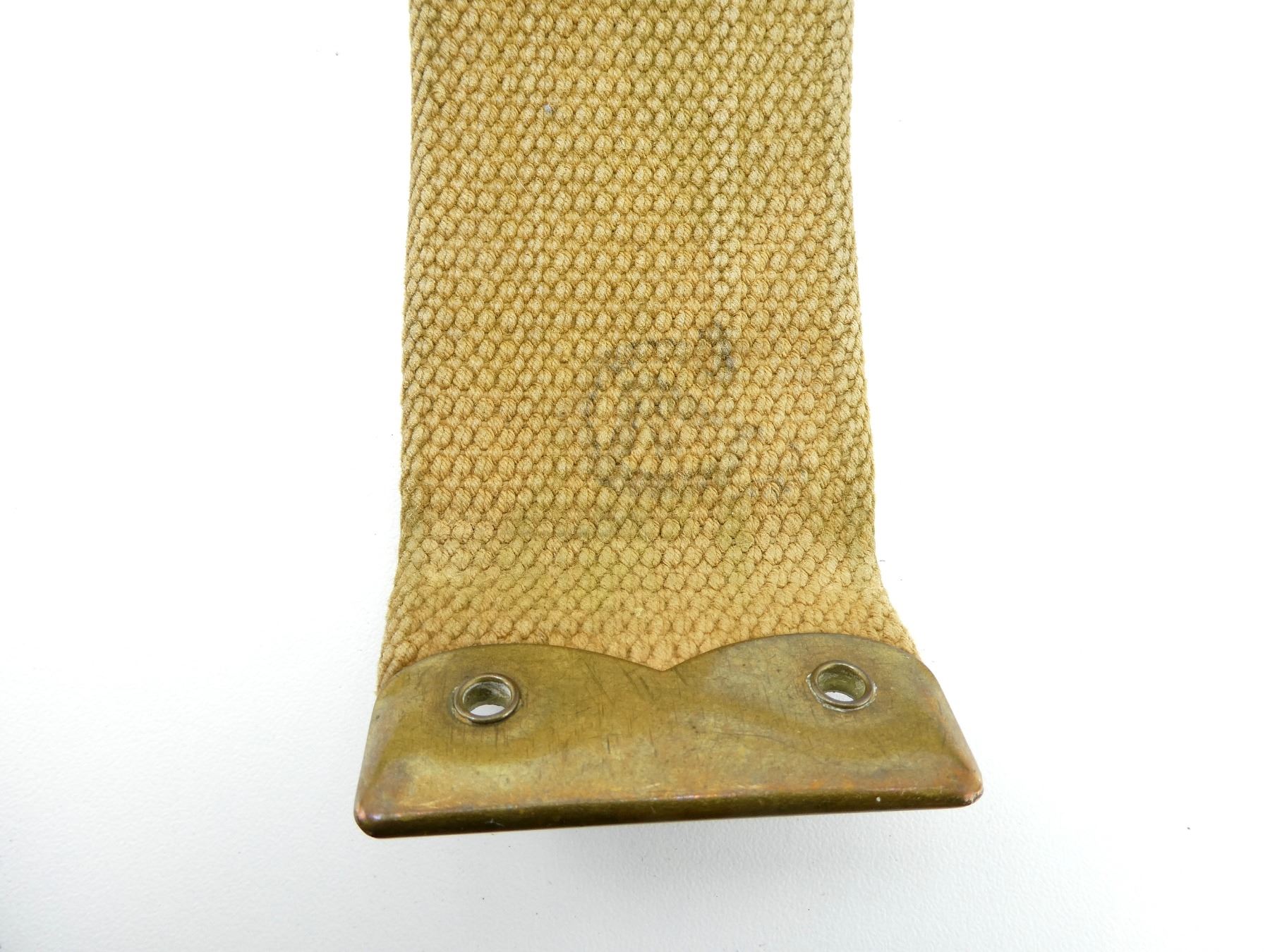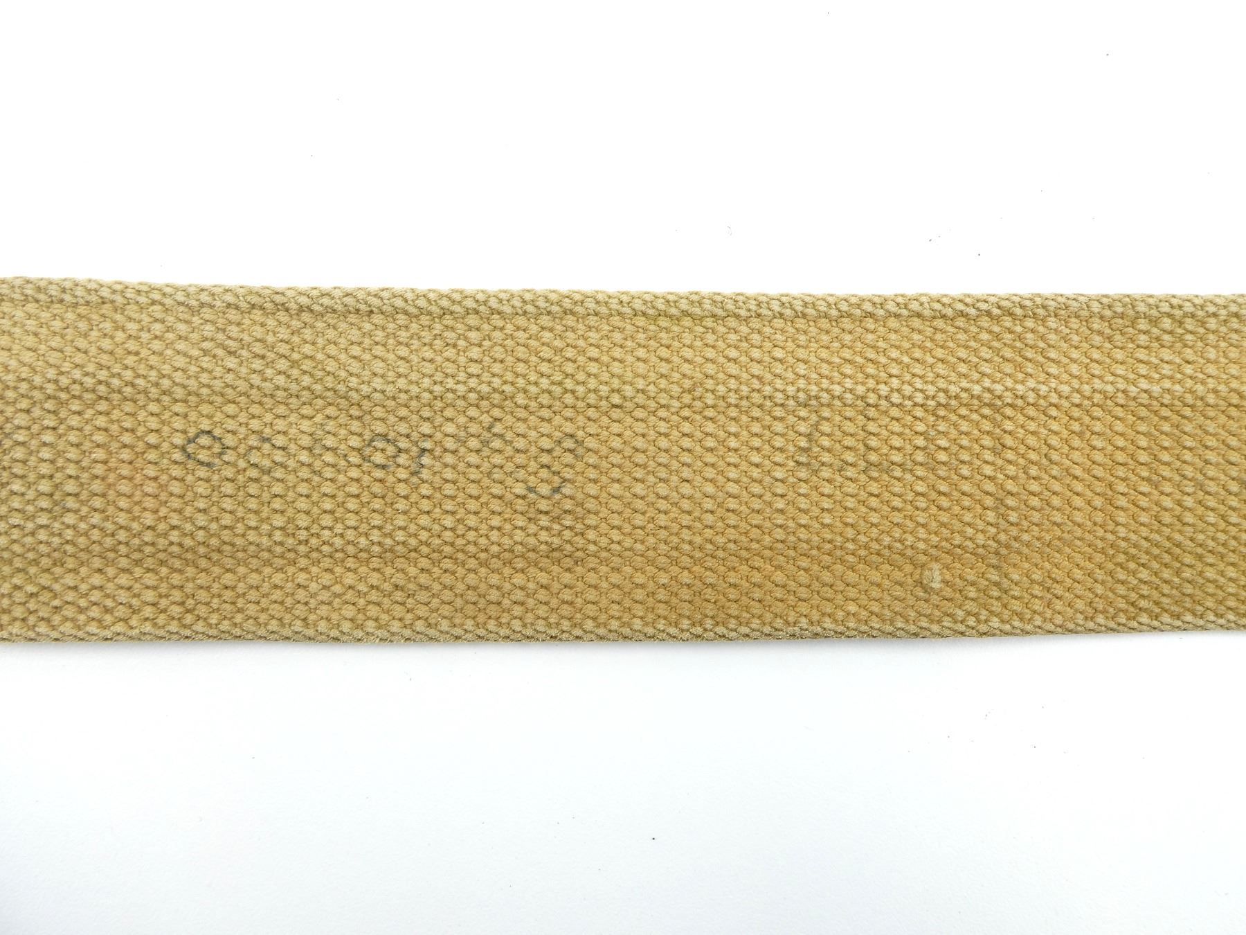 LOT INCLUDES; (1) TAN P37 WEB SMALL FIELD PACK, FAINTLY MARKED: "Z.L.&T.??? 1941" WITH C-BROAD ARROW, "S", HAND-WRITTEN MARKED: "ORVILLE SILVER", "W110395, ?ST. MARIE.D.M.", BRASS FITTINGS, NO SHOULD STRAP, SHOWS AGE / WEAR, (1) TAN P37 WEB ENTRENCHING TOOL COVER, MARKED WITH C-BROAD ARROW, BRASS FITTINGS, OVERALL LENGTH APPROX. 13.5", (1) TAN P37 WEB PAIR OF GAITERS, MARKED WITH C-BROAD ARROWS, BRASS FITTINGS APPROX. 13.25" X 6", (1) TAN P37 WEB BELT, FAINTLY MARKED: "Z.L.&T.LTD. 1940", "S" WITH VARIOUS OTHER MARKINGS, BRASS FITTINGS, OVERALL LENGTH APPROX. 36.75", ADJUSTABLE, (1) TAN P37 WEB BELT MARKED: "Z.L.&T.LTD. 1944, L" WITH C-BROAD ARROW, BRASS FITTINGS, OVERALL LENGTH APPROX. 33.25" & (1) L-SHAPED TAN P37 WEB STRAP, MARKED WITH C-BROAD ARROW & VARIOUS OTHER FAINT / UN-CLEAR MARKINGS. SEE PHOTOS.