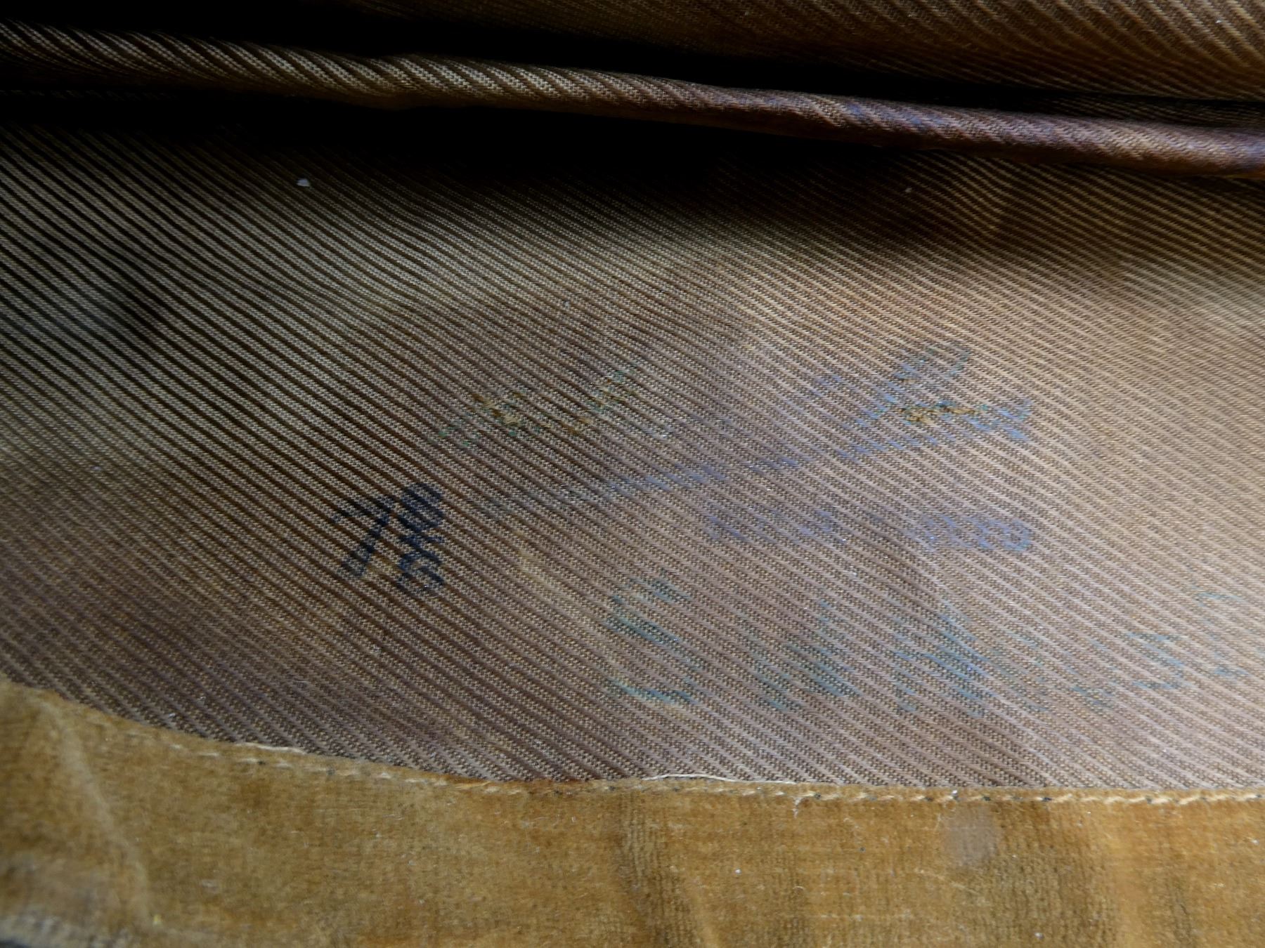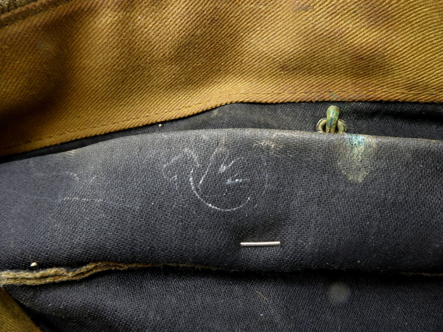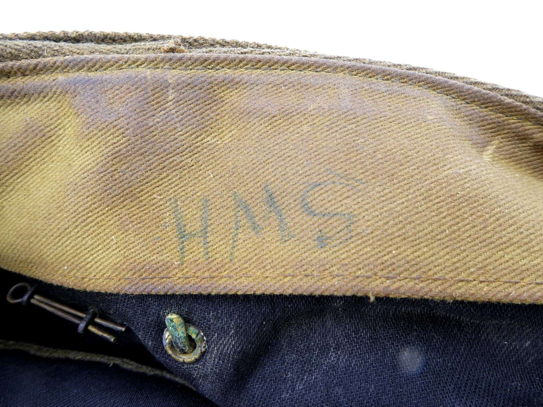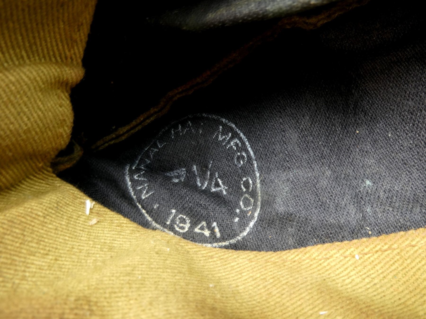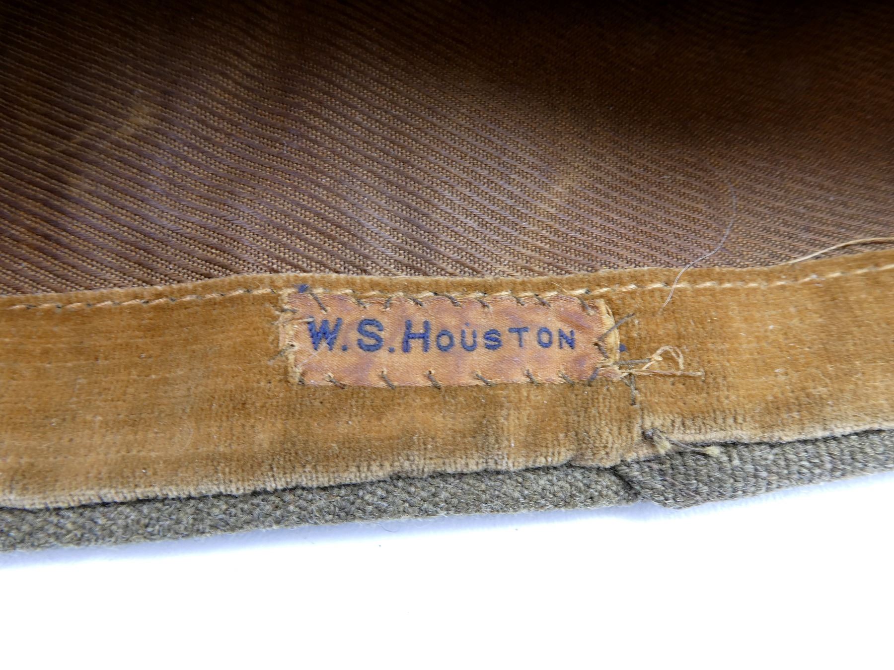LOT INCLUDES; (2) TAN CANVAS WEDGE CAPS WITH BRASS KING'S CROWN ROYAL CANADIAN ARMY MEDICAL CORPS CAP BADGES, ONE MARKED: "NATIONAL HAT MFG. CO. 1941, 7 1/4" WITH C-BROAD ARROW, HAND-WRITTEN: "SWH", OTHER MARKED: "7 3/8" WITH FAINT / UN-CLEAR MARKER'S MARK, HAND-WRITTEN MARKED: "SW HOUSTON", TAG INSIDE MARKED: "W.S. HOUSTON", BOTH SHOW AGE / WEAR, SLIGHT MOTHS HOLES ON ONE. SEE PHOTOS.
