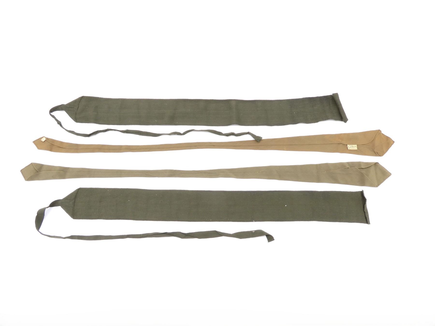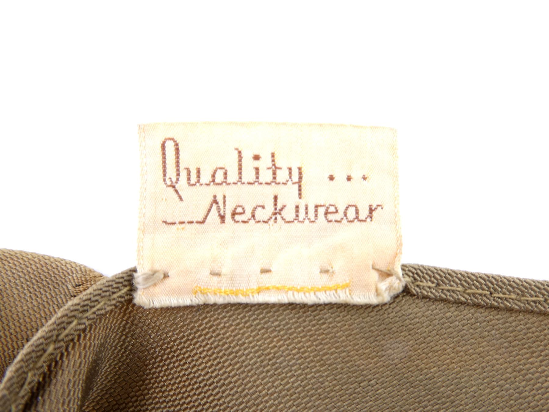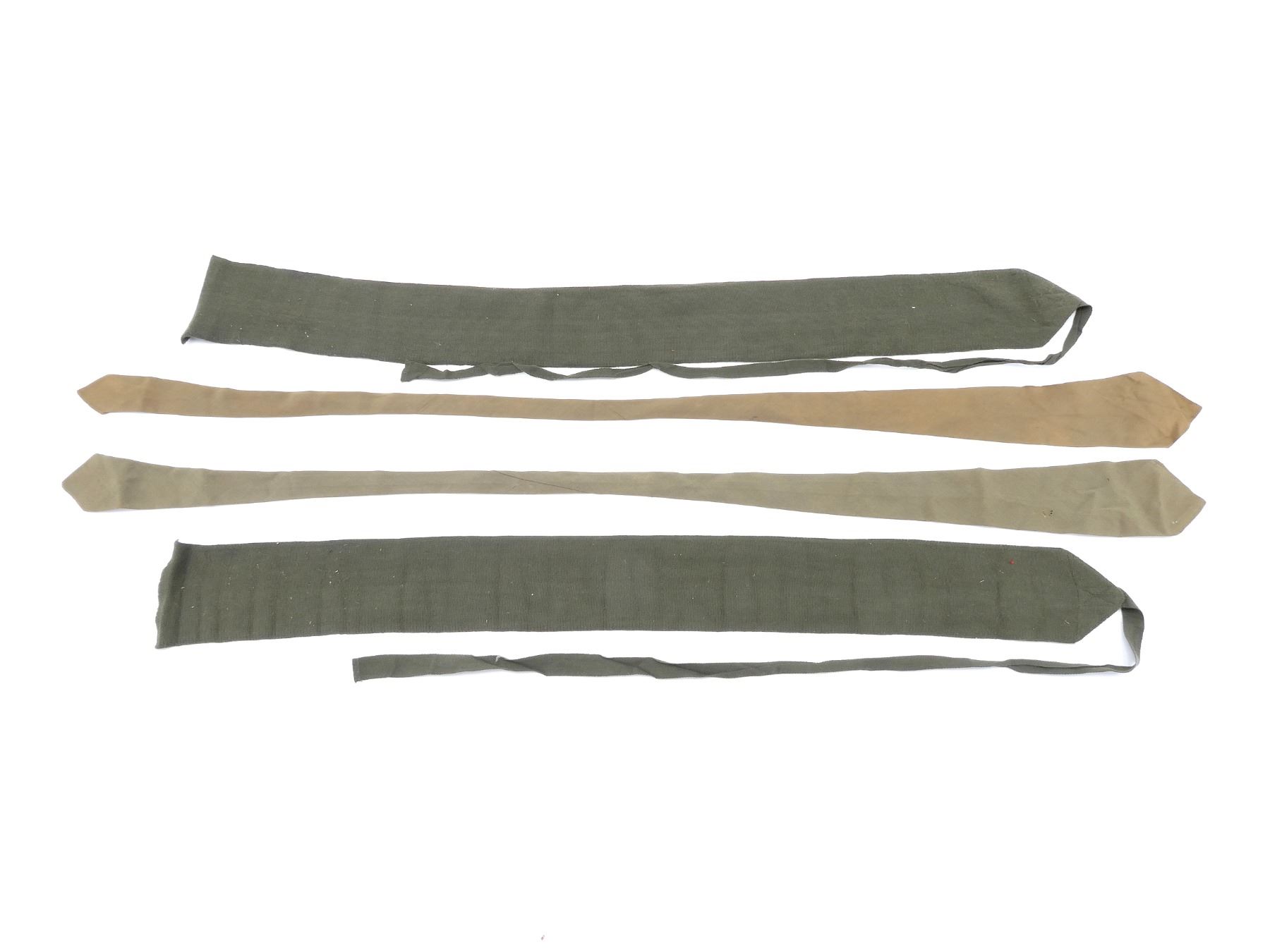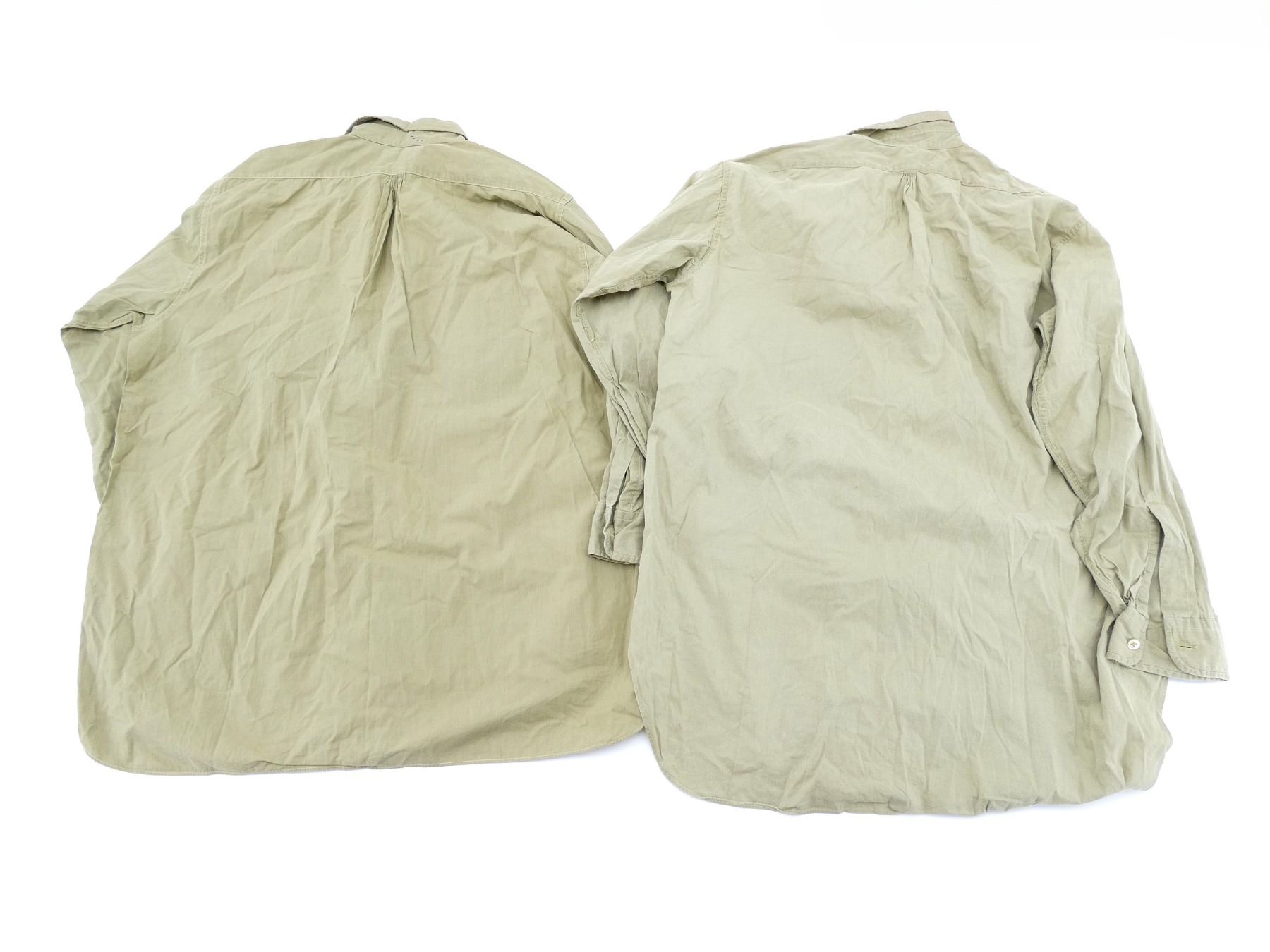 LOT INCLUDES; (1) PAIR OF GREEN CANVAS PANTS, MARKED: "SIZE-26, 5FT. 11-6-0, W 33-34, L 35, S.S. HOLDEN LTD., 1941" WITH C-BROAD ARROW, BUTTON-FLY, (3) GREEN COTTON / LINEN LONG-SLEEVED SHIRTS, NAMED TO: "S. HOUSTON", VARIOUS MARKINGS ALONG COLLARS, VARIOUS LABELS, BUTTON FRONTS, SHOWS AGE / WEAR, SHOULDER WIDTHS APPROX. 17.5", (1) PAIR OF GREEN WOOL PUTTEES, NO VISIBLE MARKINGS, APPROX. 4" WIDE & (2) TIES, GREEN / TAN, ONE MARKED: "ALL SILK, MADE IN ENGLAND" WITH VARIOUS OTHER MARKINGS, NO VISIBLE MARKINGS ON OTHER. SEE PHOTOS.